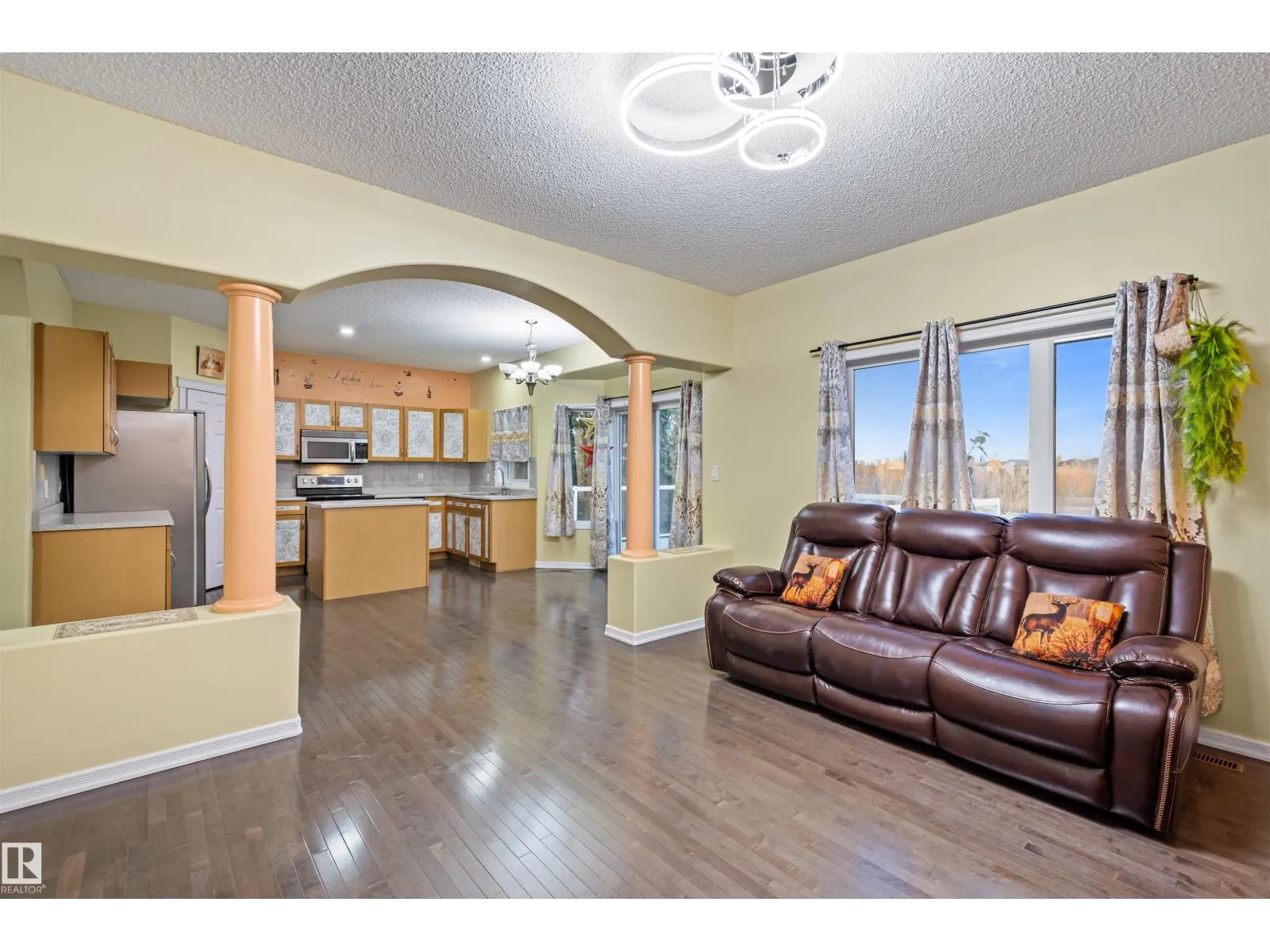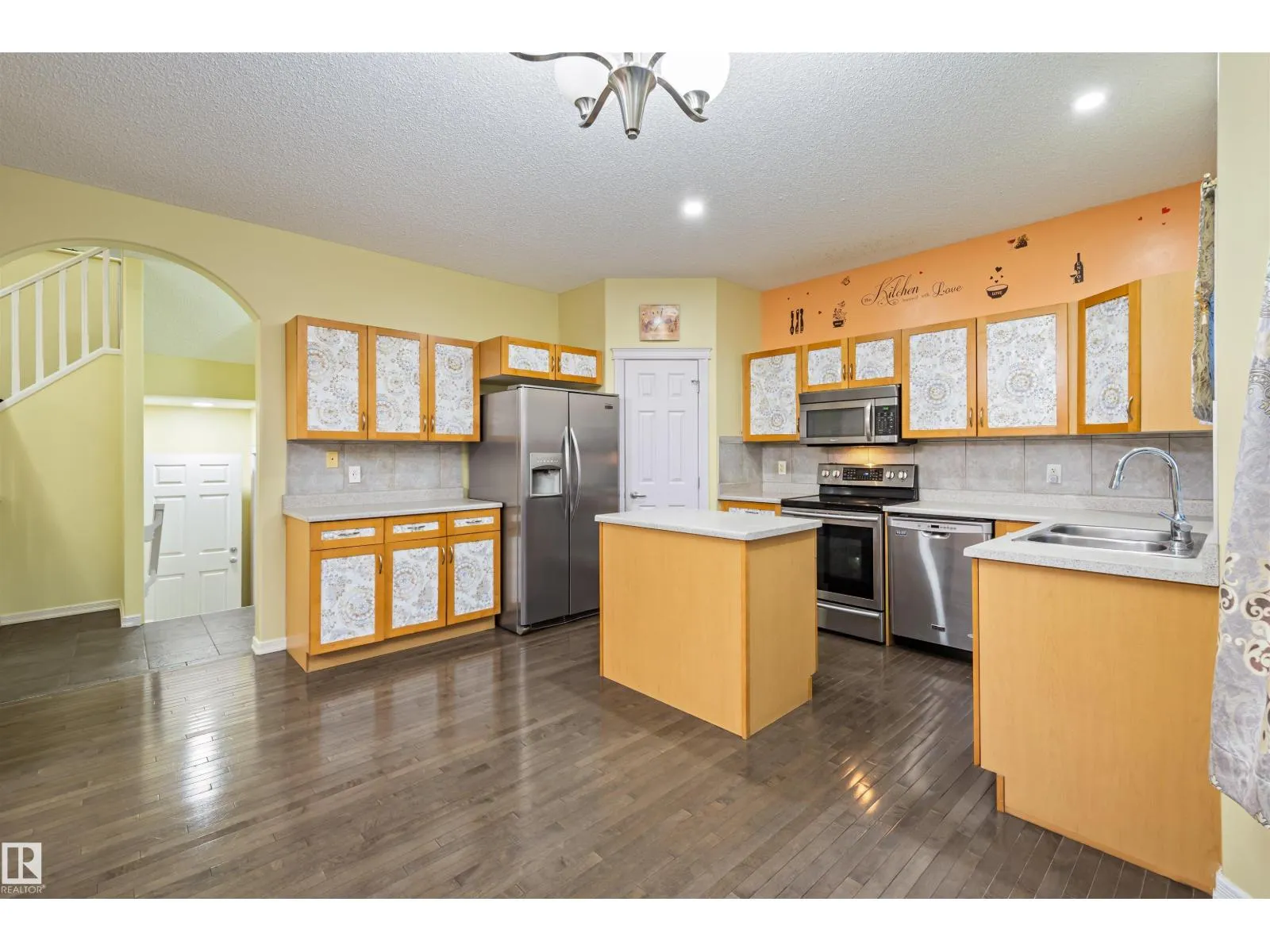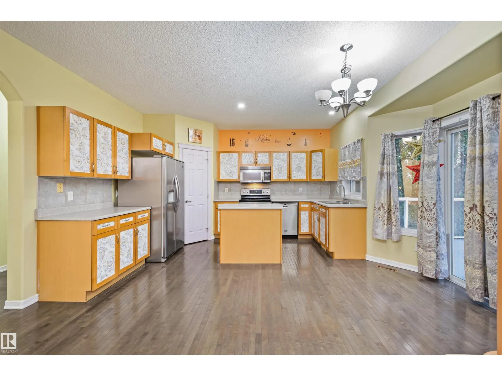 Welcome to Wild Rose! This beautiful 2-storey offers 4 bedrooms + bonus room + rec room, 2 kitchens, 3.5 baths, and a fully finished walkout basement spanning over 2,314 Sq.Ft. of living space perfect for large or extended families. The bright foyer opens to a warm living room with hardwood floors, gas fireplace, and large windows overlooking the backyard. The open dining area leads to patio doors and a spacious deck with serene views of Mill Creek Ravine. The kitchen features stainless steel appliances, ample cabinetry, and a functional island. A laundry/mudroom and 2-pc bath complete the main level. Upstairs includes a bonus room with vaulted ceilings, a primary suite with 4-pc ensuite and walk-in closet, plus 2 additional bedrooms and a full bath. The walkout basement has a separate entrance with new flooring and paint, a 2nd kitchen, bedroom, rec room, and 4-pc bath ideal for guests, in-laws, or rental potential. Conveniently located near schools, shopping, parks, trails & public transit. Welcome Home (id:27476)