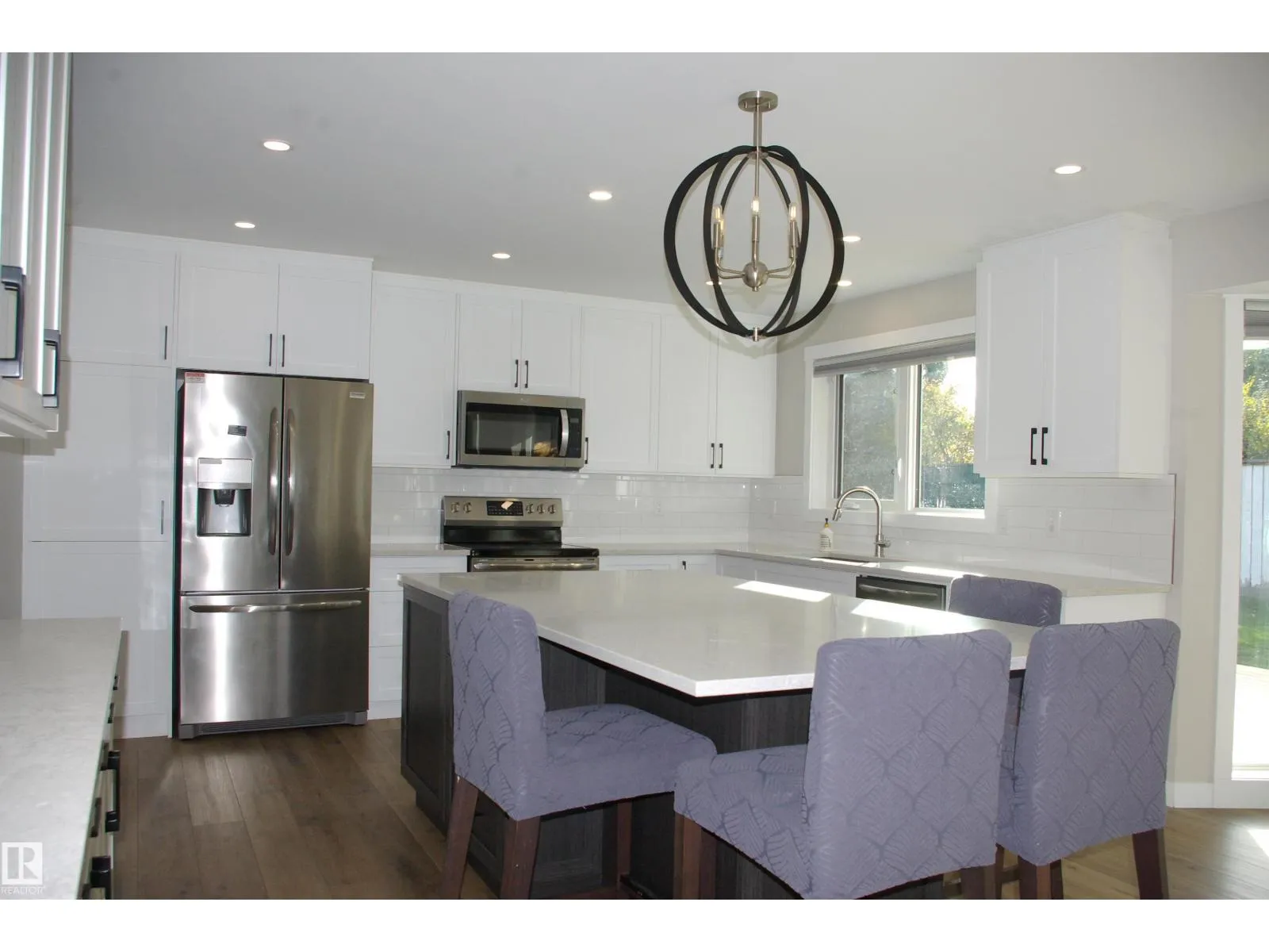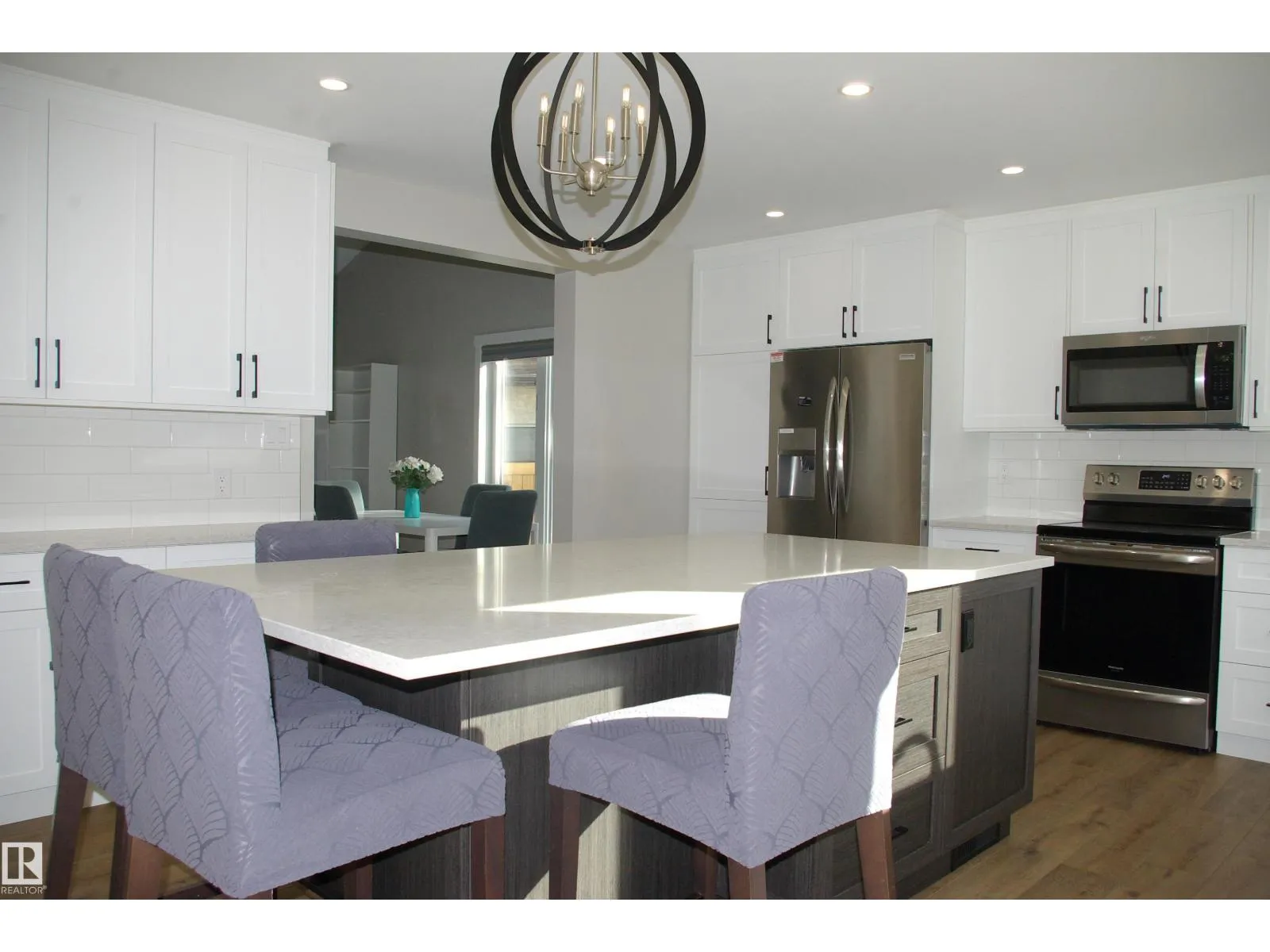 The best combination, an excellent location, with absolutely nothing left to do. Stylish 1875 sq ft two storey on a pie lot, tucked away in a cul-de-sac inside a crescent. Vaulted ceilings over the living and dining rooms, open to the upstairs. Delightful open plan at the back of the house, with a beautiful island kitchen, white and grey cabinets, quartz counters, plenty of room for casual family dining, with patio doors out to the West-facing deck and large backyard. A family room big enough for a family, with a gorgeous gas fireplace. Three bedrooms upstairs, the primary has a wonderful walk-in closet and an ensuite with double sinks and a shower big enough for three or four. The main bathroom is highlighted by the skylit soaker tub. Laundry room is on the main floor. Basement is mostly finished, primarily with a massive recreation room. There is also a fourth bedroom, RIDP off the rec room. Just move in and pat yourself on the back!! Be in before the snow flies. (id:27476)