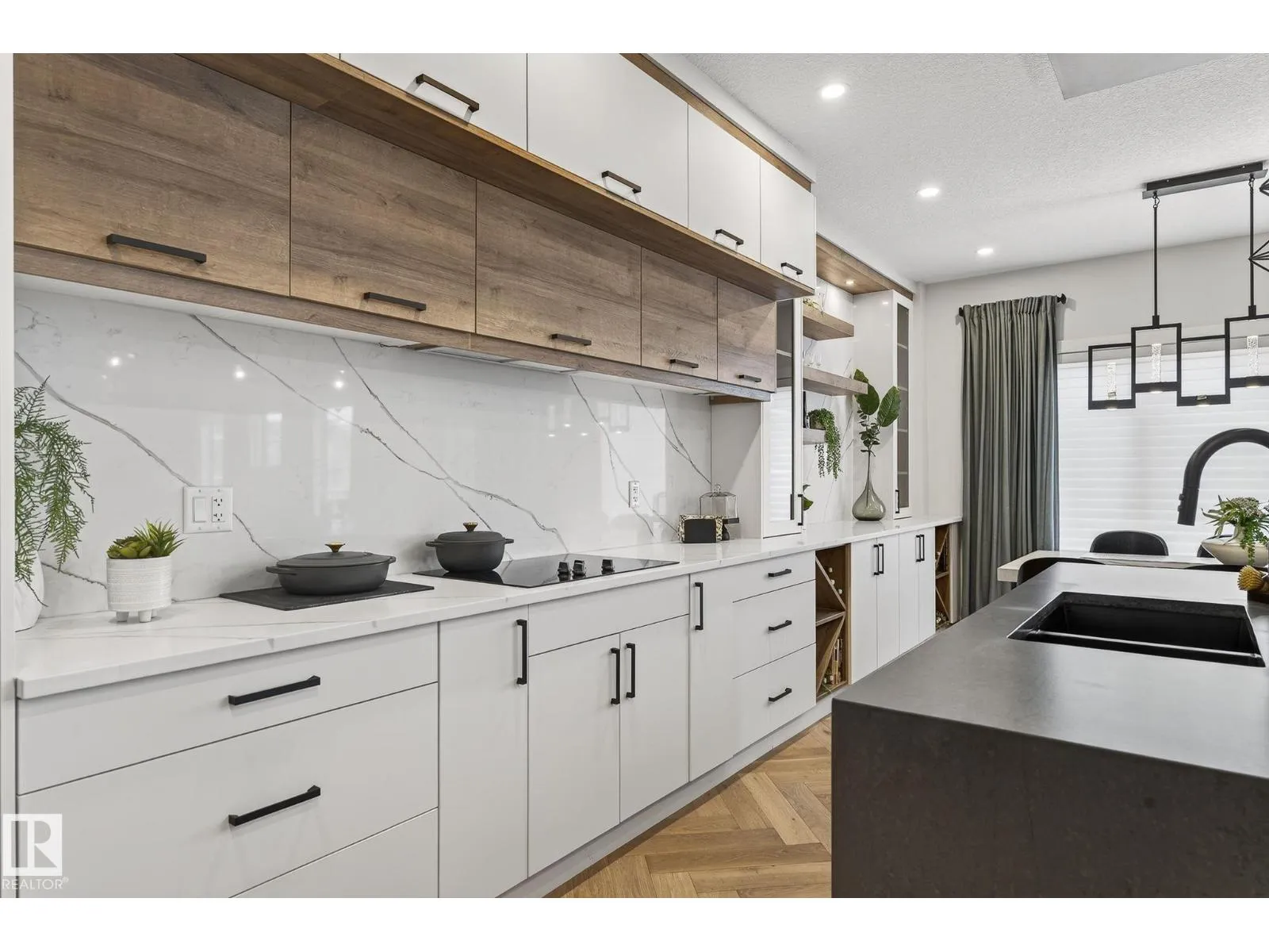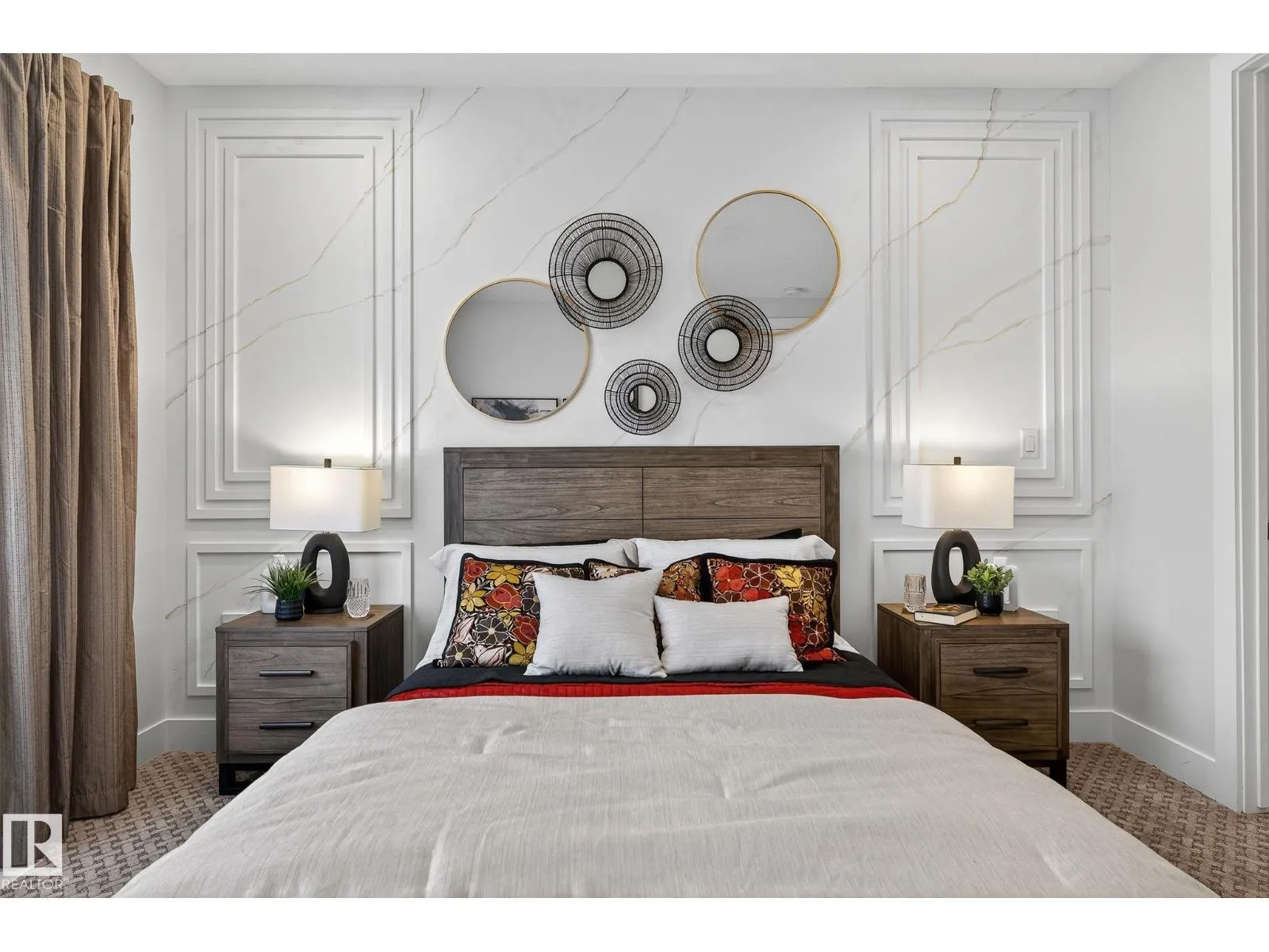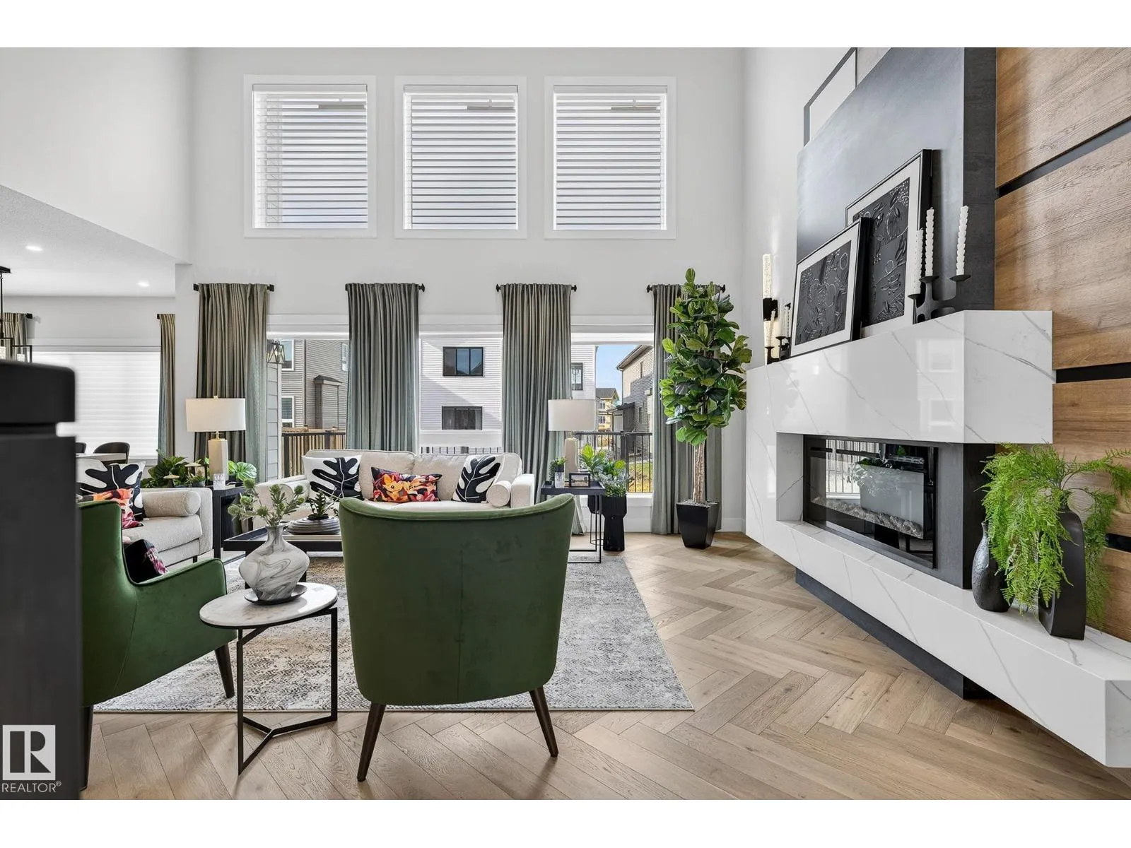 The wait is over â our upgraded show home by Lyonsdale Homes in the sought-after Marquis community is now available! From the moment you step inside, this home impresses with elegant design, premium finishes, and exceptional craftsmanship. Soaring main-floor ceilings create an open, airy feel, showcasing just under 2,700 sq. ft. of thoughtfully designed living space. Quartz detailing around the fireplace adds a striking focal point, while the chef-inspired kitchen features Quartz countertops, a built-in oven, electric cooktop, and a spice kitchen with gas range. With 4 spacious bedrooms and 4 full bathrooms, including two master bedroomsâone with a stunning tiled feature wallâthis home blends luxury and comfort. Air conditioning and all furniture are included, making it truly move-in ready. The oversized triple garage and side basement access provide flexibility, while durable Hardie Board siding and a fully landscaped yard add lasting appeal. (id:27476)