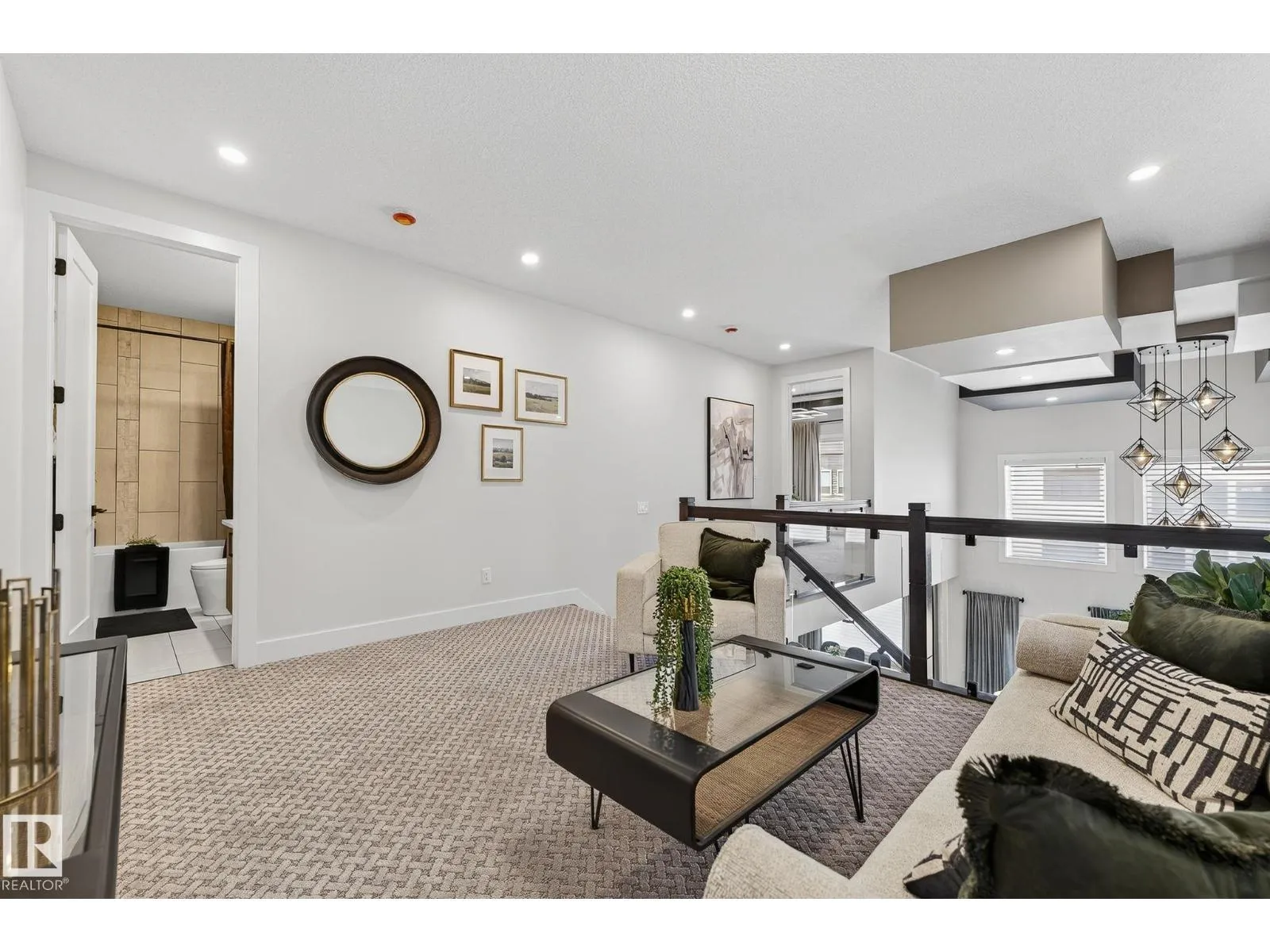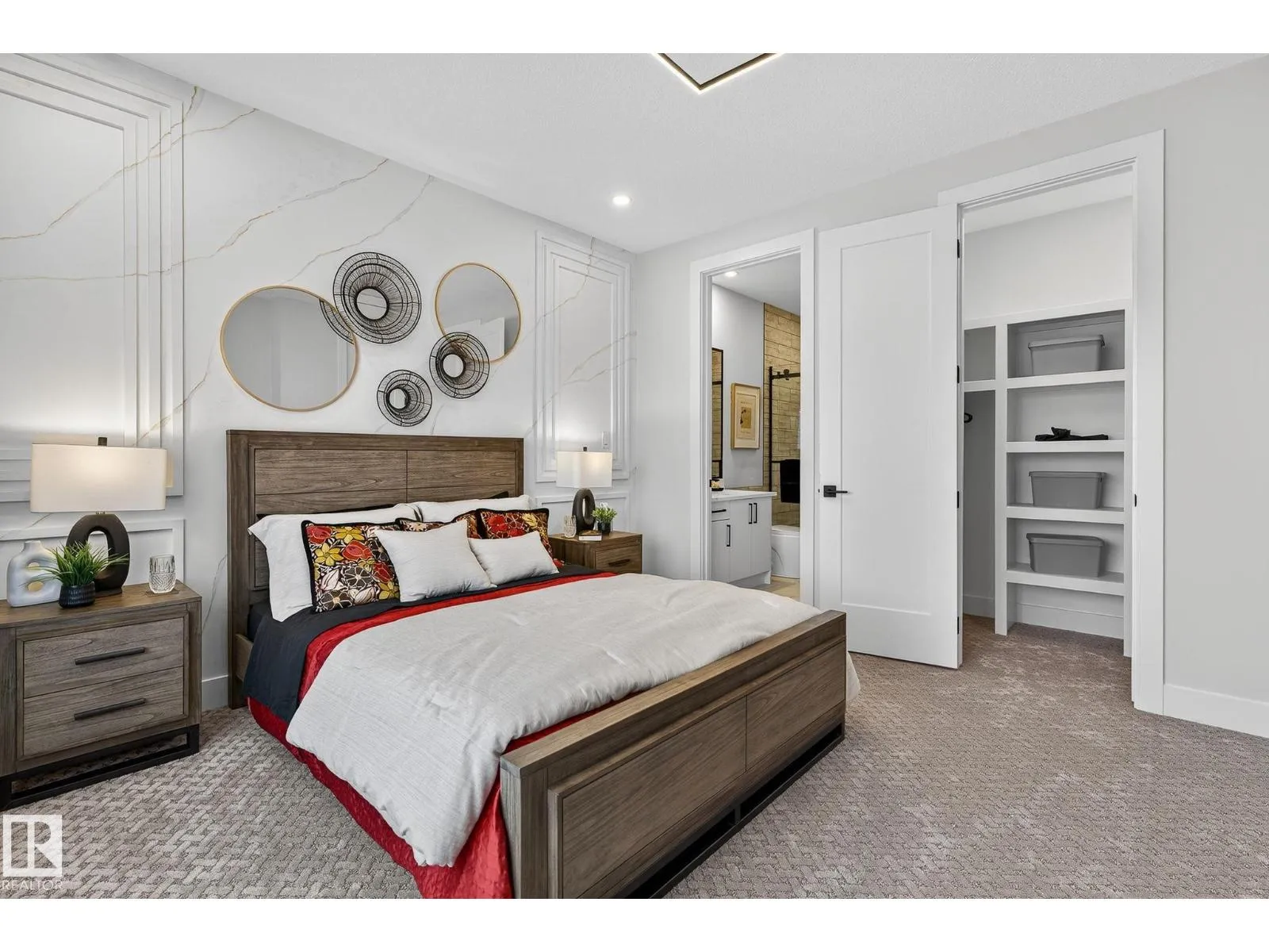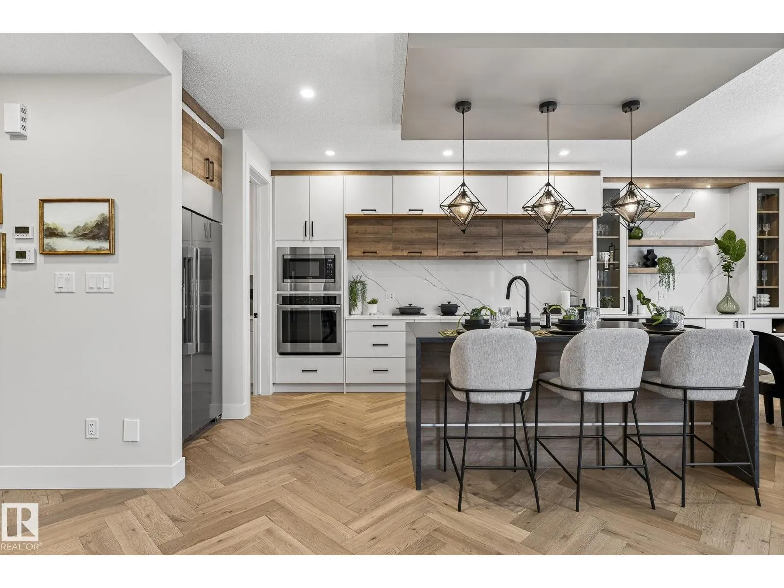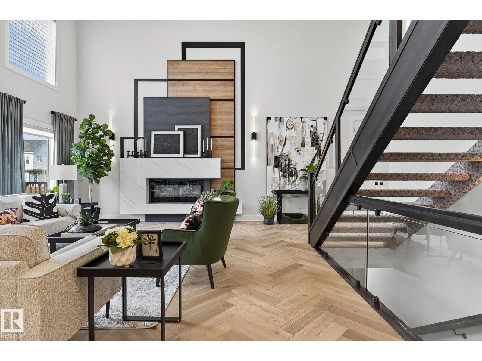 The wait is over â our upgraded show home by Lyonsdale Homes in the sought-after Marquis community is now available! From the moment you step inside, this home impresses with elegant design, premium finishes, and exceptional craftsmanship. Soaring main-floor ceilings create an open, airy feel, showcasing just under 2,700 sq. ft. of thoughtfully designed living space. Quartz detailing around the fireplace adds a striking focal point, while the chef-inspired kitchen features Quartz countertops, a built-in oven, electric cooktop, and a spice kitchen with gas range. With 4 spacious bedrooms and 4 full bathrooms, including two master bedroomsâone with a stunning tiled feature wallâthis home blends luxury and comfort. Air conditioning and all furniture are included, making it truly move-in ready. The oversized triple garage and side basement access provide flexibility, while durable Hardie Board siding and a fully landscaped yard add lasting appeal. (id:27476)