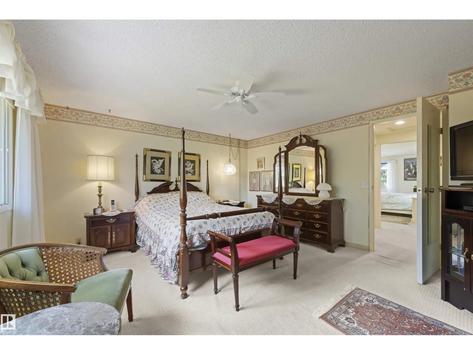 Welcome to this cherished, forty-five-year-owned home in prestigious Blue Quill Estates - ideally located directly across from the park, and Whitemud Nature Reserve. The park holds special meaning, having been named in honor of the homeownerâs contributions to Human Rights and the community. Immaculately maintained and full of pride of ownership, this home features a spacious primary bedroom with walk-in closet and ensuite, two additional fabulous-sized bedrooms upstairs, and a main-floor bedroom with ensuite. Numerous updates over the years include concrete and landscaping (16), shingles (17), kitchen and appliances (17), and newer furnace and central AC. While move-in ready, the home also presents an exciting opportunity for the next owner to add their personal touch. Just minutes from the Derrick Golf & Winter Club, top-rated schools, and with easy access to the University of Alberta and downtown. A rare chance to become part of a beloved neighborhood and continue the legacy of this exceptional home. (id:27476)