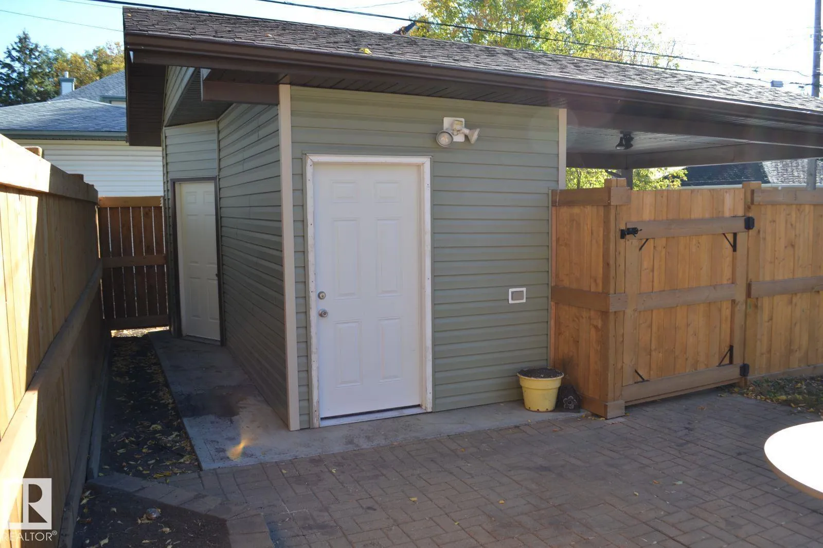 Visit the Listing Brokerage (and/or listing REALTOR®) website to obtain additional information. Charming bungalow in the heart of Bonnie Doon! Main floor features cove ceilings, plaster arches and hardwood floors. Upstairs offers a spacious primary bedroom, second bedroom, and a renovated bath. The finished basement is ideal for in-laws or shared living, with a separate entrance, 2nd kitchen, bedroom, full bath, and shared laundry. Recent upgrades include vinyl siding, eavestroughs, downspouts, fence and gates, front deck and railings, HWT, newer shingles (house & carport), soundproofing between floors and engineered wood floors in basement. The private fully fenced backyard features paving stones, built-in planters and flower beds, fireplace, perfect for summer evenings. The carport has two separate powered storage units with powered stalls and sensor lighting. Well maintained, pet-free and smoke-free. All this, just steps from parks, cafés, schools, Bonnie Doon Mall, Whyte Ave, River Valley, and New LRT (id:27476)