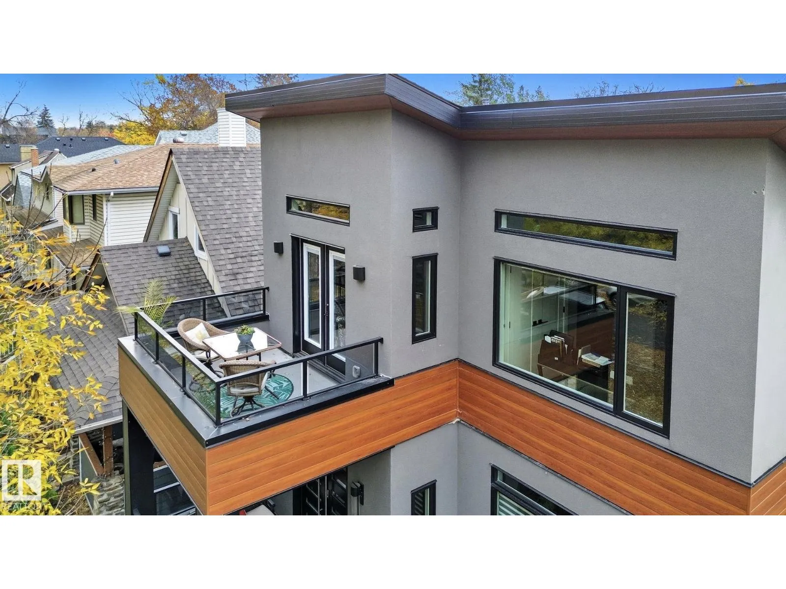 CUSTOM BUILT home with Legal 2-Bedroom Suite in the Heart of Garneau! Just ONE BLOCK from the University of Alberta, Whyte Avenue. Thoughtfully designed and meticulously finished, this home features Central A/C, Eco-Shield Argon windows, and an open-concept main floor filled with high-end custom finishes. showstopper kitchen with Bosch appliances, a waterfall quartz island and backsplash, and a walkthrough pantry with coffee bar. Upstairs, you'll find three bedrooms plus a vaulted den, including a luxurious primary suite with private second-floor balcony overlooking a beautiful, mature tree-lined street. The fully legal 2-bdrm BASEMENT SUITE features a PRIVATE ENTRANCE, its own laundry, and a full kitchenâideal for rental income or multi-generational living. Additional highlights include a custom-built aluminum front porch, double detached garage, and a south-facing, professionally landscaped, low-maintenance yard. (id:27476)