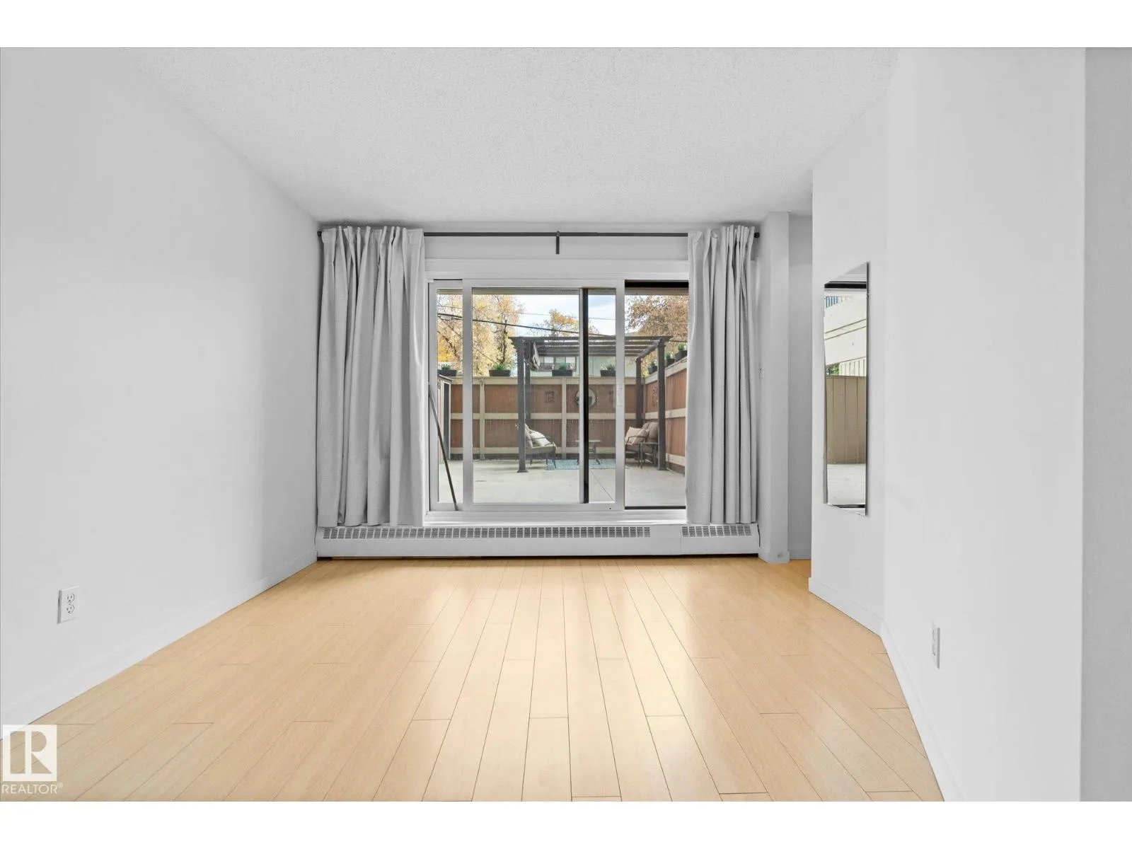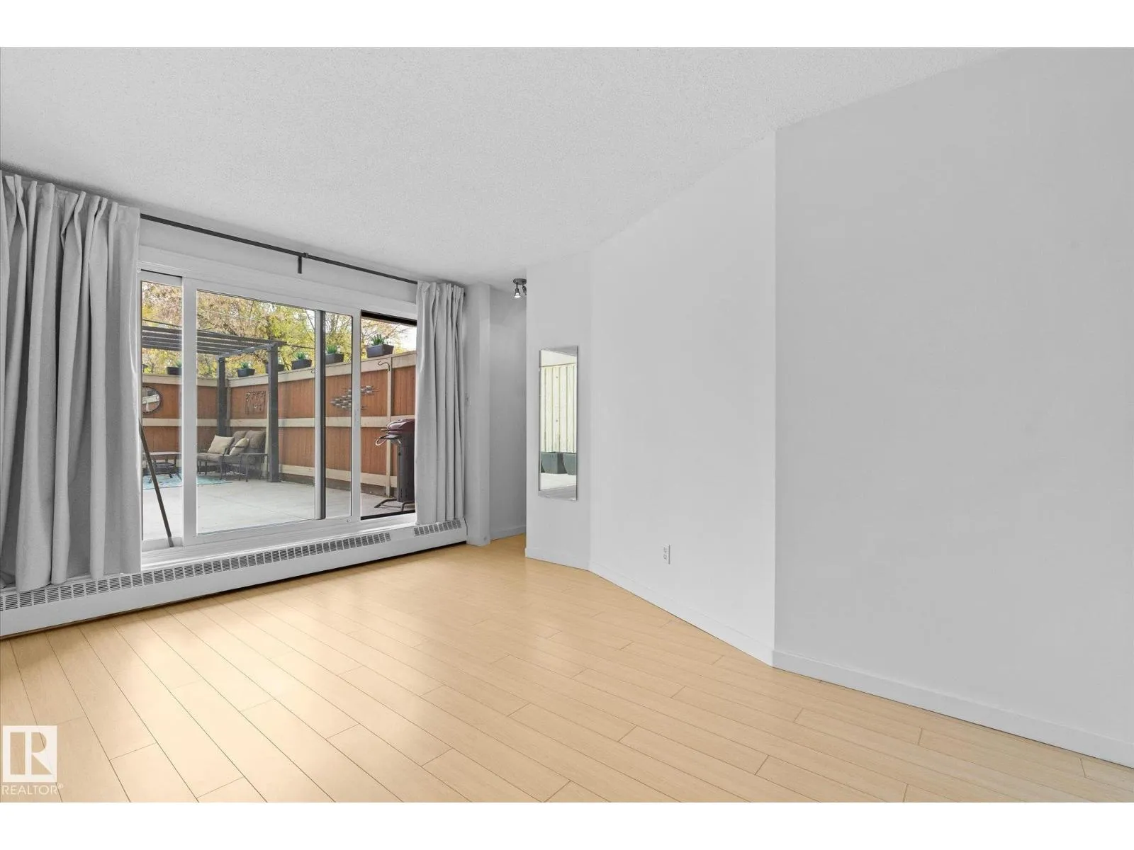 This is the condo youâve been waiting for! Ground-floor concrete unit with one of the best patios in the city. Over 400 sq. ft. of private outdoor space, southeast-facing for endless sunshine. Morning coffee? Evening wine? Youâll never want to leave. Inside, enjoy peace and quiet thanks to solid concrete construction - the ultimate sound barrier. Condo fees cover heat, water, and electricity, keeping your monthly costs predictable and stress-free. Letâs talk location: walk to Grant Mac, Rogers Place, top restaurants, shopping, and Edmontonâs River Valley trails. Everything downtown has to offer, right at your doorstep. Forget the gym membership - the buildingâs fitness centre is on the main floor and easily one of the best youâll find in Edmontonâs condo scene. Add in underground parking, so no more scraping windows or shovelling snow, and this place truly checks every box. The suite itself has been tastefully updated with soft-close kitchen cabinetry and modern flooring throughout. Do NOT miss out! (id:27476)