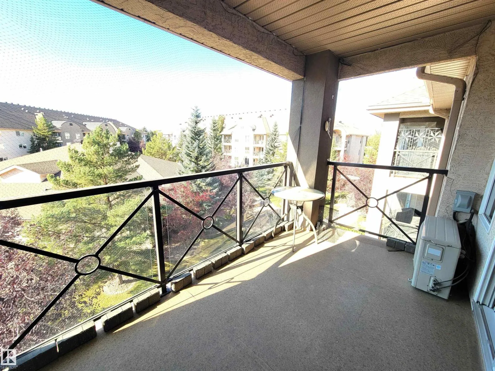 Bright, spacious, and move-in ready! This beautifully maintained top floor 1176sf condo (age 55+) features 2 spacious bedrooms and 2 full bathrooms. The open-concept design includes a generous dining area and a sun-filled living room (with high vaulted ceilings) with access to your private balcony with views to the courtyard. The large primary suite offers a walk-through closet and a 4-piece ensuite, while the second bedroom is conveniently located next to the main bath. Highlights include in-suite stacked washer/dryer, heated titled underground parking with storage cage, and air conditioning. Located in one of the Edmontonâs top-rated adult living communities, just steps from Meadowlark Mall, medical clinics, dining, grocery store and the upcoming LRTâwith easy access to a wide range of amenities. Residents can enjoy the recreation centre, exercise room, library, workshop, car wash and guest suite. This is one of the best adult condo complexes in the cityâcome check it out! (id:27476)
