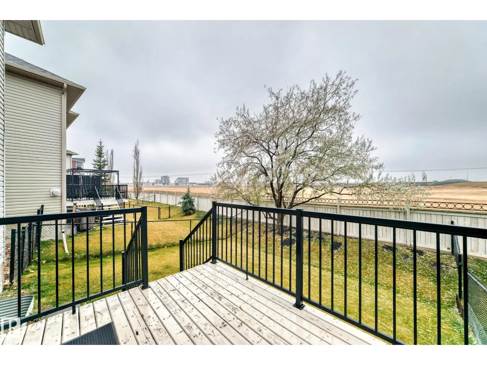 Best location in complex backing onto green space and easy access to Anthony Henday! This great open plan comes complete with Double attached garage, deck, fence, landscaping and ground maintenance, 3 bedrooms plus den,2.5 bathrooms, all appliances and all window coverings. Main floor features: spacious foyer, great room, dining room, kitchen w/raised eating bar & walk-in pantry, maple colored cabinets, tile backsplash. The upper level features: Spacious Master bedroom with large double closet and 4 piece ensuite with tub and shower. The 2nd and 3rd bedrooms are also located on the upper level along with another 4 piece bath. This unique plan boasts a den/flex area on the second floor. . Enjoy maintenance-free living at its best! MOVE IN READY.. (id:27476)