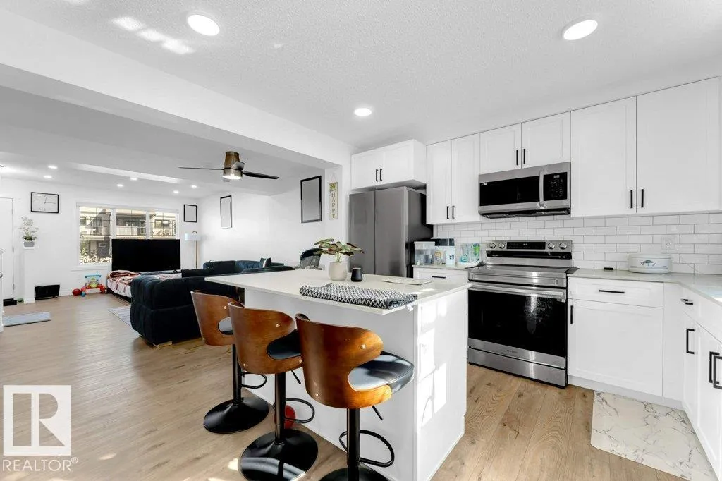 **ASTER**SOUTH EDMONTON**FINISHED BASEMENT**SECOND KITCHEN**Step into this beautifully designed modern home that perfectly combines comfort, functionality, and elegance. The open-concept main level welcomes you with a bright and spacious living area, ideal for both entertaining and relaxing. The kitchen features contemporary finishes, a large workspace, and seamless flow into the dining and living areasâcreating the perfect atmosphere for gatherings and daily living. Upstairs, the primary suite offers a peaceful retreat with a private ensuite and a generous walk-in closet. Additional bedrooms provide flexibility for family, guests, or a personal home office. Every corner is thoughtfully designed to offer both convenience and style. The lower level adds even more versatility, featuring an additional kitchen, a recreation area, and a private bedroom with its own ensuiteâperfect for extended family, guests. this home offers easy access to parks, trails, schools, and everyday amenities. (id:27476)