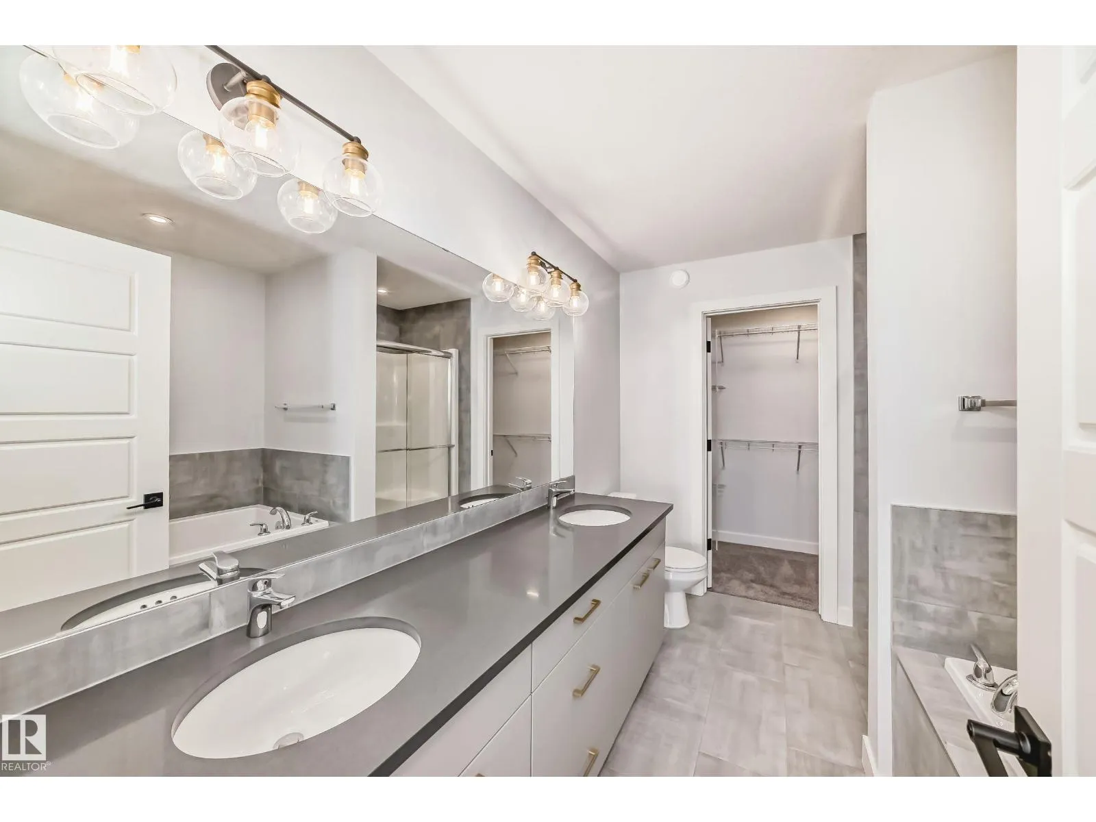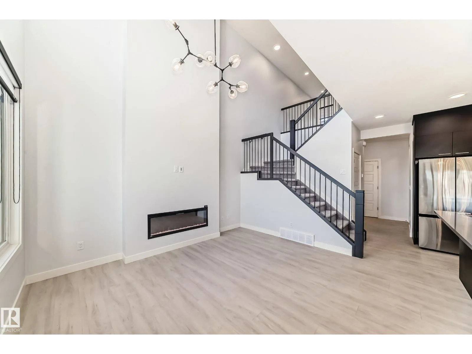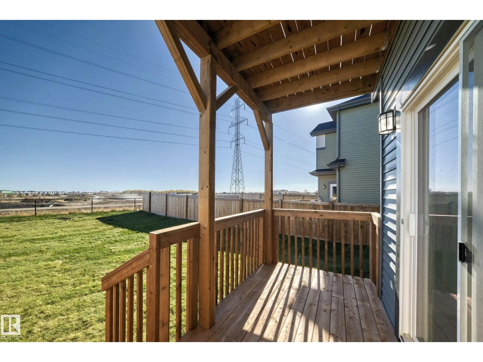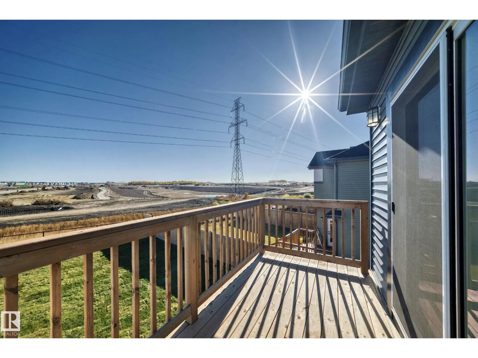 Welcome to the desirable Orchards community in Southeast Edmonton. This single-family shows 10/10 and features an OPEN-TO-BELOW layout with a SIDE ENTRANCE. Enjoy the benefits of a new home without the extra expenses. This home comes fully landscaped, front and back, is fenced, and has a deck. The main floor has a 9' ceiling, an open to below feature with a fireplace, bright airy windows, a gorgeous matte black upgraded kitchen and a complimentary SPICE KITCHEN as well. The pantry is spacious, and all appliances are included. The second floor features a central bonus room, 3 bedrooms and a full-sized laundry room. The beautiful primary bedroom features a private balcony that overlooks the green space. The 5-piece en suite is a dream and leads to the large walk-in closet. The side entrance is great for a future basement suite. The backyard is pie-shaped and backs a walking trail. There is lots of room for children to play. Enjoy parking your cars inside the double attached garage on the cold days coming. (id:27476)