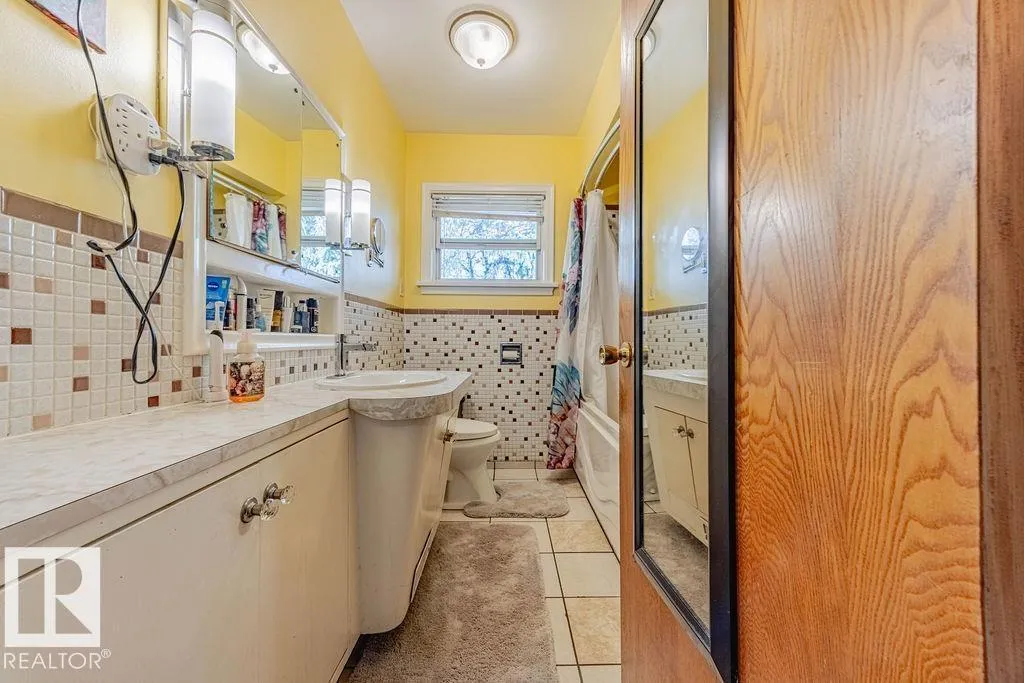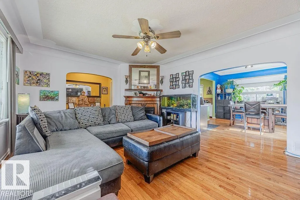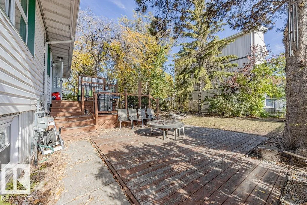 Welcome to this opportunity-packed 1953-built bungalow in Delton, original character & modern potential! Main floor has 2beds, full bath w/ jacuzzi tub, a bright dining area w/ large windows, & a cozy living room w/ fireplace. Well-planned, tucked-in kitchen is filled w/ natural light creating an inviting atmosphere. SEPARATE ENTRANCE leads to a fully developed basement w/ second kitchen, 2beds, full bathroom, & dual furnaces, offering legal suite potential. Private backyard w/ a deck, pond & mature trees. Sitting on a large RF3-ZONED LOT, this property offers the potential to subdivide into 3lots â ideal for infill development / duplexes, single-family homes, or small multi-family builds. ADDITIONAL FEATURES include: 2x6 construction, large concrete parking pad for vehicles or RV parking with extra electrical outlets. This property checks all the boxes for a first-time homebuyer, investor, or developers. Great location close to schools, transit, shopping, and downtown access. (id:27476)