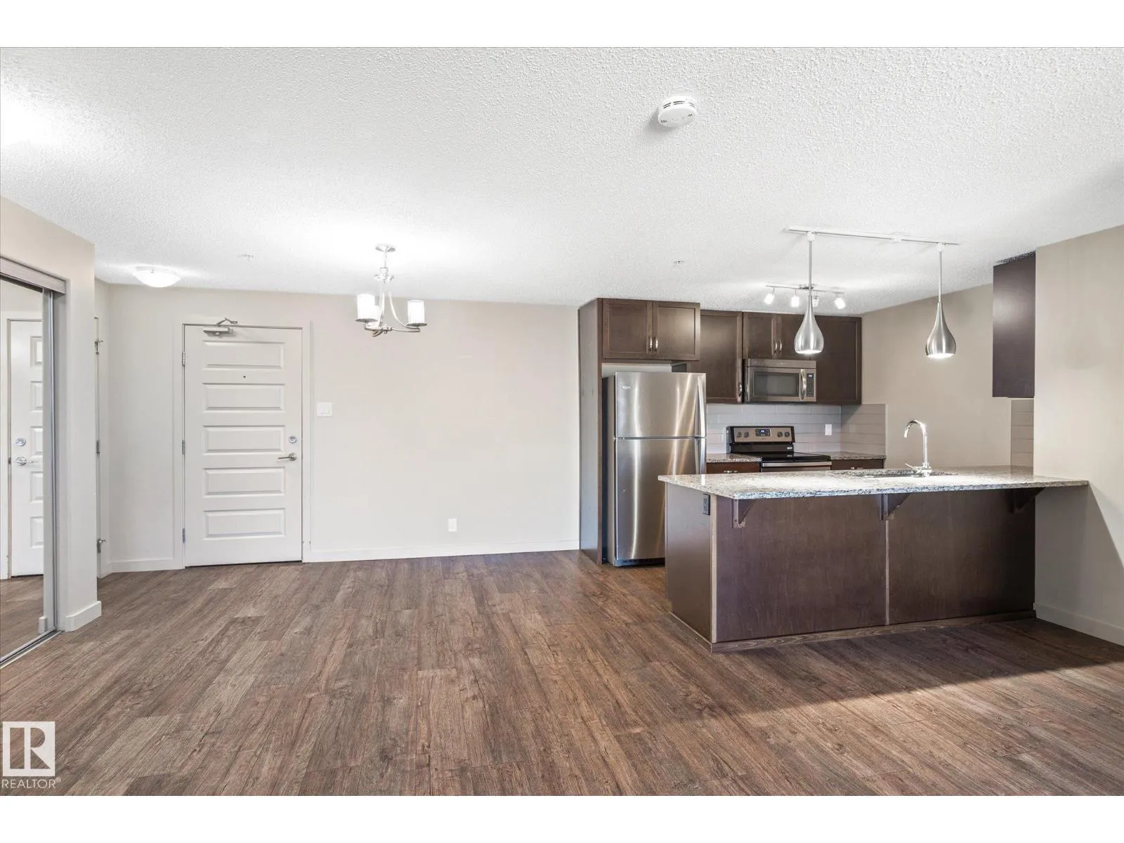 Sunny west facing balcony in the upscale Ara at Summerside that comes with Summerside Lake access! Great functional layout w/ bedrooms located on opposite ends of the unit, separated by the open concept living area. The dark rich cabinetry in the kitchen is nicely illuminated with pendant lighting and is accented with subway tile backsplash and granite counters. The chef will love how the kitchen is nicely equipped with stainless steel appliances. The master bedroom has double walk-through closet to an ensuite with walk in shower and granite counter. The second bedroom is next to the main bathroom. Soak in the sun on the spacious west facing balcony w/gas line. Amenities in the building include large fitness room plus a social room. One titled underground parking stall (#86) plus storage locker (#101) on the same floor. When you own here, you enjoy private access to all the Summerside Lake amenities including swimming, boating, fishing, tennis, skating. Close to schools, shopping, transportation (id:27476)