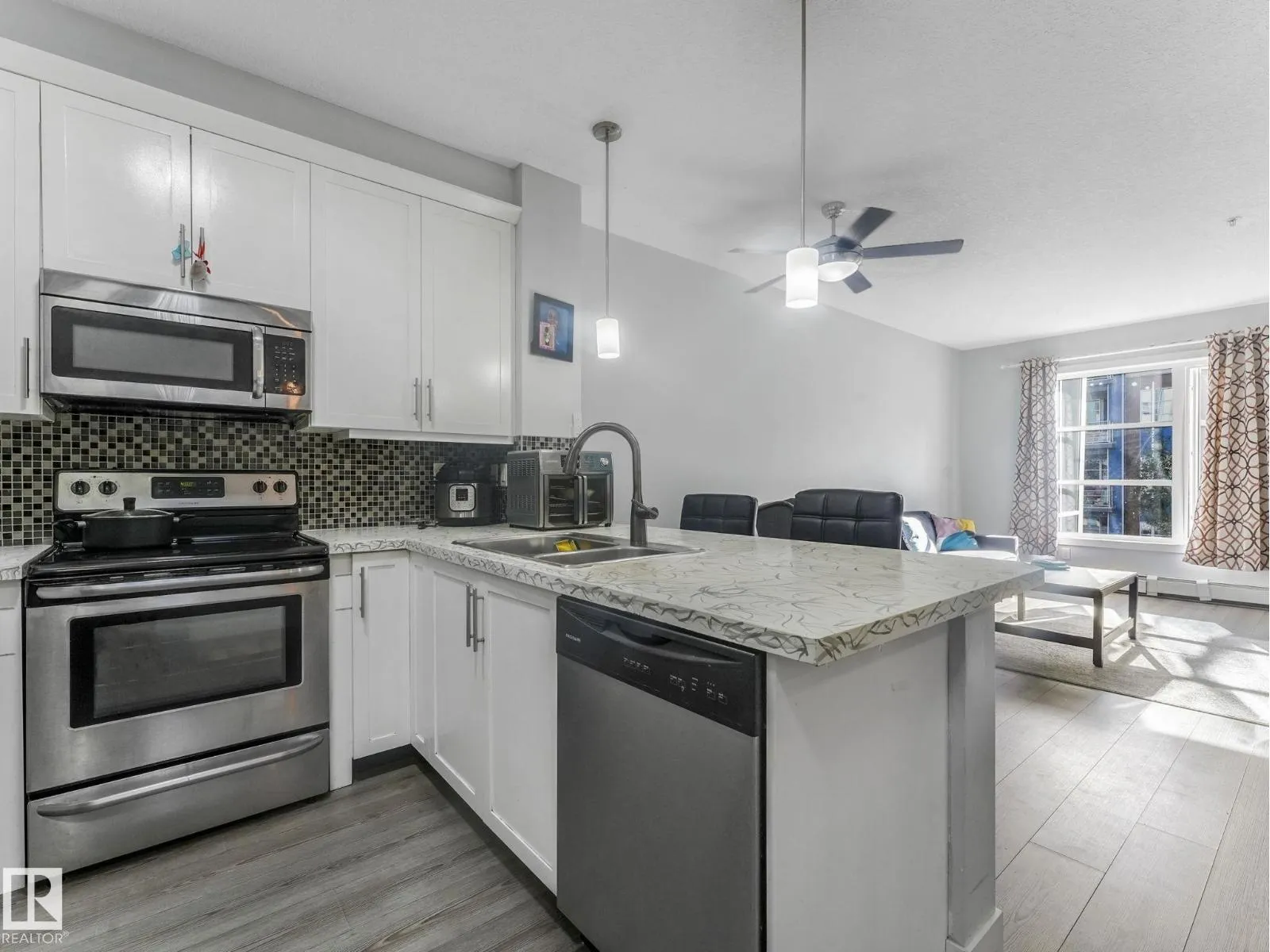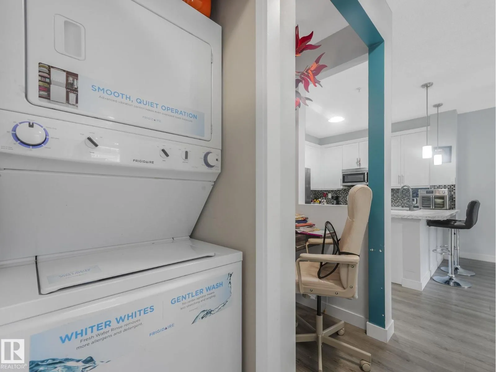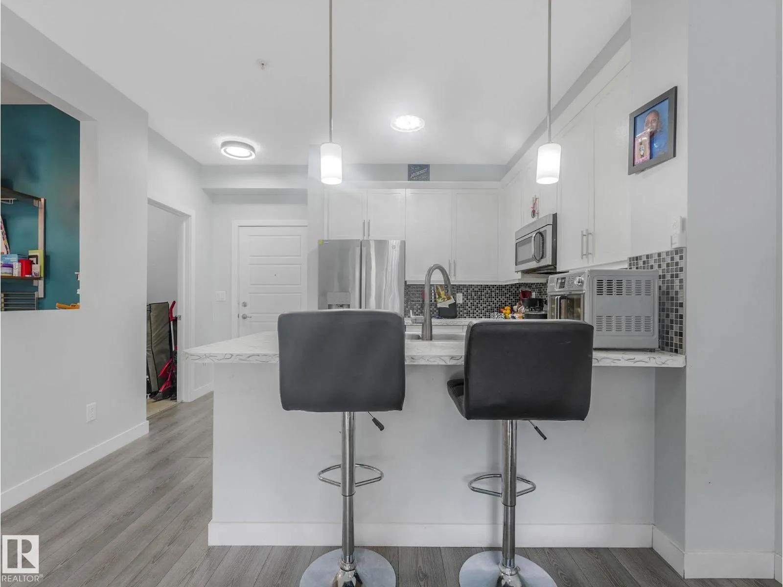 Welcome to Ion in Ambleside, where sophisticated design meets a vibrant, connected lifestyle. This stunning, 803 sqft south-facing suite is a sanctuary bathed in natural light. An open-concept living space with upgraded laminate flooring flows seamlessly into a chef-inspired kitchen. Here, modern white cabinetry and sleek stainless steel appliances create a perfect backdrop for entertaining. Step out onto your private balcony to savour serene and picturesque lake views. Two spacious bedrooms offer tranquil retreats, sharing access to a luxurious spa-like bathroom complete with a deep soaker tub and a separate glass shower. This home is curated for effortless living, featuring in-suite laundry, a dedicated work-from-home nook, and heated underground parking with a private storage unit. Ion further elevates your experience with exclusive amenities including a fitness centre, theatre room, rental guest suite, and an outdoor BBQ gazebo. Boutique shopping and chic dining are mere steps from your door. (id:27476)