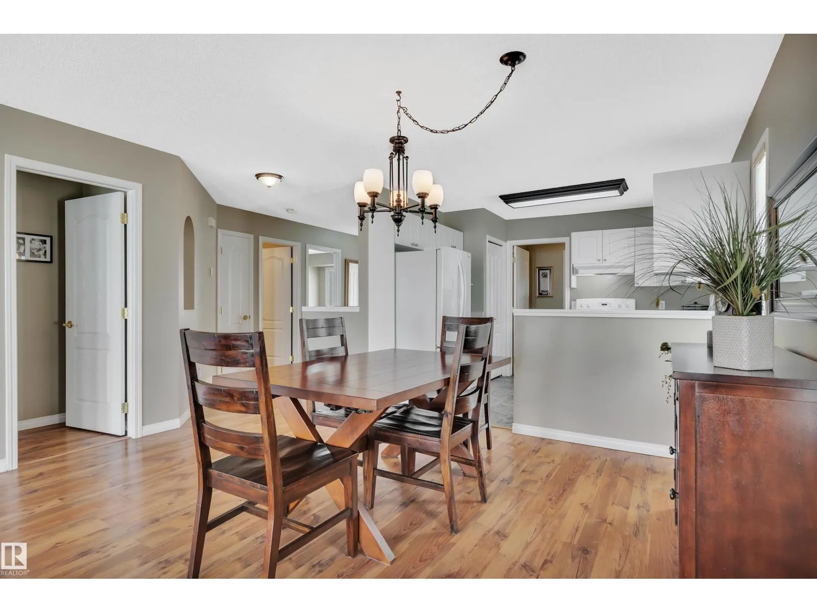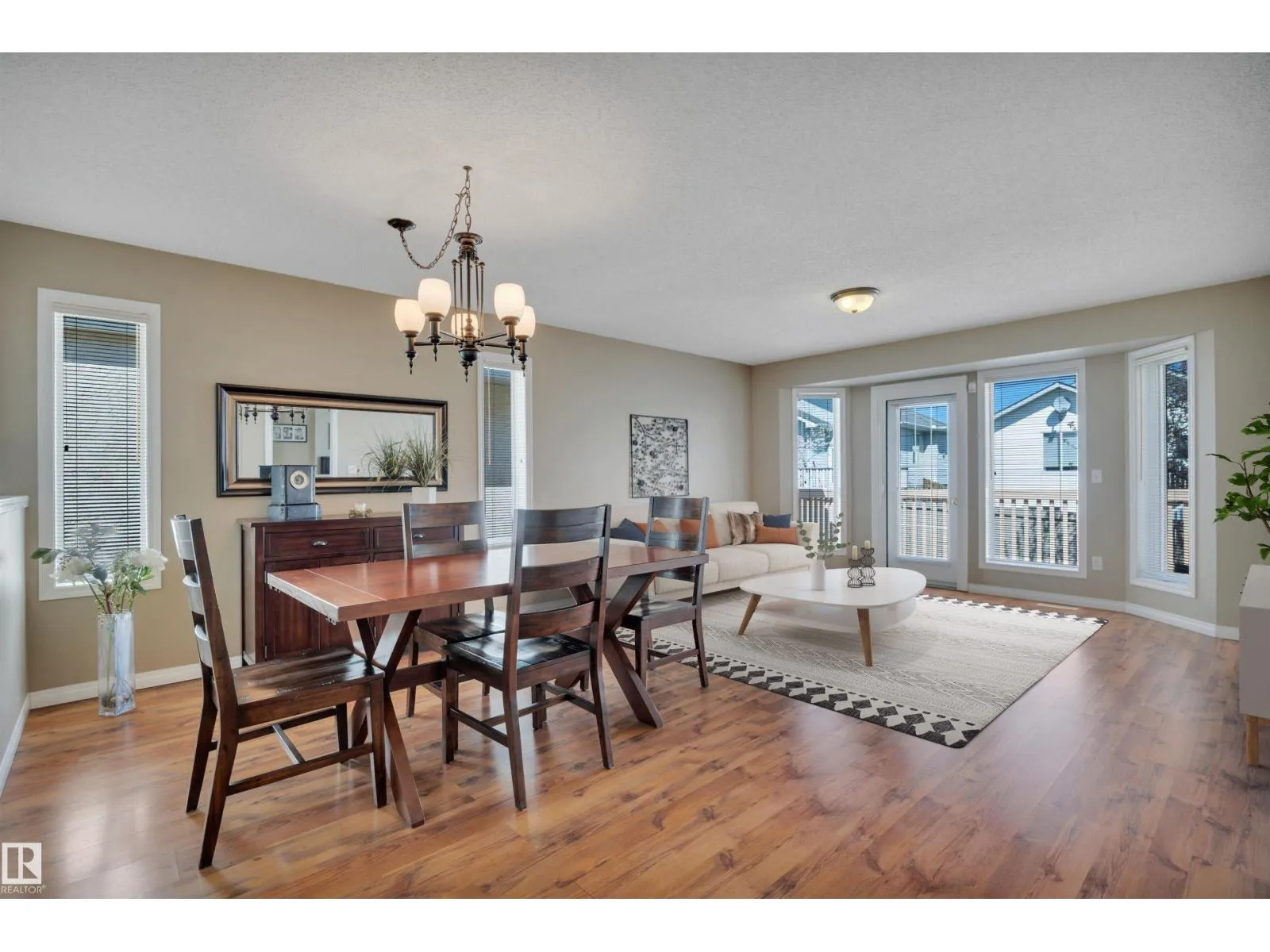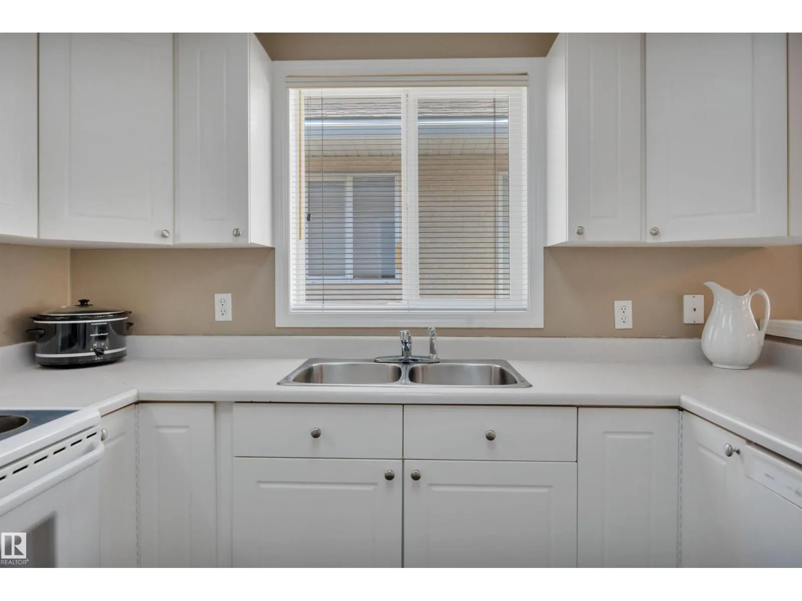 This bright and beautifully maintained half-duplex bungalow with attached double garage is situated in the sought after 55+ adults-only community, Miller Garden Estates. The open concept main floor features all that you need, including a large kitchen with pantry and ample counter space, a dining area, spacious living room, main floor laundry, along with 2 bedrooms and 2 full baths. The rear deck with built-in BBQ line makes entertaining a breeze. Relax in your primary bedroom with bay window, ensuite, and large walk-in closet. The unfinished basement offers a brand new hot water tank and large flex space for storage or large family gatherings. Easy access to the Anthony Henday, public transit, Clareview Recreation Centre, walking paths, and many shops and restaurants. You'll be close to all the action! Pet policy: up to 2 animals under 15 at the shoulder. Current condo fees only $395/mo. (id:27476)