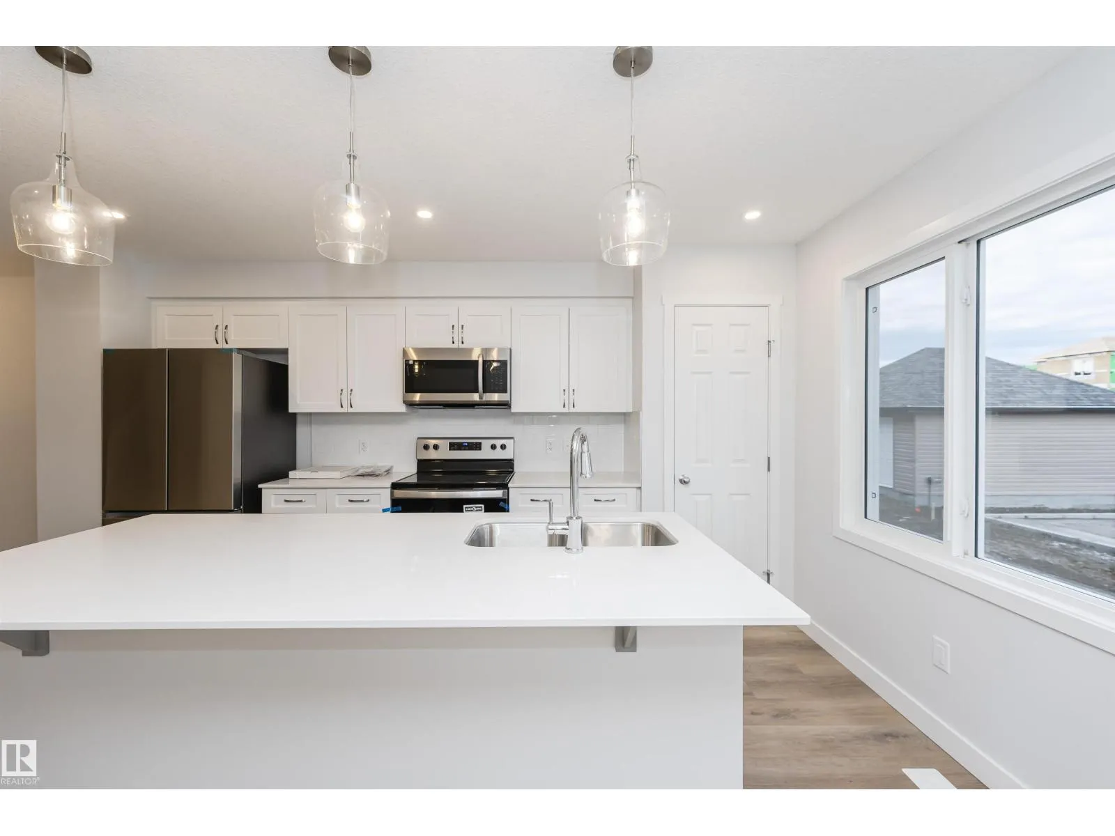 Welcome to this stunning 1,433 sq ft, 3-bedroom, 2.5-bathroom newly built home nestled in the heart of Chappell. As you step inside, you're greeted by elegant luxury vinyl plank flooring that flows seamlessly throughout the great room, kitchen, and breakfast nook. The spacious kitchen is a chef's delight, featuring a stylish tile backsplash, a central island with a flush eating bar, quartz countertops, and an under-mount sink. Adjacent to the nook, conveniently tucked away near the rear entry, you'll find a 2-piece powder room. Upstairs, the serene master bedroom boasts a generous walk-in closet and a 3-piece en-suite. Two additional bedrooms and a well-placed main 4-piece bathroom complete the upper level. Double garage concrete pad is set in the back. This home is perfectly situated close to all amenities, with easy access to Anthony Henday Drive and Whitemud Drive. (id:27476)