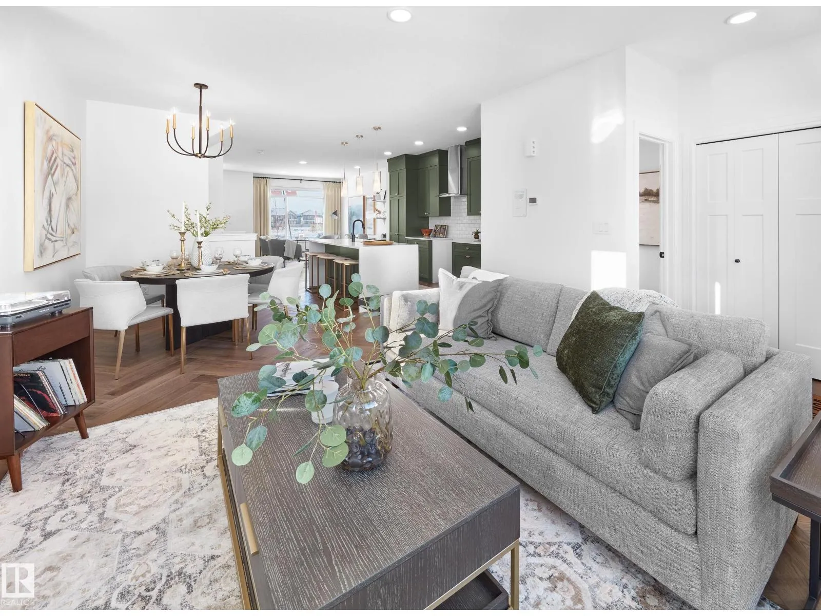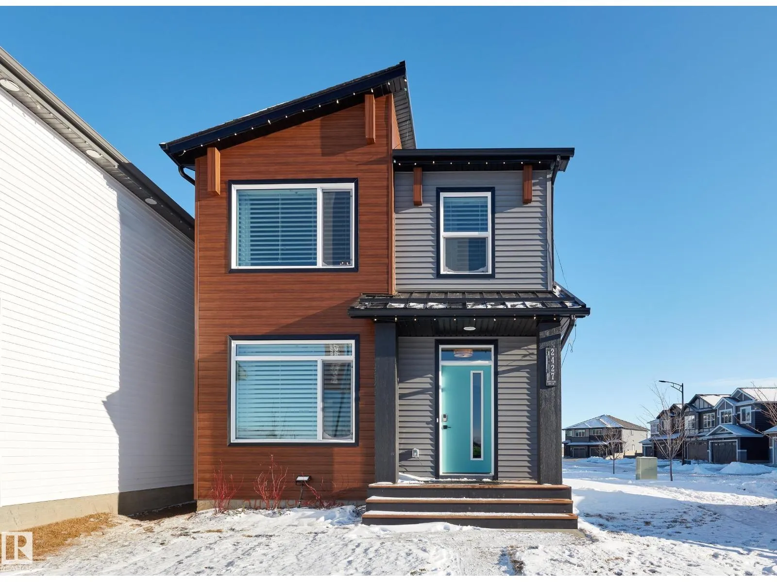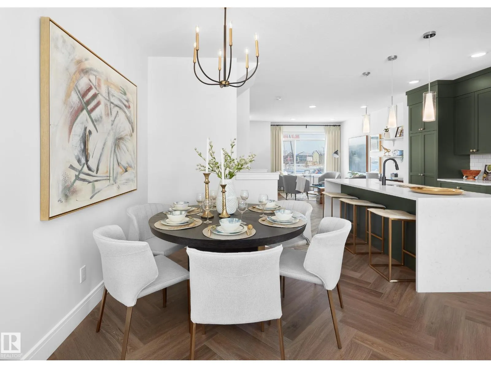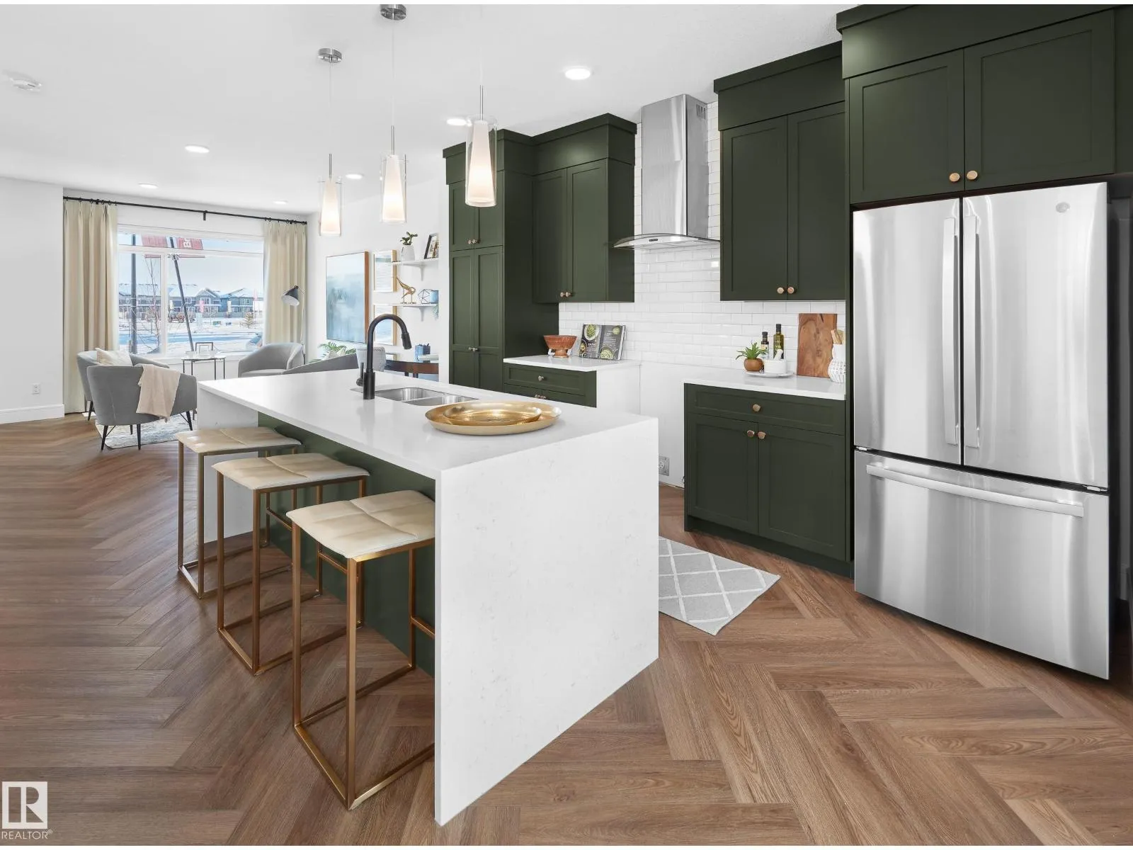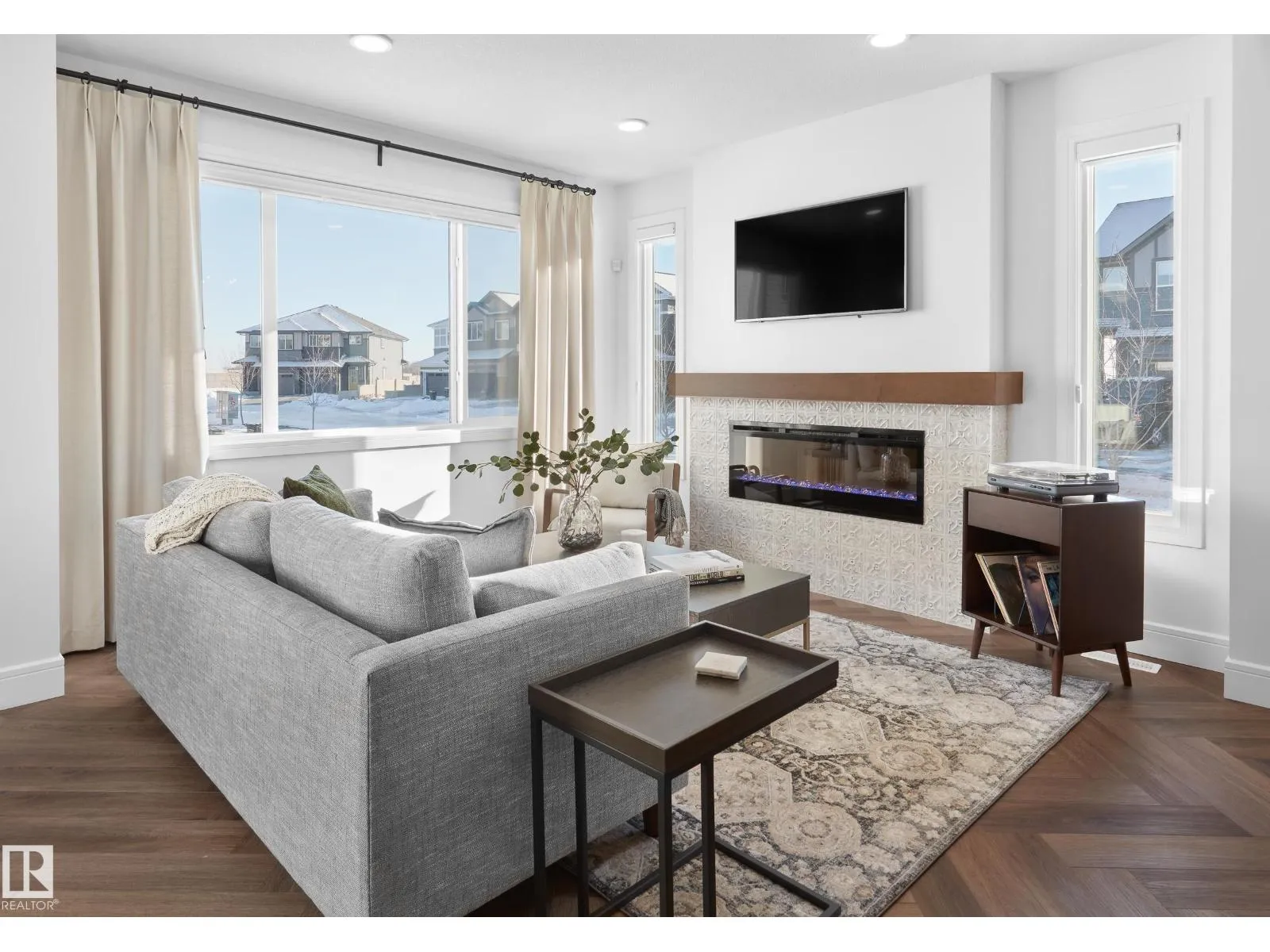 **SHOWHOME for SALE** All window coverings, Wall Art and a 20x20 GARAGE included. Welcome to the Asher, where functionality meets modern living. This current showhome has been thoughtfully upgraded with the most luxuriest upgrades including herringbone vinyl plant install and moden railing throughout. This thoughtfully designed home combines style and functionality with a side entrance ready for future basement development. The kitchen features a chimney hood fan and beautiful upgraded cabinetry. This home also has two beautiful living spaces on the main floor and a large dining area. It is located on a CORNER LOT with extra windows and a landscaped front yard with a rear deck already built. The Orchards is a vibrant, family-friendly community in southeast Edmonton, this home provides access to an abundance of parks, ponds, and walking trails. Residents also enjoy exclusive access to a private 8-acre clubhouse featuring amenities for all ages, including a spray park, NHL-sized skating rink, & playground (id:27476)