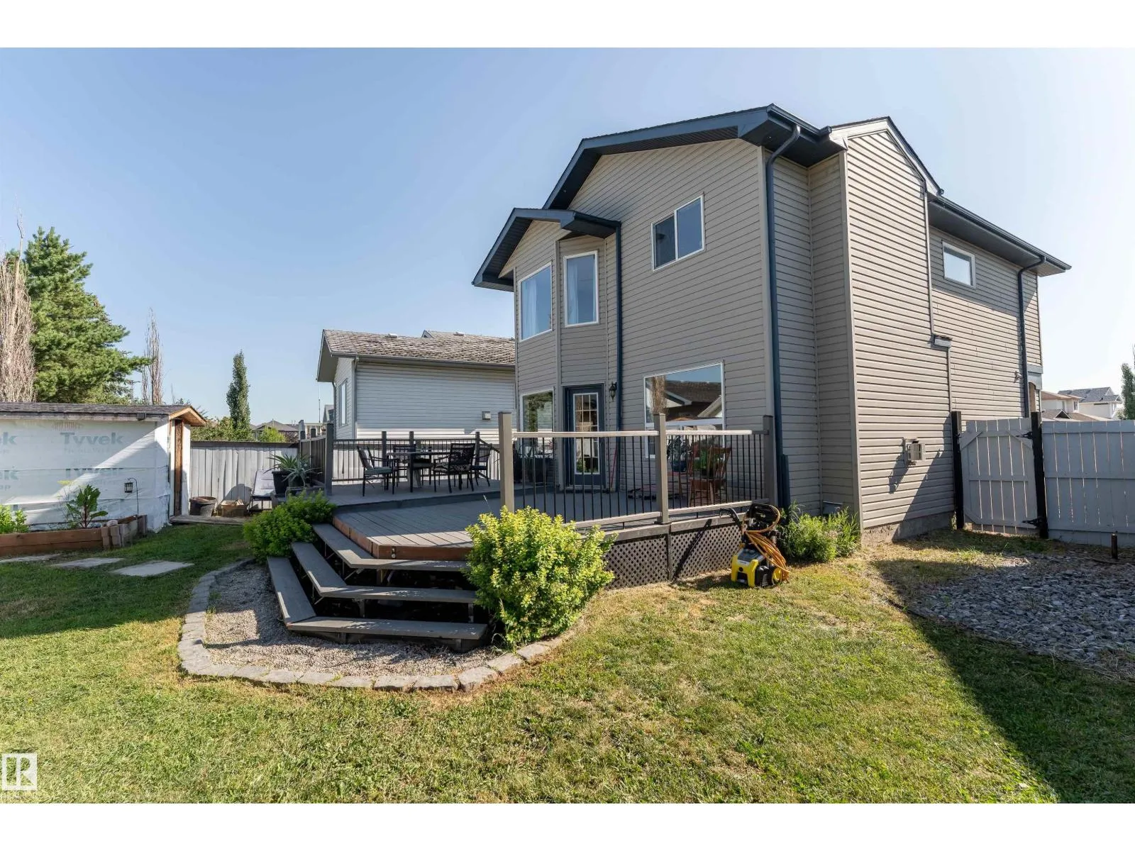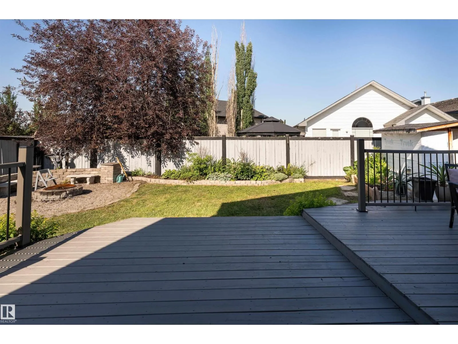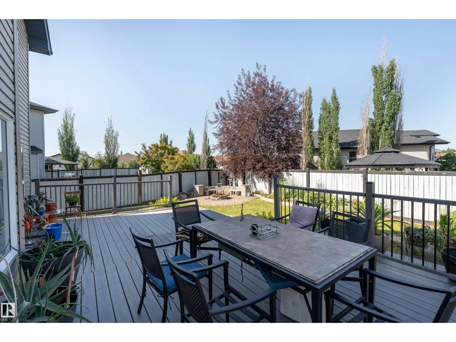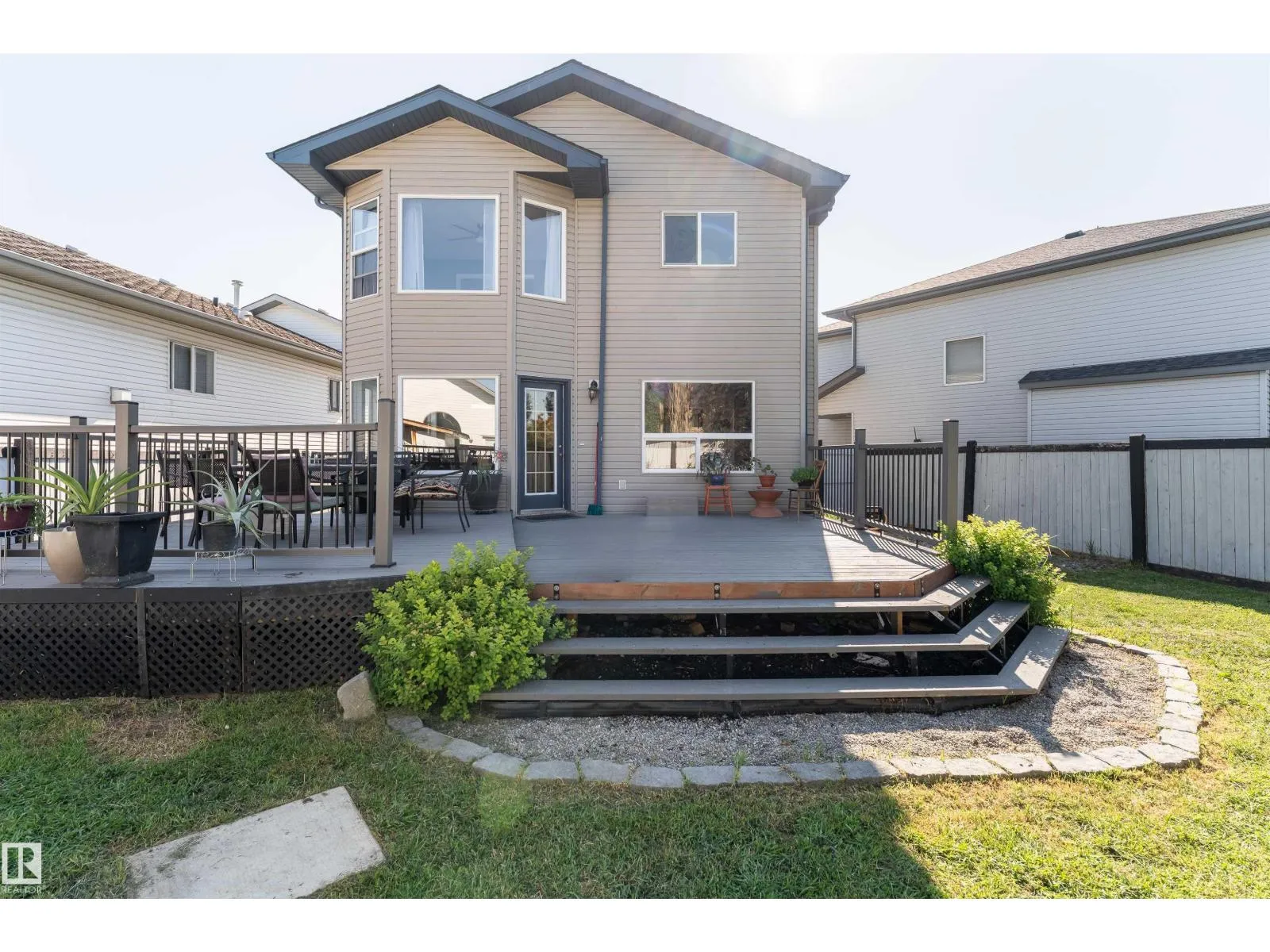 Elegant and spacious 1,600 sq ft 2-storey home in prestigious Oxford. Step into an open-concept main floor featuring a sun-filled living room with a stylish tile-surround gas fireplace. The kitchen boasts stainless steel appliances, a corner pantry, and abundant cabinetry, flowing seamlessly into the dining area with access to a large deck overlooking the beautifully landscaped, fully fenced backyard. Upstairs offers 4 well-appointed bedrooms, including a serene primary retreat with walk-in closet and spa-inspired 4pc ensuite. The fully finished basement impresses with a generous rec room, 5th bedroom, 4pc bath with sauna, and laundry. Prime location near Oxford Lake, trails, schools, shops, and more. Shingles were completed 2025. (id:27476)