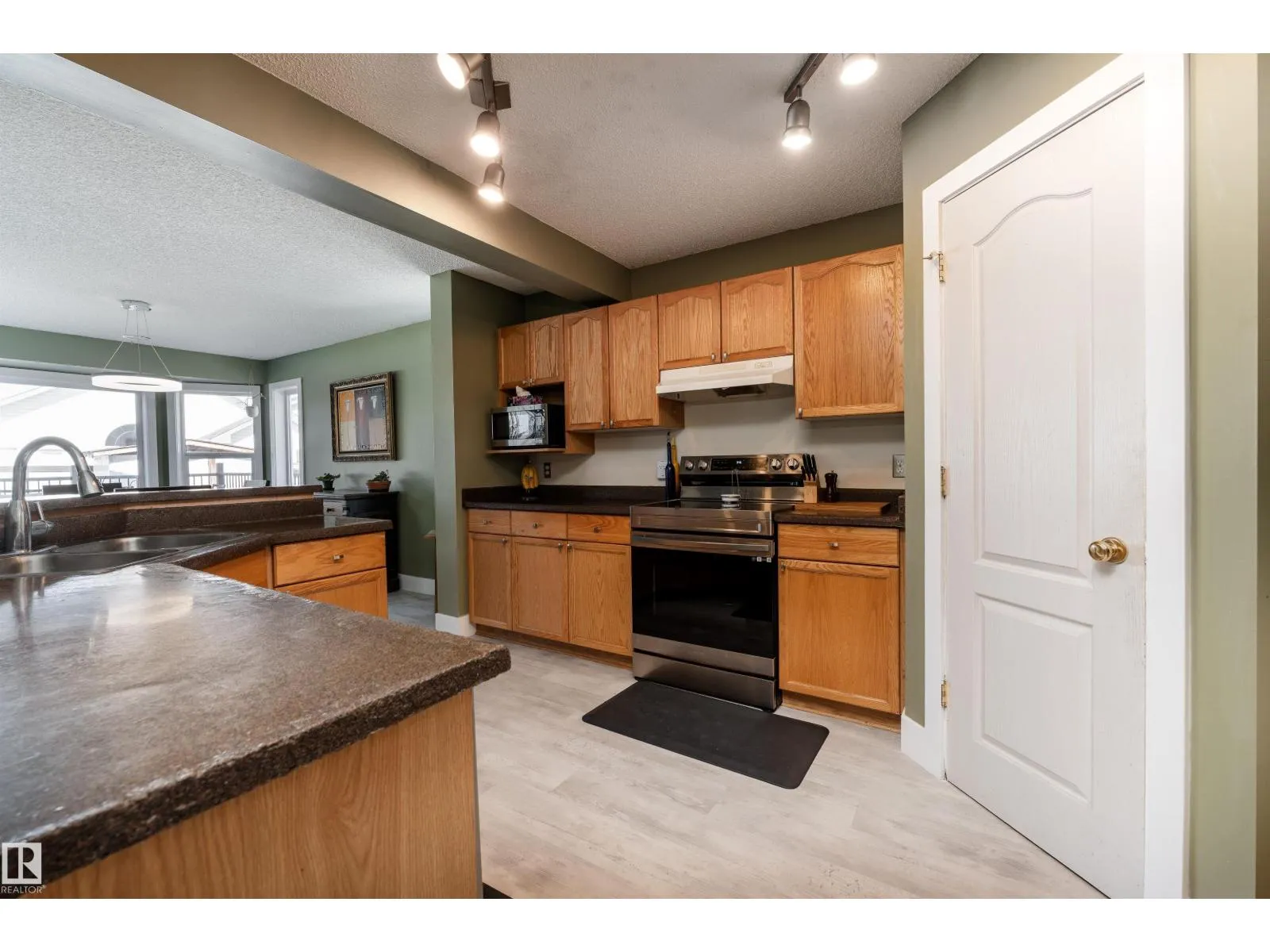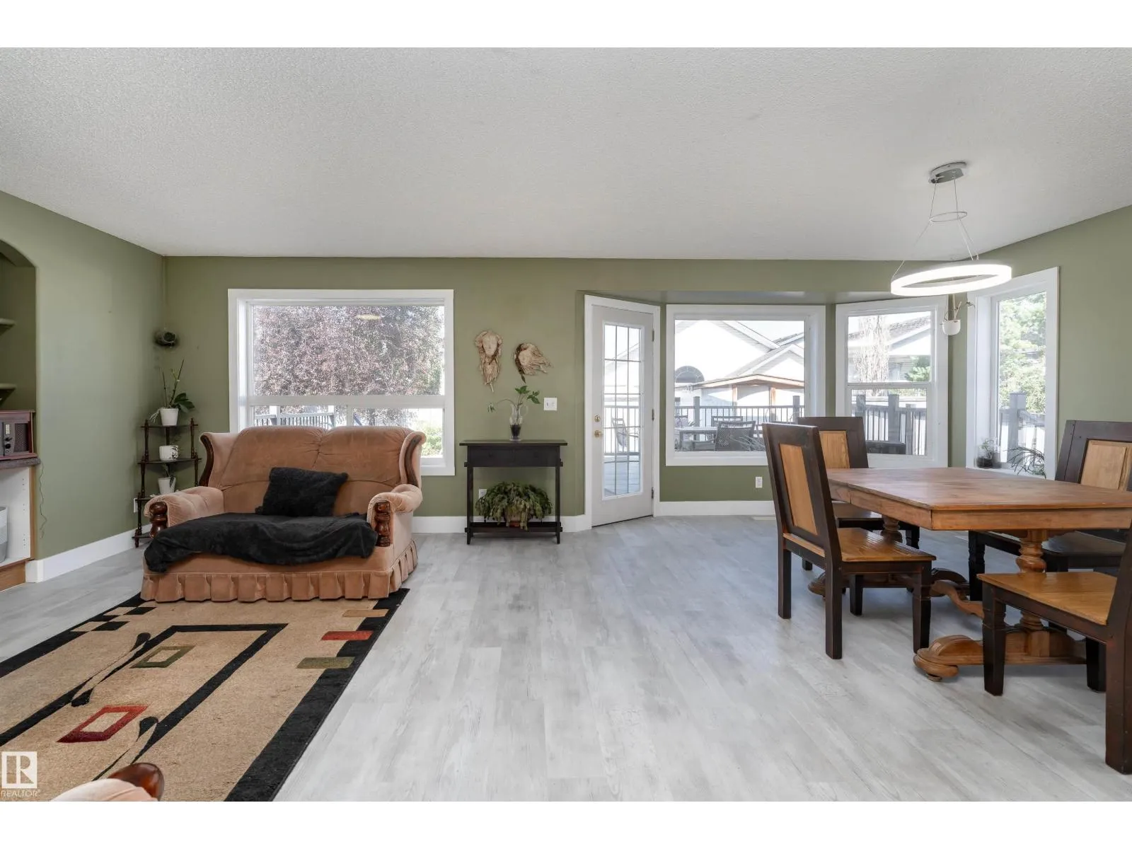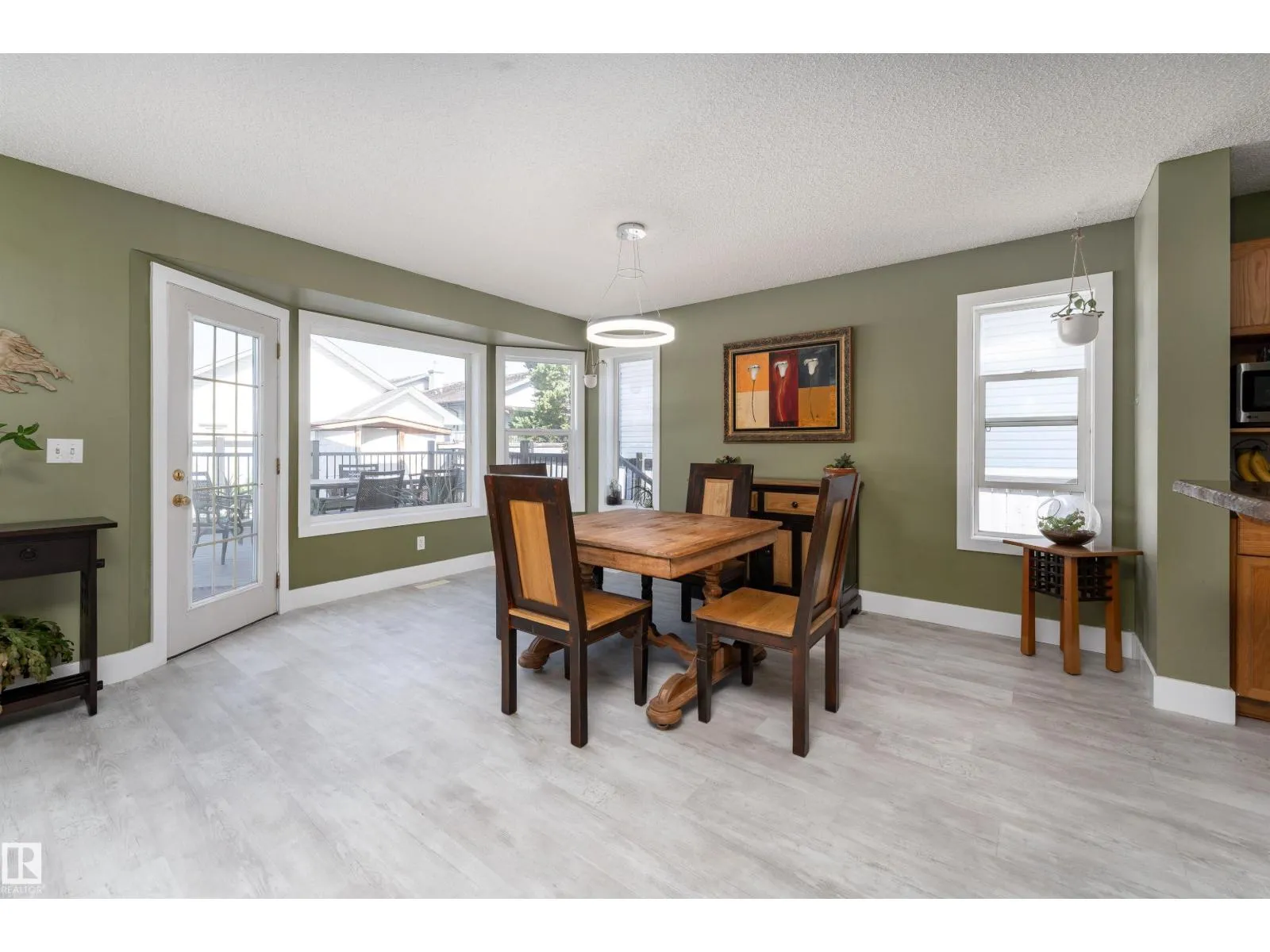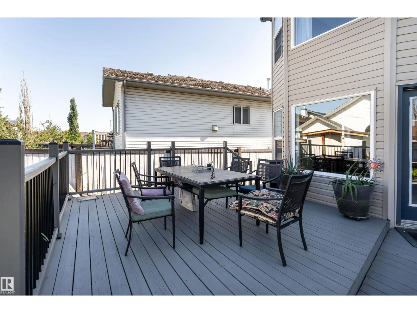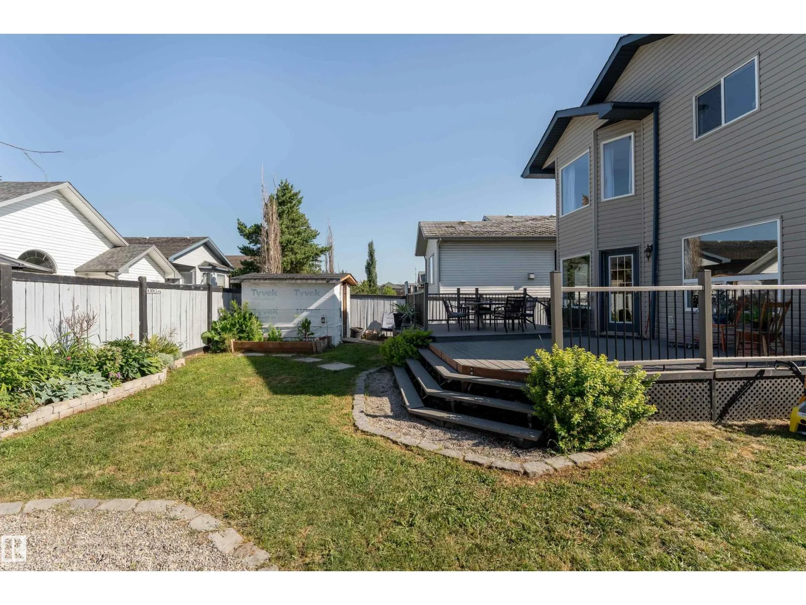 Elegant and spacious 1,600 sq ft 2-storey home in prestigious Oxford. Step into an open-concept main floor featuring a sun-filled living room with a stylish tile-surround gas fireplace. The kitchen boasts stainless steel appliances, a corner pantry, and abundant cabinetry, flowing seamlessly into the dining area with access to a large deck overlooking the beautifully landscaped, fully fenced backyard. Upstairs offers 4 well-appointed bedrooms, including a serene primary retreat with walk-in closet and spa-inspired 4pc ensuite. The fully finished basement impresses with a generous rec room, 5th bedroom, 4pc bath with sauna, and laundry. Prime location near Oxford Lake, trails, schools, shops, and more. Shingles were completed 2025. (id:27476)