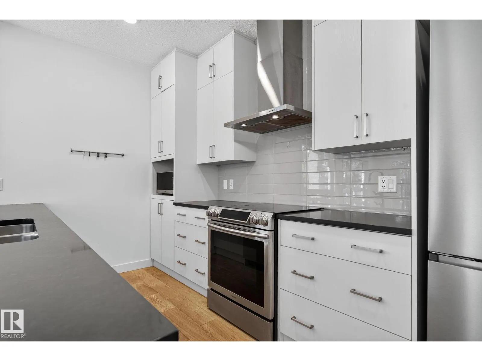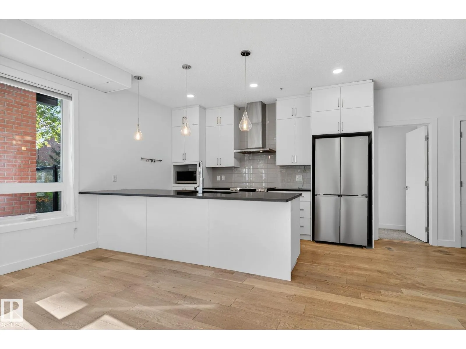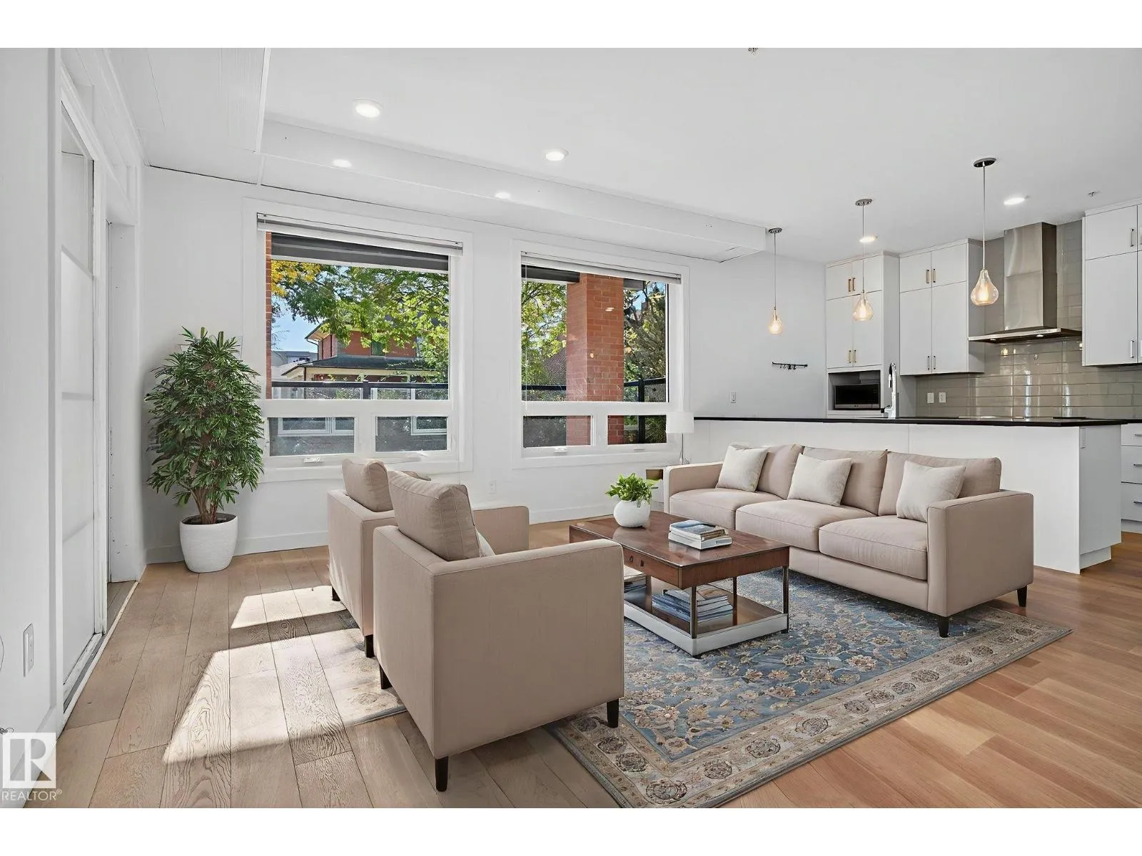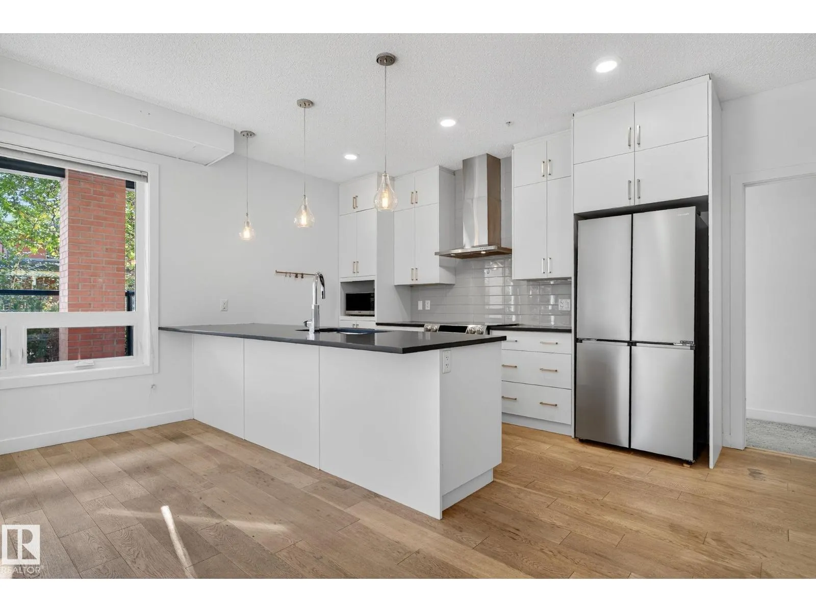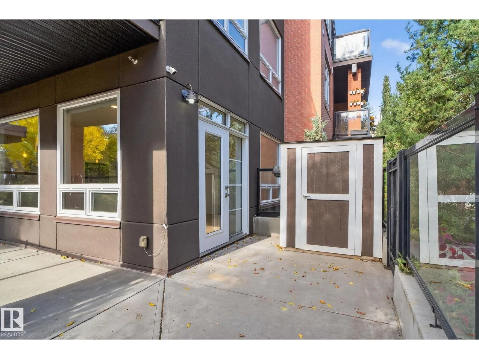 Bright, modern, and full of light â 2 bed, 2 bath corner unit in Strathcona! Rare opportunity to own in the highly sought-after Arthur Condominiums, where modern design meets one of Edmontonâs most walkable locations. Just steps to Whyte Ave, the Old Strathcona Farmersâ Market, and the River Valley, with quick access to the University of Alberta and downtown. Large windows fill this SE-facing ground-floor unit with natural light, creating an inviting, open feel complemented by 9â ceilings. The kitchen features white cabinetry, quartz countertops, and stainless steel appliances. With two spacious bedrooms, two full bathrooms, in-suite laundry, titled heated underground parking with storage, and a large private patio with secure gate and storage, this home checks all the boxes. Experience the perfect blend of comfort, convenience, and style in the heart of Strathcona (id:27476)