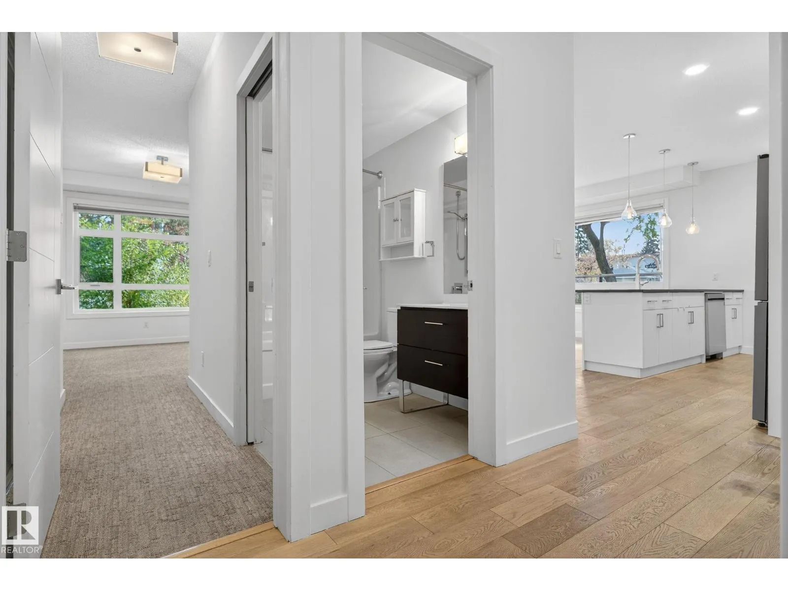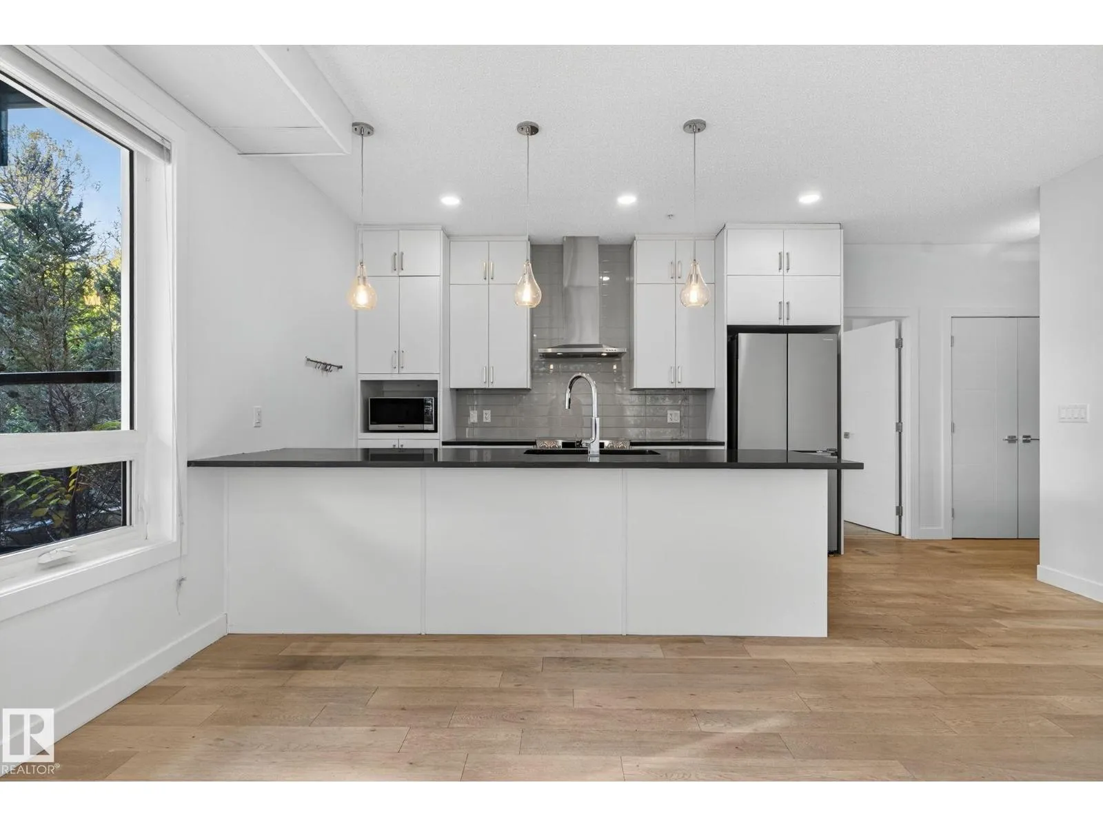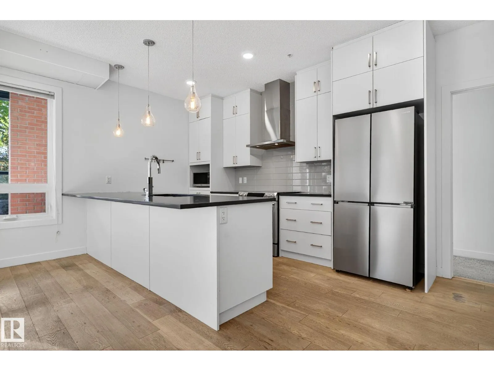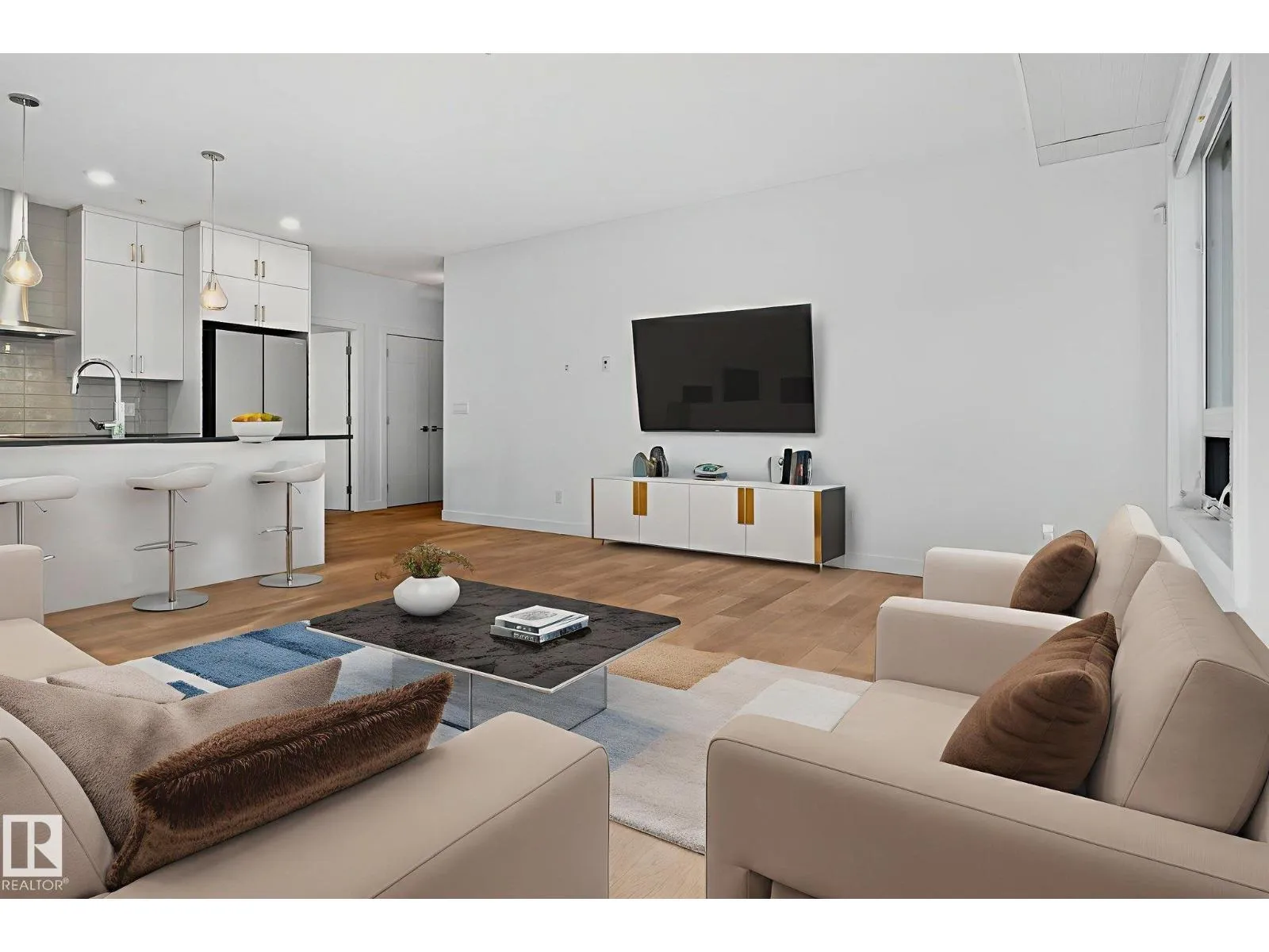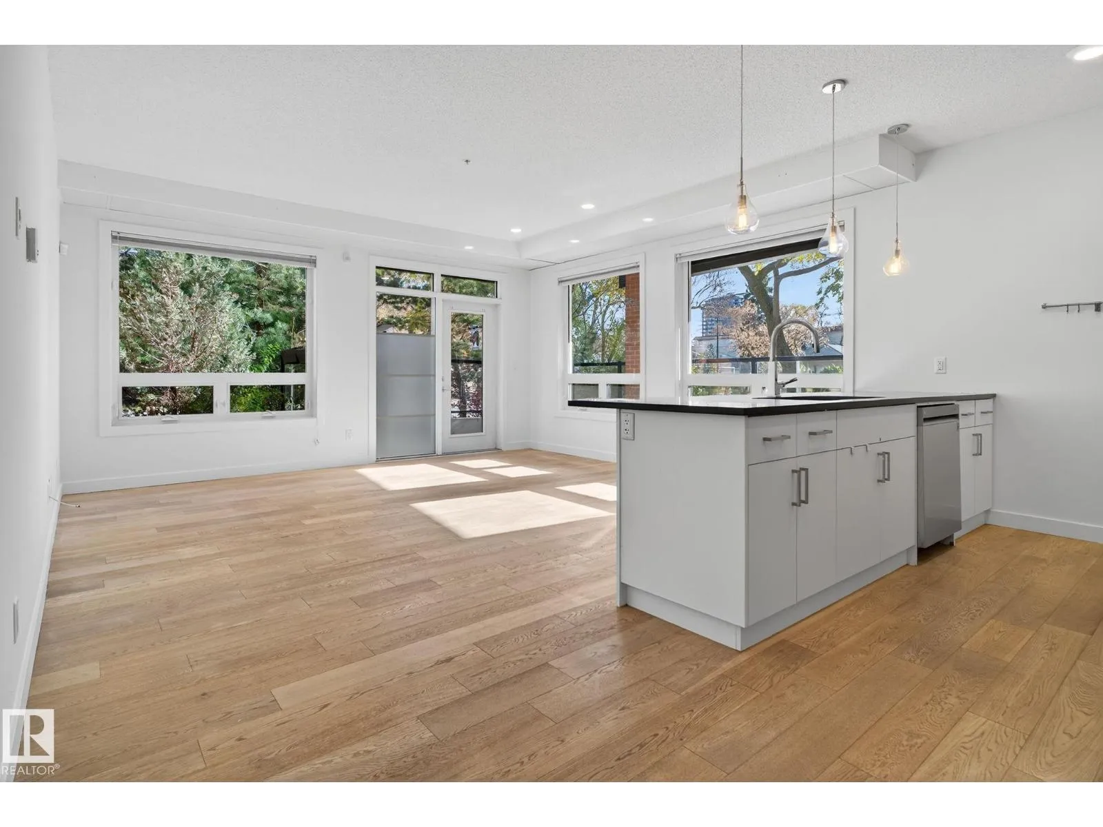 Bright, modern, and full of light â 2 bed, 2 bath corner unit in Strathcona! Rare opportunity to own in the highly sought-after Arthur Condominiums, where modern design meets one of Edmontonâs most walkable locations. Just steps to Whyte Ave, the Old Strathcona Farmersâ Market, and the River Valley, with quick access to the University of Alberta and downtown. Large windows fill this SE-facing ground-floor unit with natural light, creating an inviting, open feel complemented by 9â ceilings. The kitchen features white cabinetry, quartz countertops, and stainless steel appliances. With two spacious bedrooms, two full bathrooms, in-suite laundry, titled heated underground parking with storage, and a large private patio with secure gate and storage, this home checks all the boxes. Experience the perfect blend of comfort, convenience, and style in the heart of Strathcona (id:27476)