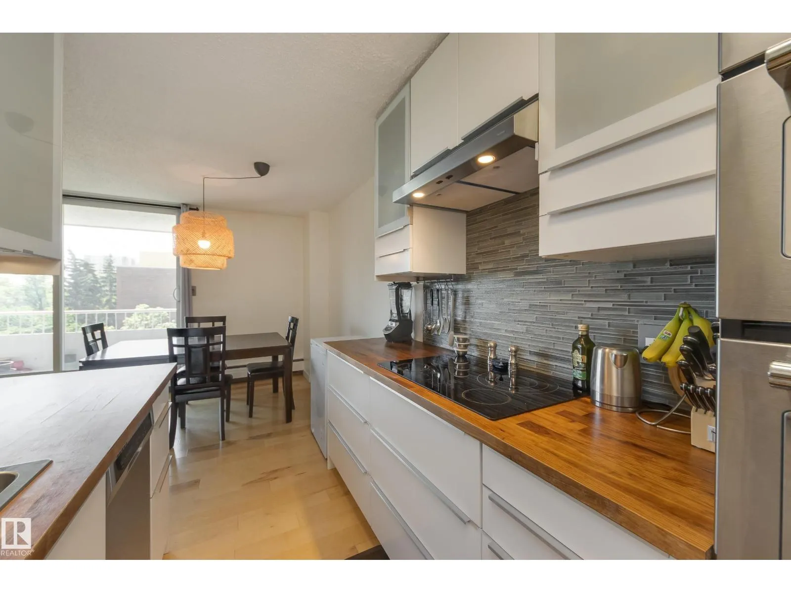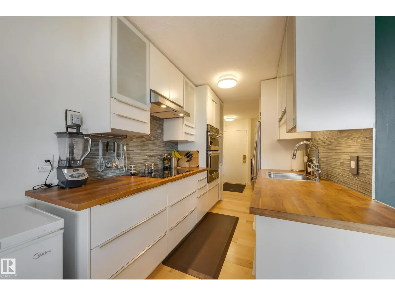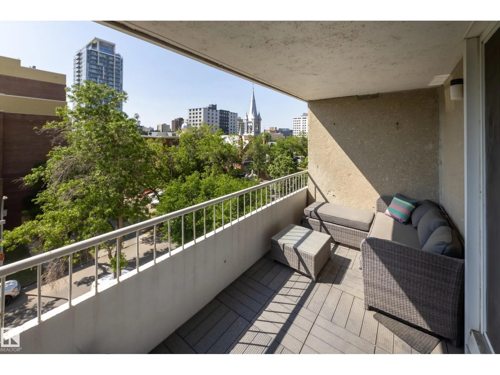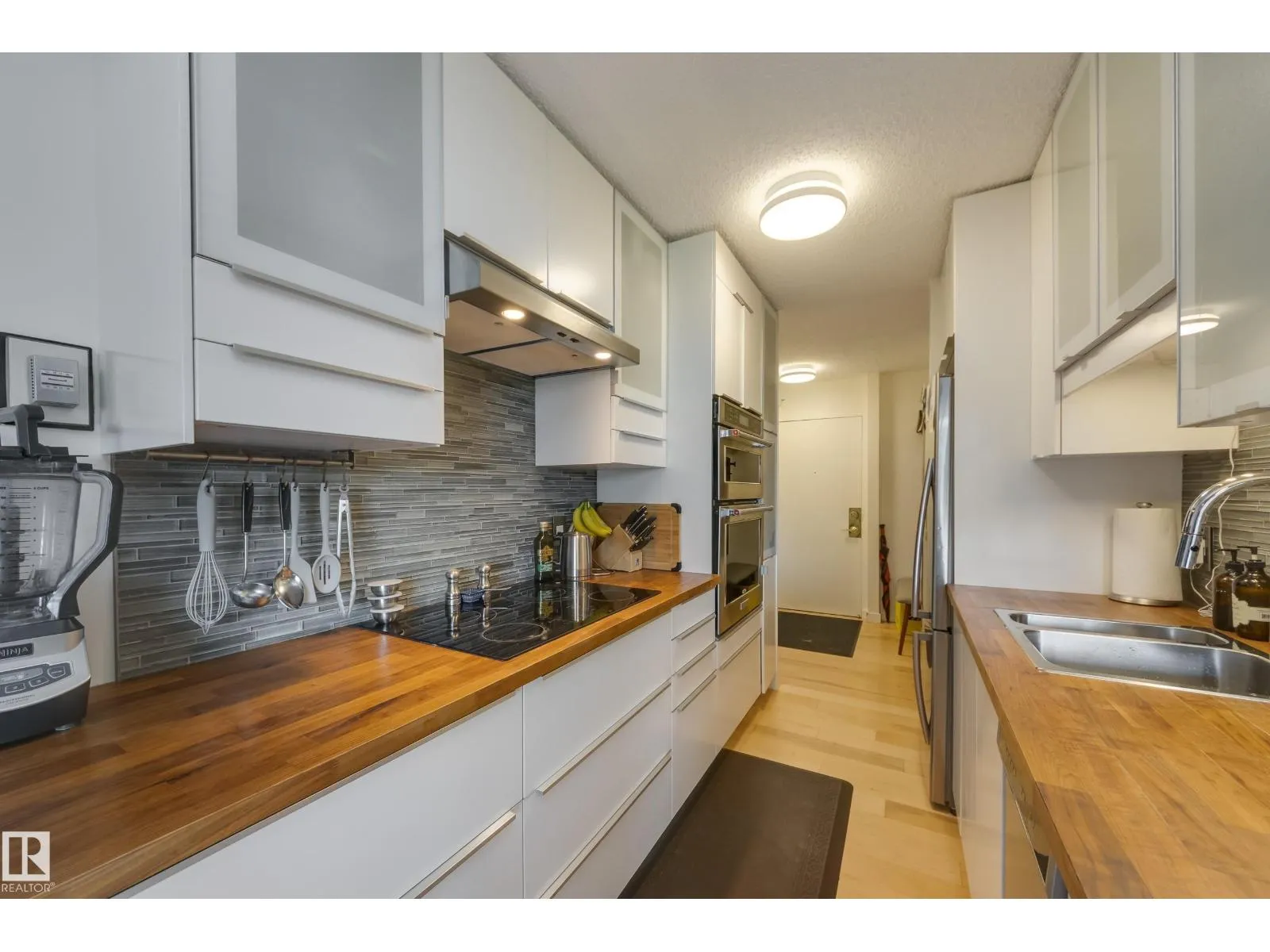 Discover the ideal combination of high-end renovation, size & location in this fully renovated 1061 sq.ft. 2-bedroom, 2-bathroom suite in Westcliffe Arms. With a lovely tree-lined view from it's west side exposure & spacious balcony, this property is filled with natural light. The unit boasts a custom kitchen featuring stainless steel appliances, trendy hardwood & tile flooring, in-suite laundry & a three-piece en-suite bathroom. The large second bedroom/office & renovated 4 piece bath make this perfect for anyone a room mate or working from home. Complete w titled underground parking & a storage locker. The condo fees include heat, electricity & water! Stylish vintage common areas, such as a social lounge & gym. This prime location is close to restaurants, grocery stores, bike paths & of course the river valley. Just half a block away from the Government Center and LRT, it offers easy access to the UofA & downtown. A very rare blend of 70's square footage & modern interior - this is the one. (id:27476)