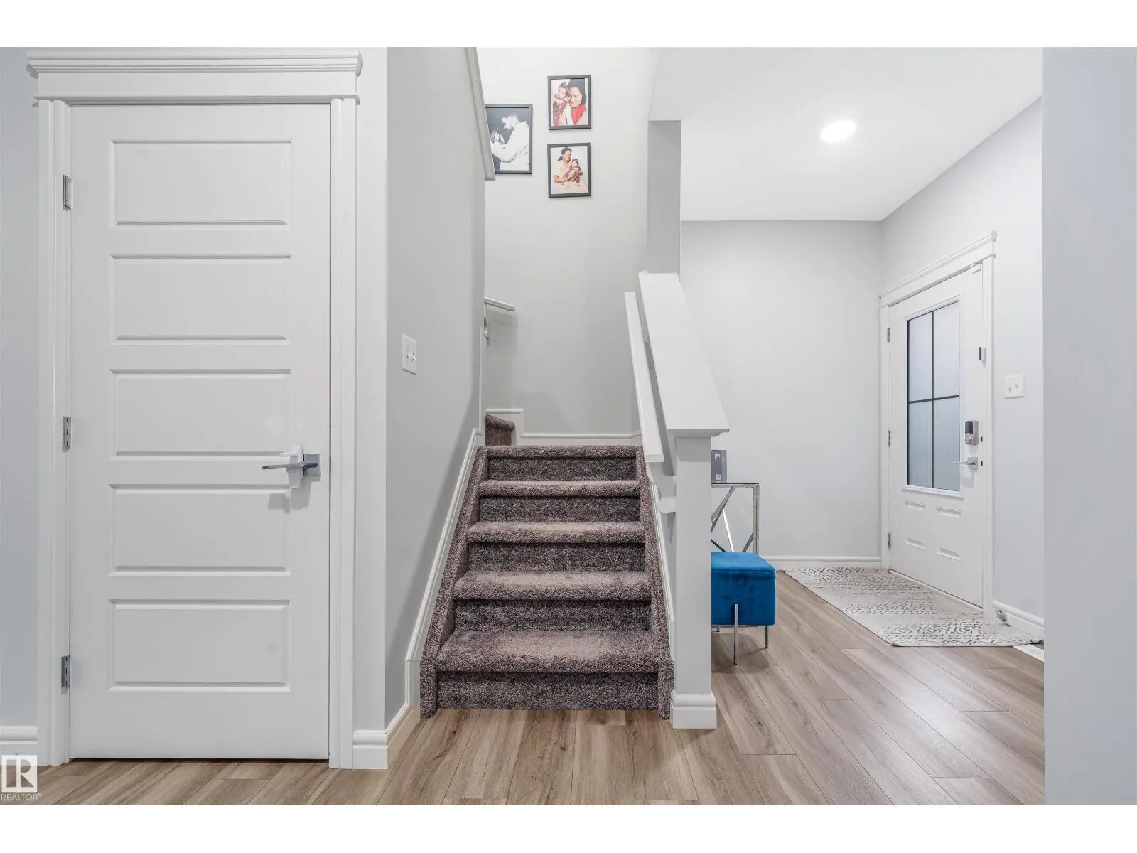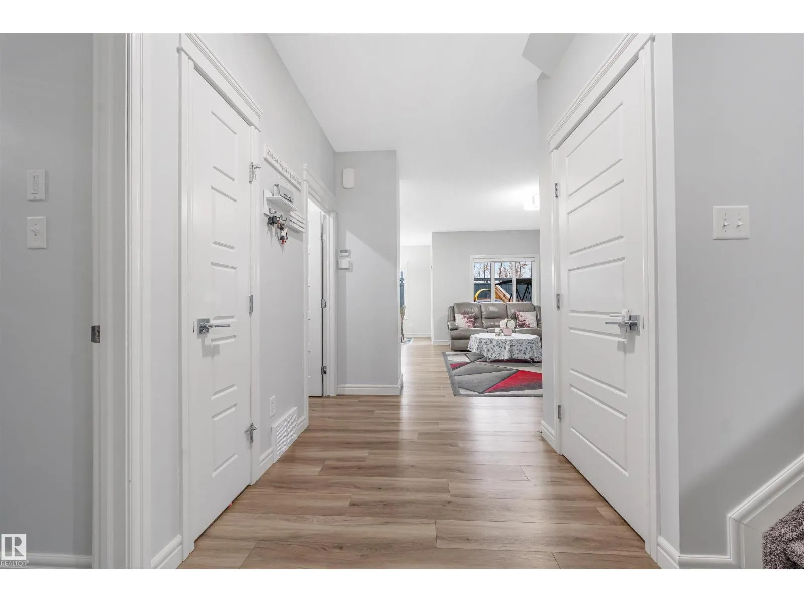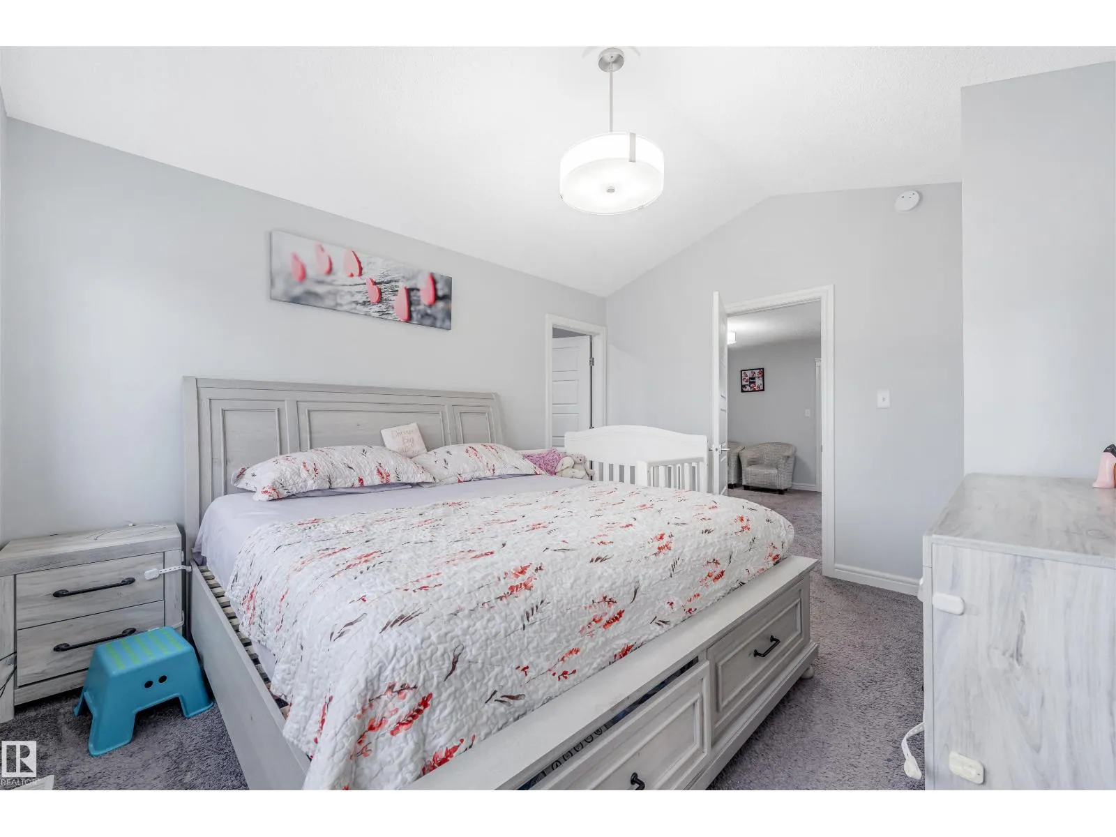 Pride of original ownership, North facing , No house at back , super clean, huge backyard , well maintained 1615 sqft front double attached garage home located in most desired community of Desrochers . This home is aperfect for growing families , first time home buyers and investors with almost everything near by. Rec centre is 5 mins walk, Public high school 2 mins drive other 3 schools near by ,Quick and easy access to 41 ave and highway 2, quick commute to future LRT and future Hospital. 3 spacious bedrooms including huge master , 2 full bath,1 half bath, bonus/living space upstairs to enjoy the free time. Main floor is a uniquely architectured to every inch of space, Chefs dream kitchen with ceiling height cabinets ,spacious Laundry room with storage shelving. Living area is spacious to enjoy free time with cup of coffee with family or guest. Patio door leads to wooden deck and fully landscaped backyard to enjoy summers. Basement is unfinished and awaits your personal touch. Seeing is believing. (id:27476)