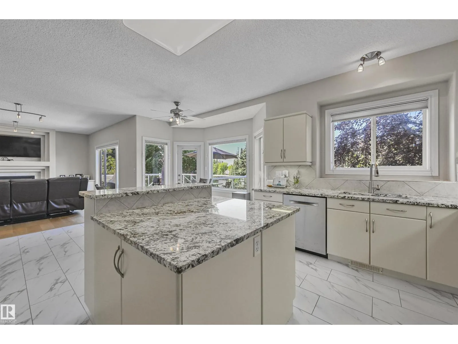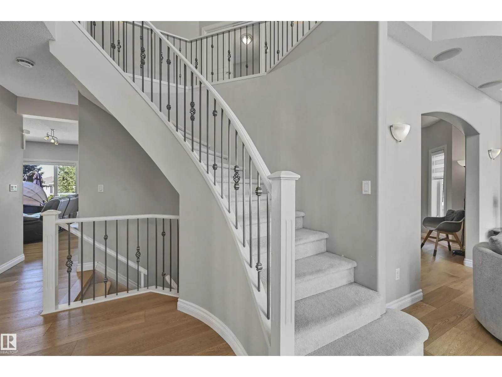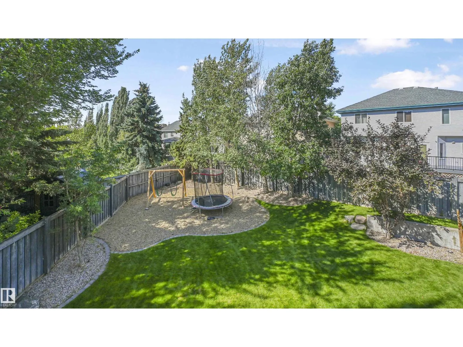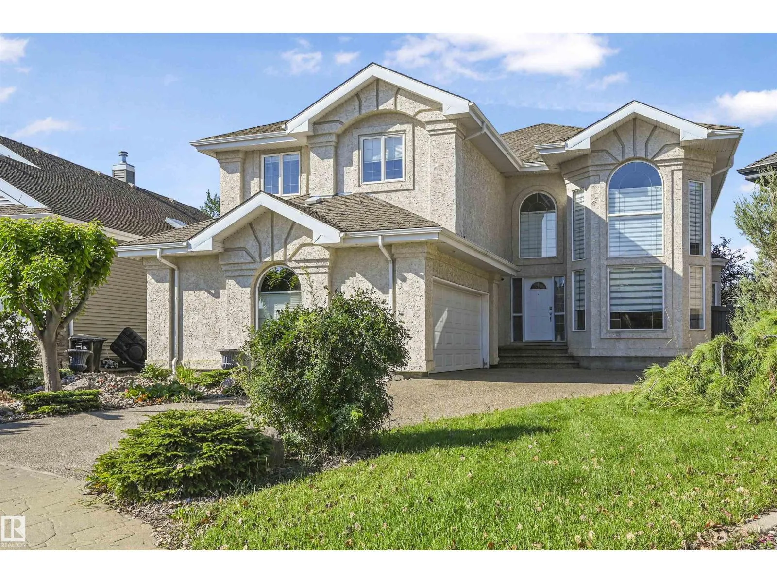 WALKOUT in Terwillegar Gardens w/ 5 BEDROOMS, built by Hillview, cul-de-sac location & close to all amenities. Open concept plan has streams of natural light through the soaring, oversized windows. Enjoy a grand entry w/curved stairs & high ceilings. Neutral contemporary color tones too. MAIN FLR BDRM/DEN w/a FULL BATHRM. Sleek bone white slab cabinets & a huge island. Newer S/S fridge & D/W. Nook opens to the family rm w/wetbar & a massive upper deck w/glass railings. Formal dining & living rm. Upstairs has FIVE LARGE BDRMS. Primary suite boasts a beautiful ensuite, fireplace & W/I closet. F/Fin WALKOUT bsmt includes a Games area, rec rm w/ fireplace & full bthrm. 2 addtl rooms can be completed for a bedrm & exercise area. Massive 8900sf SW pie yard w/mature trees for privacy. Plus huge upper deck. Oversized double garage 22X26. Upgrades: AC (2024), NEW engineered hardwood & tile, NEW granite & quartz counters, 2024 Bathroom updates, new washer/dryer, irrigation system, some blinds updated & more! (id:27476)