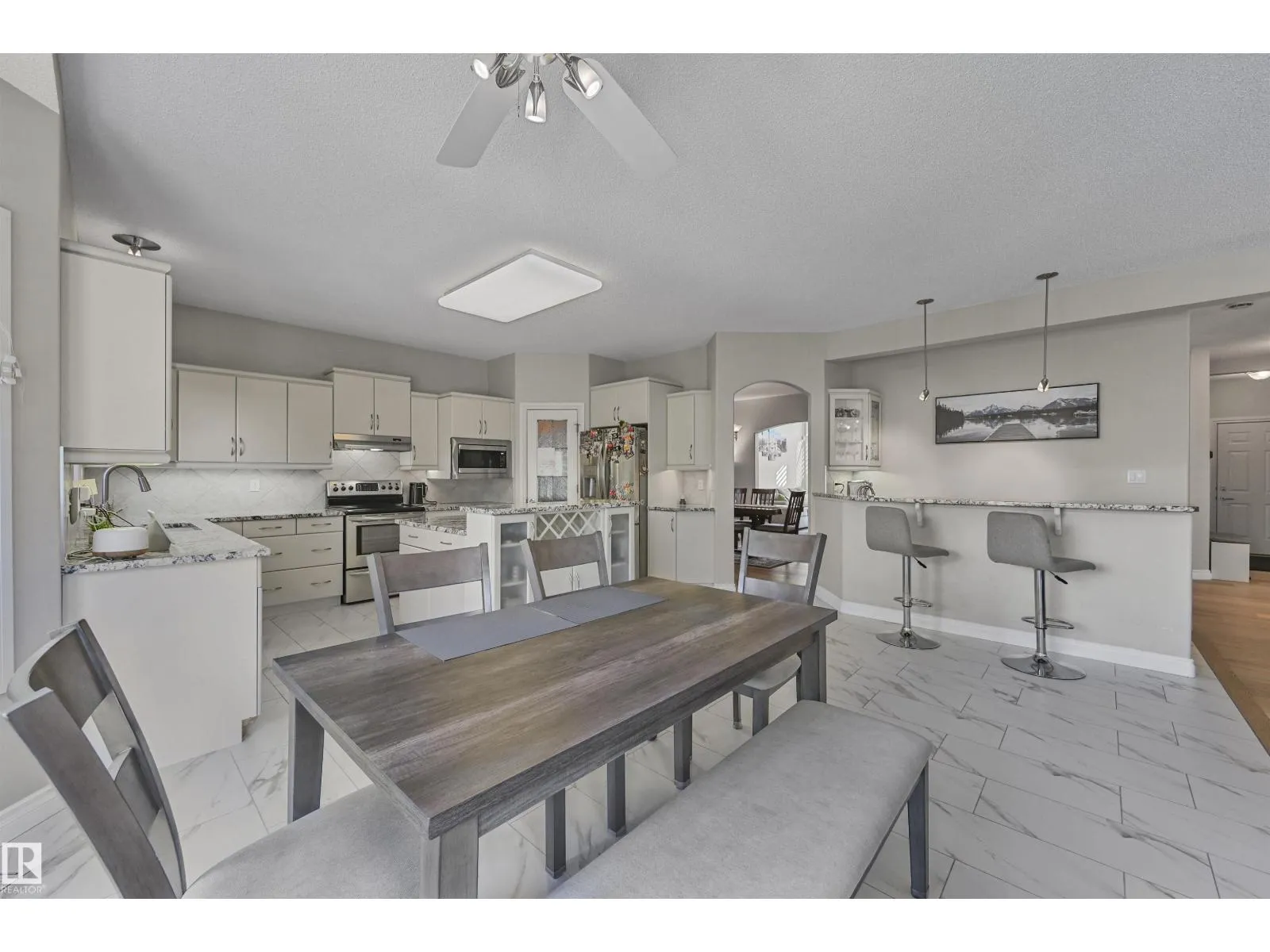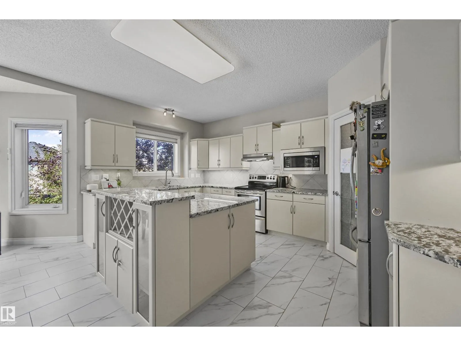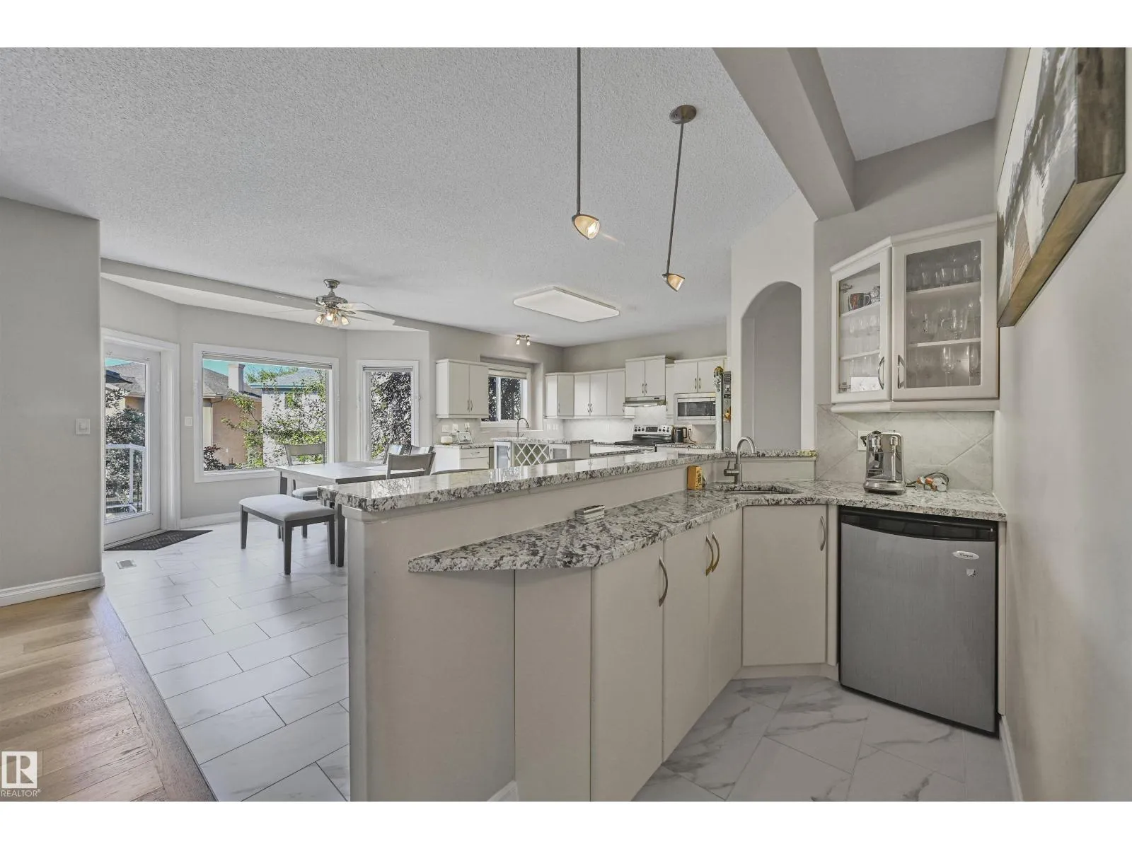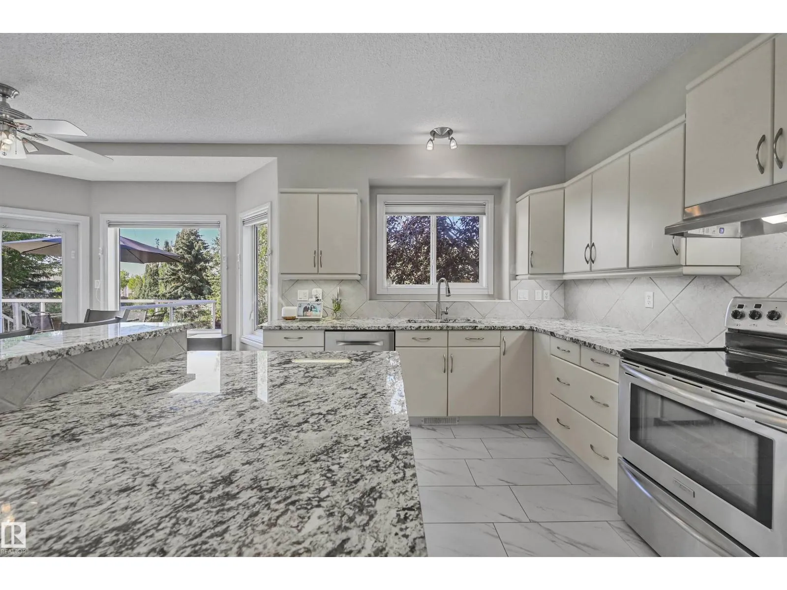 WALKOUT in Terwillegar Gardens w/ 5 BEDROOMS, built by Hillview, cul-de-sac location & close to all amenities. Open concept plan has streams of natural light through the soaring, oversized windows. Enjoy a grand entry w/curved stairs & high ceilings. Neutral contemporary color tones too. MAIN FLR BDRM/DEN w/a FULL BATHRM. Sleek bone white slab cabinets & a huge island. Newer S/S fridge & D/W. Nook opens to the family rm w/wetbar & a massive upper deck w/glass railings. Formal dining & living rm. Upstairs has FIVE LARGE BDRMS. Primary suite boasts a beautiful ensuite, fireplace & W/I closet. F/Fin WALKOUT bsmt includes a Games area, rec rm w/ fireplace & full bthrm. 2 addtl rooms can be completed for a bedrm & exercise area. Massive 8900sf SW pie yard w/mature trees for privacy. Plus huge upper deck. Oversized double garage 22X26. Upgrades: AC (2024), NEW engineered hardwood & tile, NEW granite & quartz counters, 2024 Bathroom updates, new washer/dryer, irrigation system, some blinds updated & more! (id:27476)