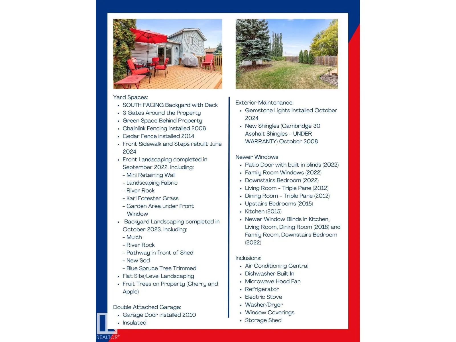 CAPTIVATING CRAWFORD! Welcome to this beautifully maintained 4 bed, 2 bath, 4 level split home (approx 1,700 sq ft of living space). CUSTOM BUILT & lovingly cared for by the ORIGINAL OWNER. RENOVATED KITCHEN has white cabinets, quartz counters & tile floors. CARPET FREE house! There have been many updates over the years including: Windows, Furnace ('22), Hot Water Tank ('22) & AIR CONDITIONING ('23). Bonus features: Central Vac, VAULTED CEILINGS, WOOD BURNING, BRICK FIREPLACE & GEMSTONE LIGHTS. Outside, youâll find a fully fenced, SOUTH FACING YARD with deck, 3 gates & no rear neighbours - BACKS ONTO GREEN SPACE! LARGE LANDSCAPED LOT (586m2) w/ great curb appeal (mulch, river rock, sod, stone pathway, retaining wall, garden area, new front steps & sidewalk). Double, insulated garage completes the home. Walking distance or short drive to many amenities - LRT Stop, Bus, Trails, Parks, Golf, Grey Nuns Hospital, Groceries & Restaurants. Easy access to Airport, Whitemud & Henday. Quiet Neighbourhood. (id:27476)