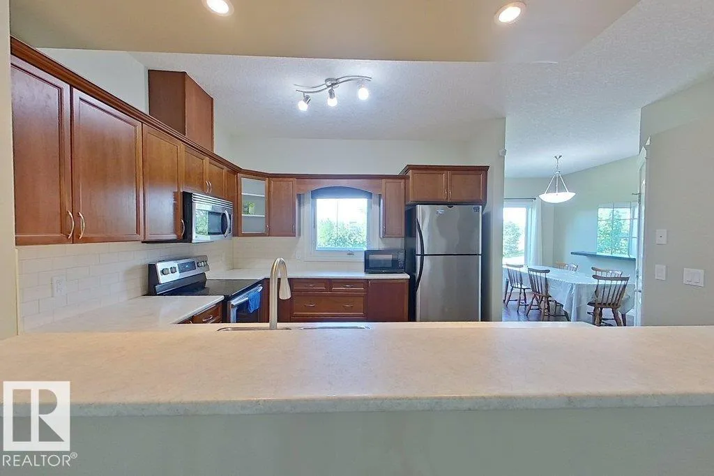This beautiful Ventana Woods townhouse is well maintained, offering 1569 sq ft above grade area, 2 master ensuite bedrooms, air conditioning, 9' ceiling large living room with air and sunshine, hardwood floor through the main floor. Bright kitchen with island bar, chef corner pantry, back splash, cozy dinning beside the window looking over the pond across the road, convenient laundry on the upper level with floor drain. Double attach garage , guest/recreational room at the below level. Back door to the porch with barbecue gas and water pipe to enjoy outdoor. Located in one of the best neighborhoods , very convenient location to access to school, shopping, LRT, highways, airport and all amenities. (id:27476)