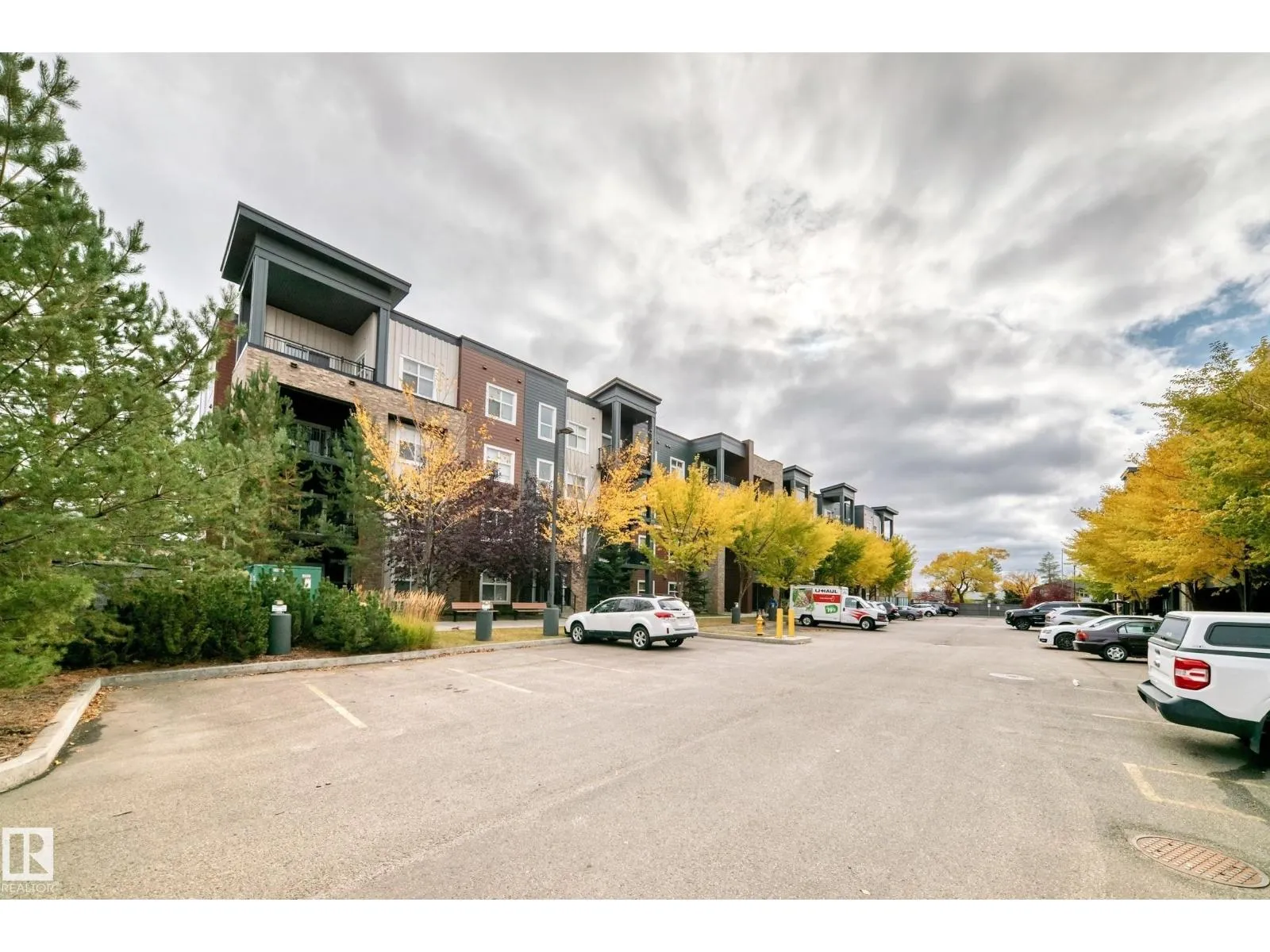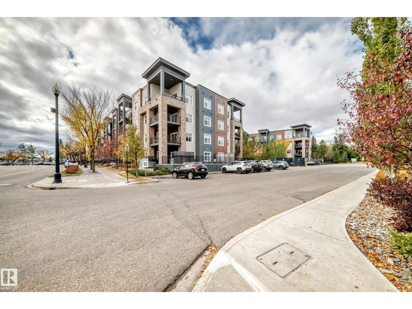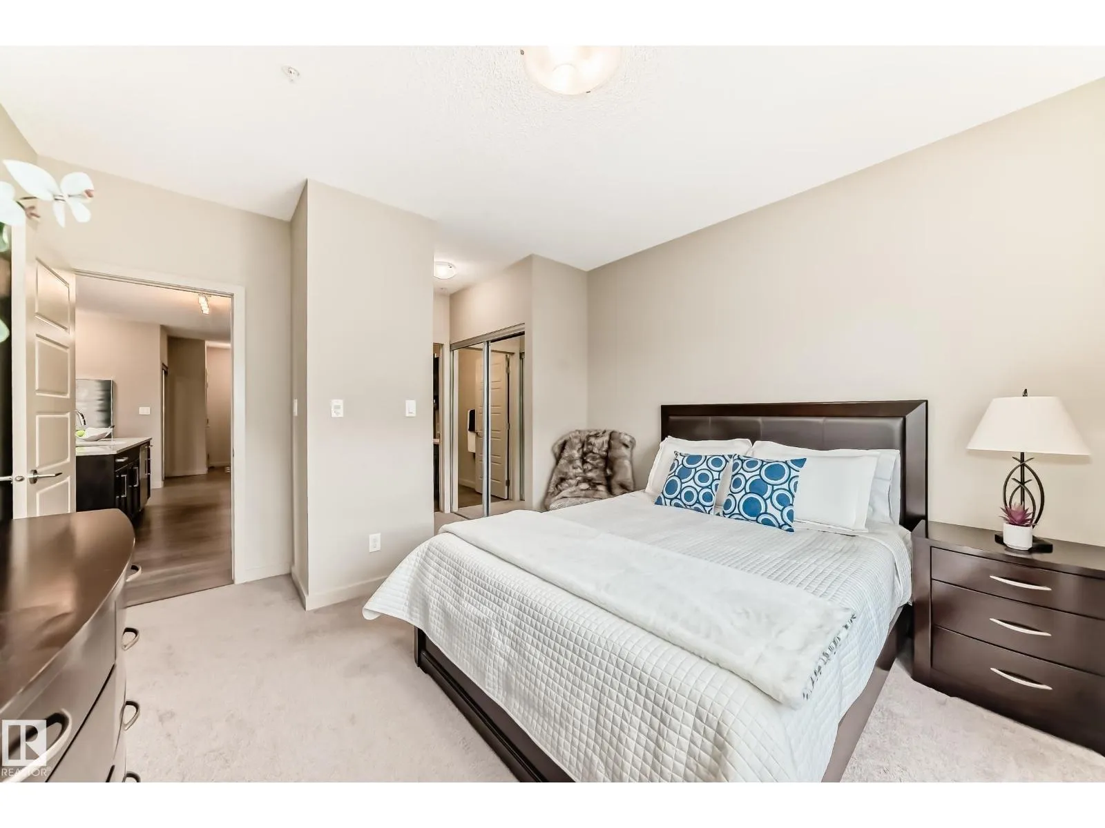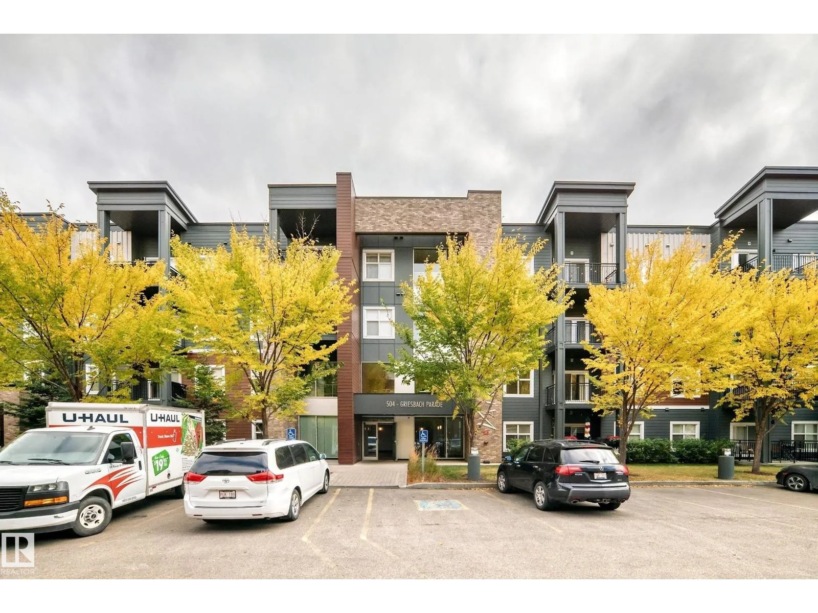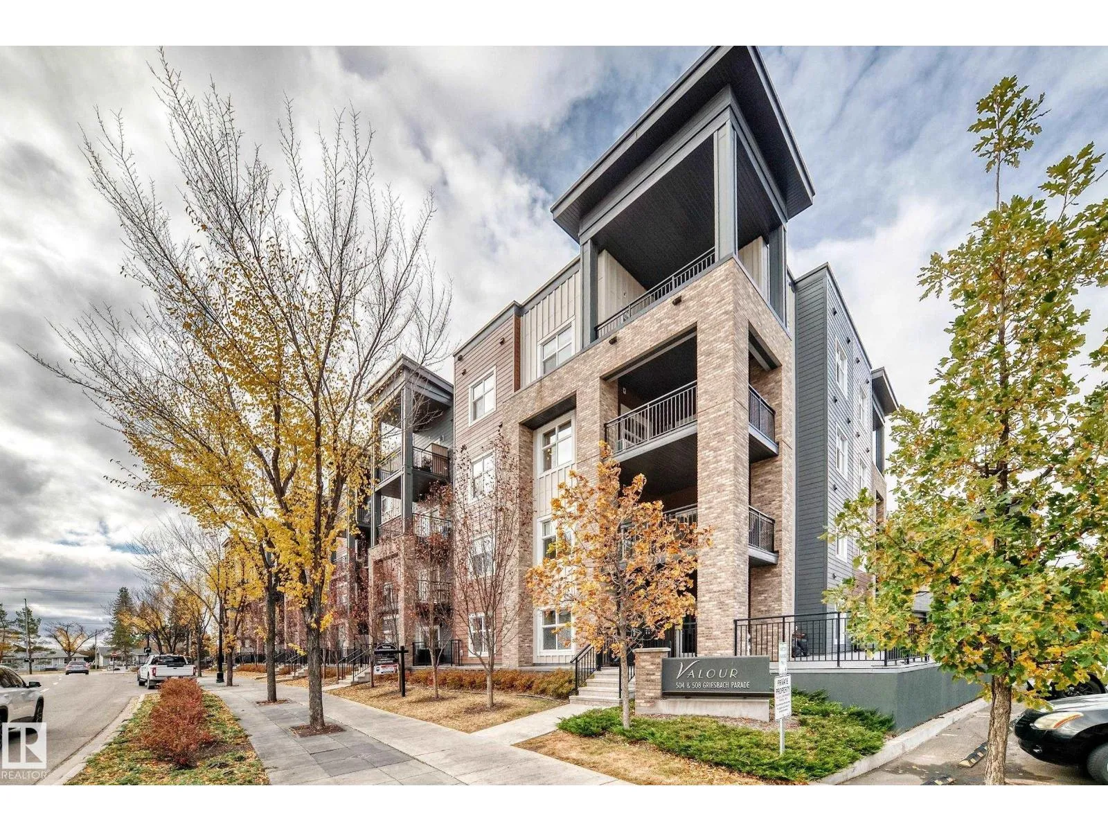Corner Suite with 2 Beds, 2 Baths + Den, 2 Parkings in Griesbach! Welcome to this impeccably maintained corner unit in one of Edmontonâs most desirable communities. This spacious 2-bedroom, 2-bathroom + den home offers modern finishes throughout. Featuring quartz countertops, bar seating, and an open-concept layout, the kitchen flows into bright living and dining areas with access to a large covered balconyâperfect for relaxing or entertaining. Bedrooms are thoughtfully placed on opposite corners for added privacy. The primary suite includes a walk-through closet and spa-inspired ensuite, while the second bedroom sits next to a full 4-piece bath. Extras include A/C, full-size in-suite laundry, TWO titled parking stalls (one underground, one surface; both located next to entrance and elevator), and a secure storage cage in the heated parkade. Located steps from parks, cafes, restaurants, transit, and scenic walking trails, this home offers the ideal blend of urban convenience and neighborhood charm. (id:27476)