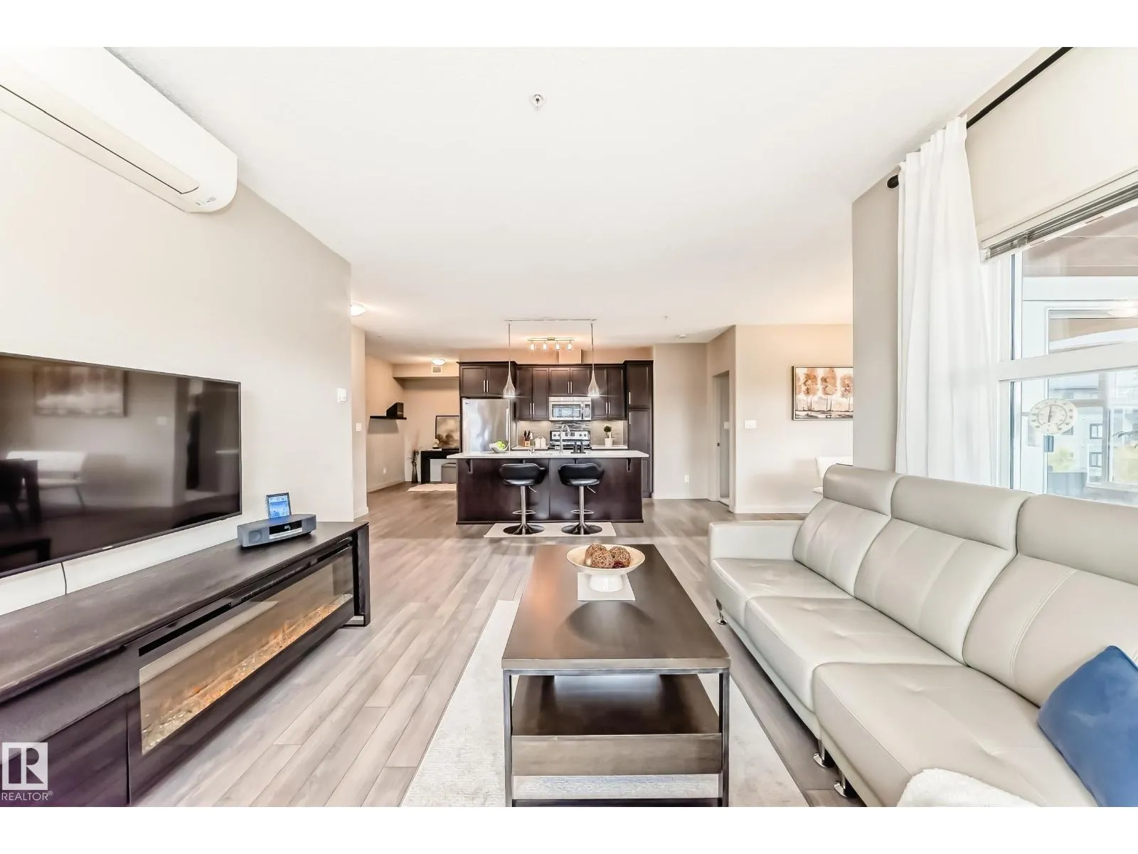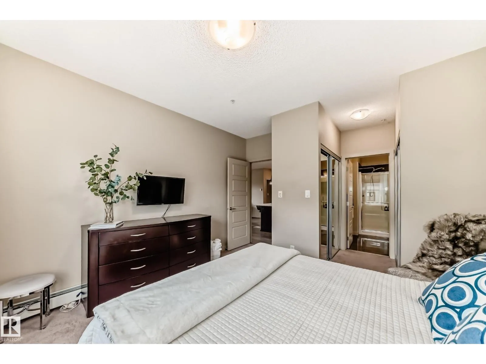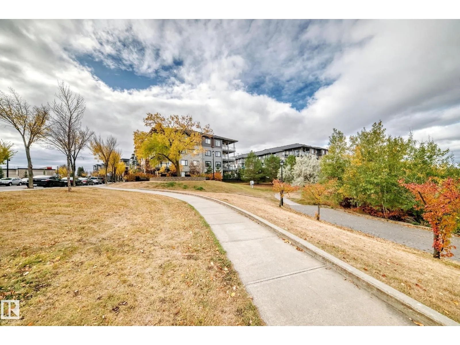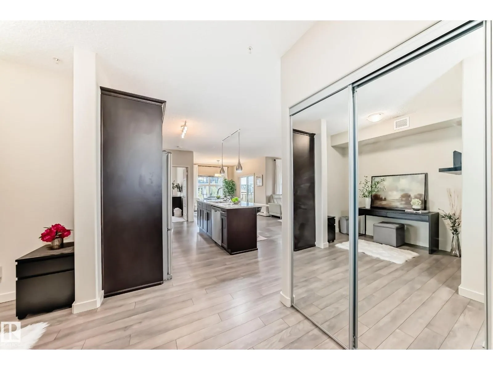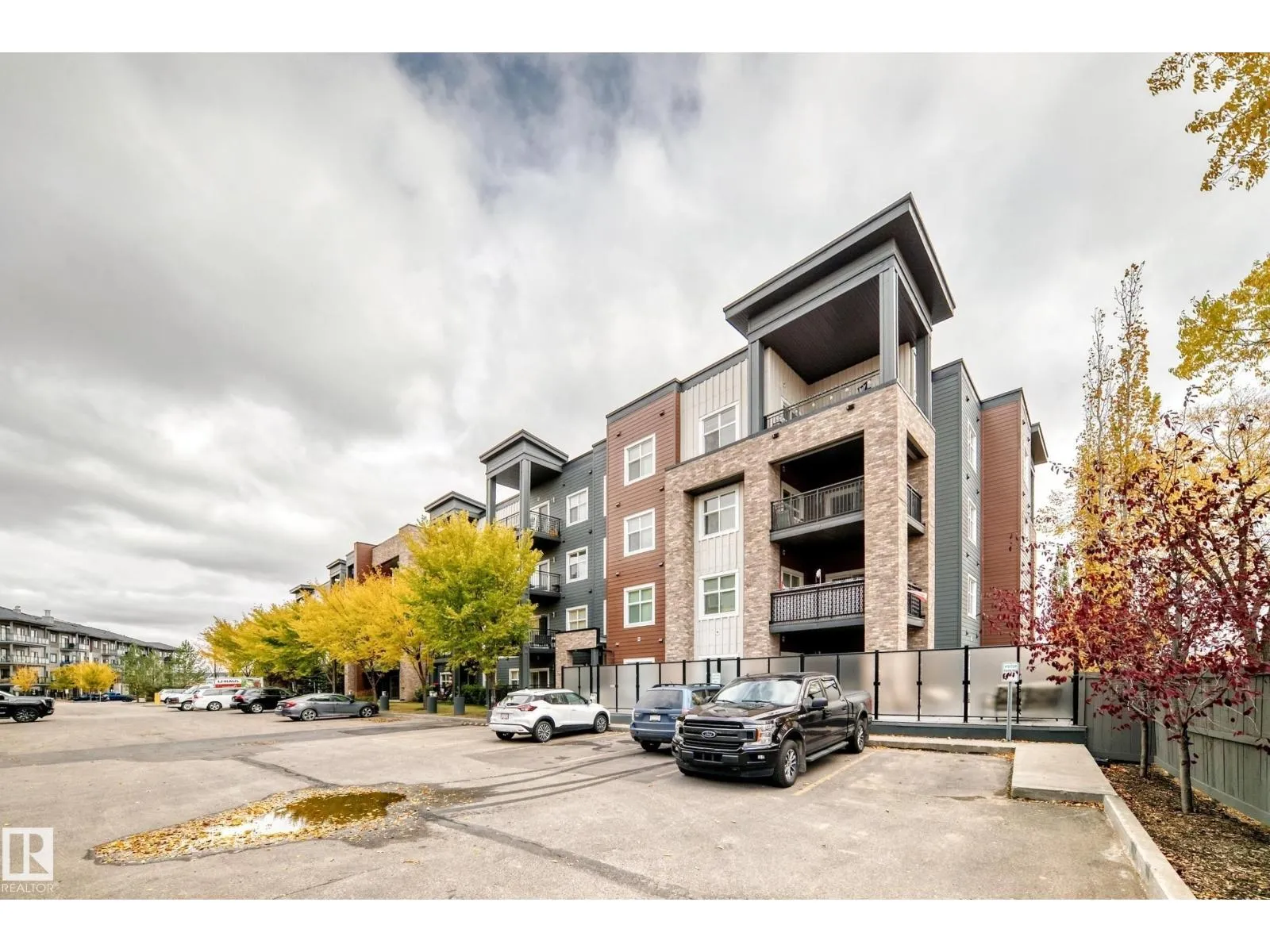 Corner Suite with 2 Beds, 2 Baths + Den, 2 Parkings in Griesbach! Welcome to this impeccably maintained corner unit in one of Edmontonâs most desirable communities. This spacious 2-bedroom, 2-bathroom + den home offers modern finishes throughout. Featuring quartz countertops, bar seating, and an open-concept layout, the kitchen flows into bright living and dining areas with access to a large covered balconyâperfect for relaxing or entertaining. Bedrooms are thoughtfully placed on opposite corners for added privacy. The primary suite includes a walk-through closet and spa-inspired ensuite, while the second bedroom sits next to a full 4-piece bath. Extras include A/C, full-size in-suite laundry, TWO titled parking stalls (one underground, one surface; both located next to entrance and elevator), and a secure storage cage in the heated parkade. Located steps from parks, cafes, restaurants, transit, and scenic walking trails, this home offers the ideal blend of urban convenience and neighborhood charm. (id:27476)