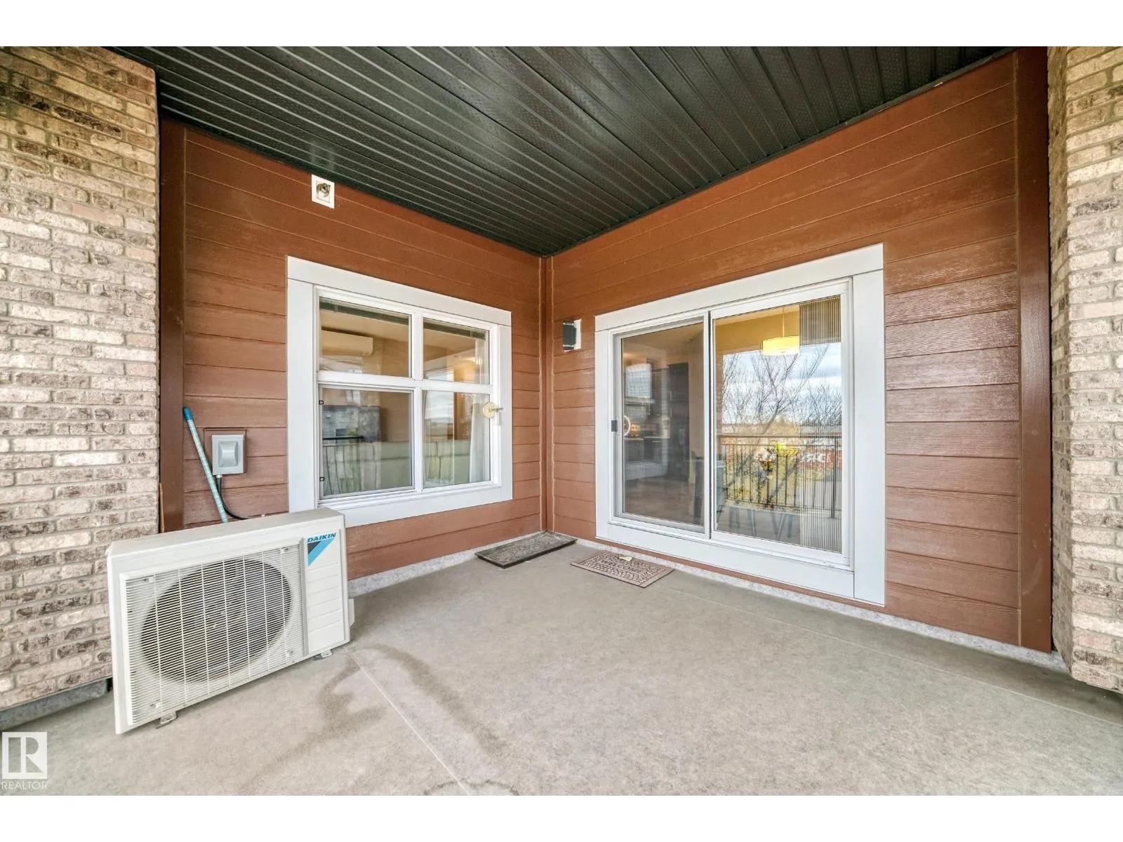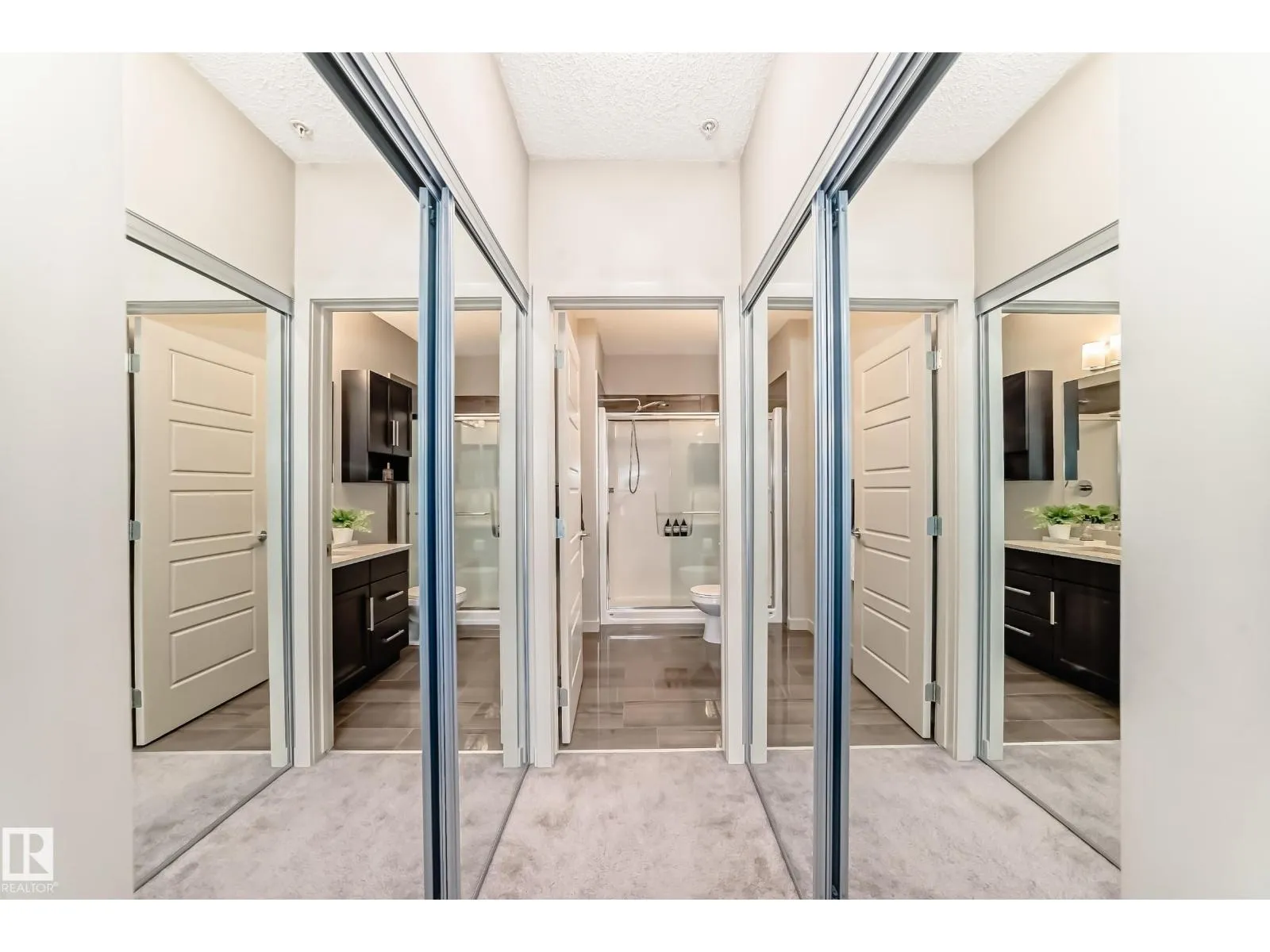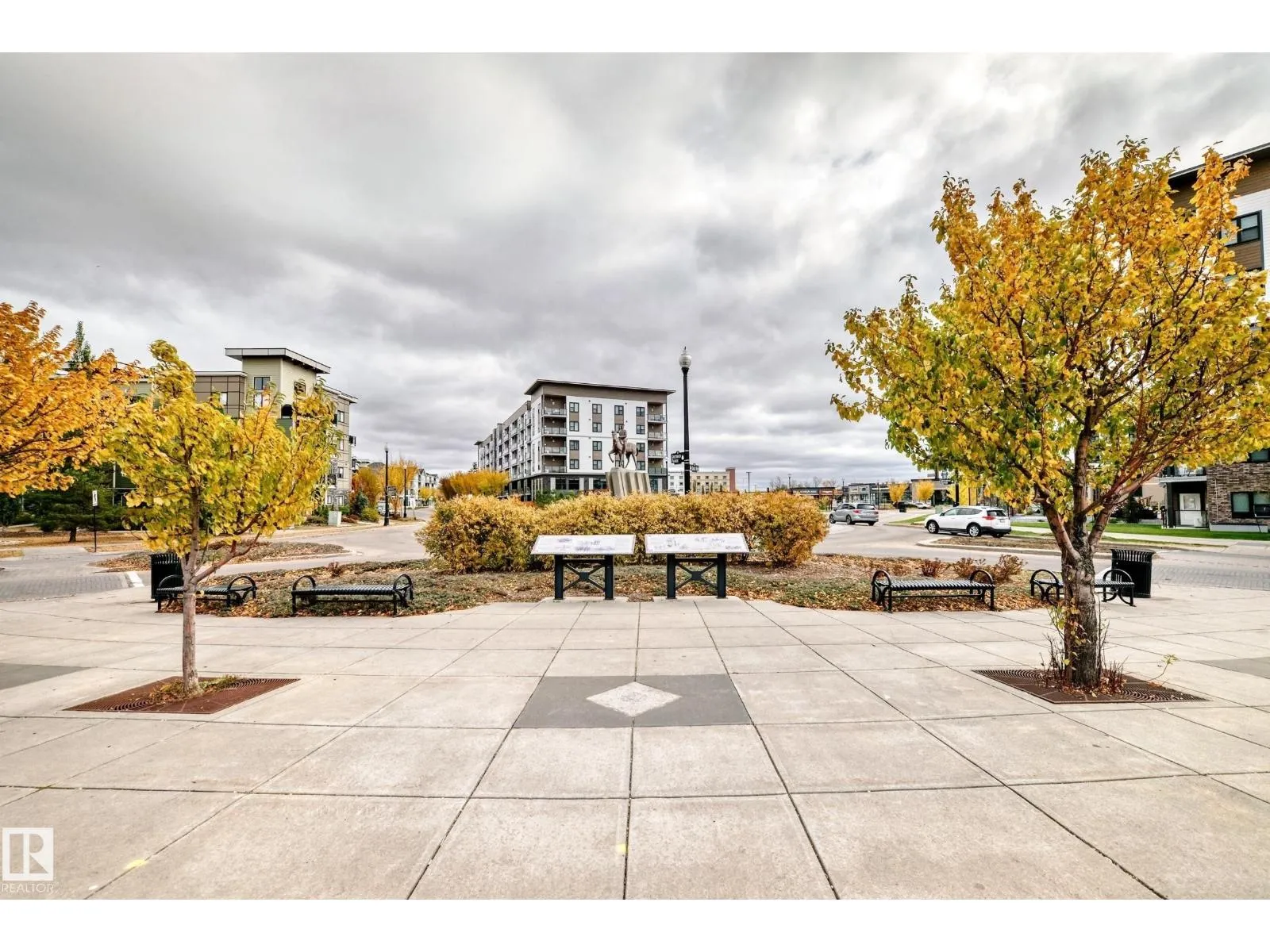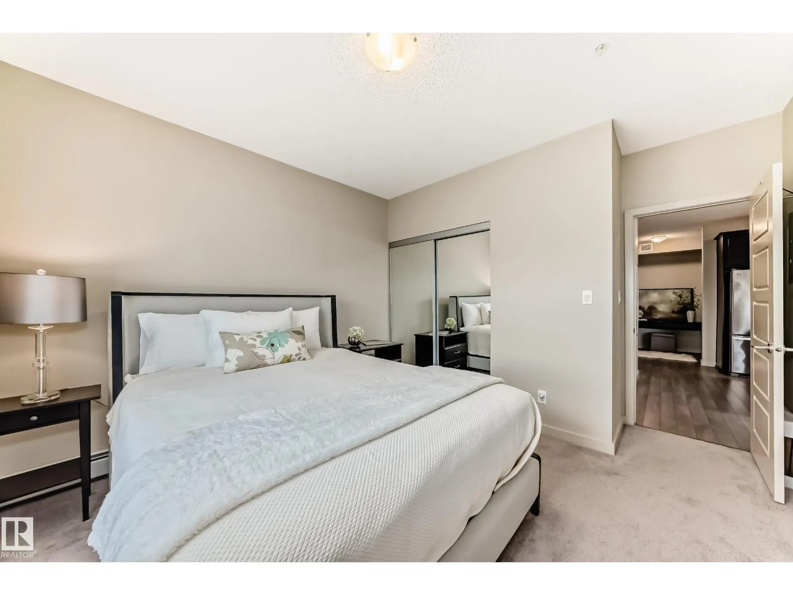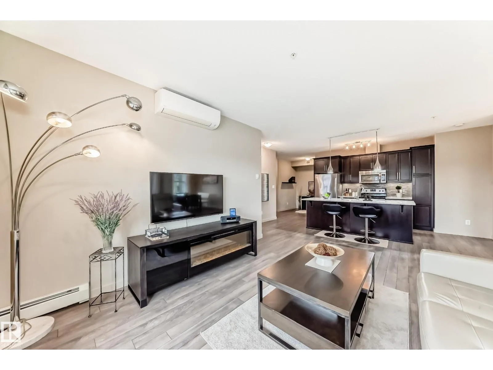 Corner Suite with 2 Beds, 2 Baths + Den, 2 Parkings in Griesbach! Welcome to this impeccably maintained corner unit in one of Edmontonâs most desirable communities. This spacious 2-bedroom, 2-bathroom + den home offers modern finishes throughout. Featuring quartz countertops, bar seating, and an open-concept layout, the kitchen flows into bright living and dining areas with access to a large covered balconyâperfect for relaxing or entertaining. Bedrooms are thoughtfully placed on opposite corners for added privacy. The primary suite includes a walk-through closet and spa-inspired ensuite, while the second bedroom sits next to a full 4-piece bath. Extras include A/C, full-size in-suite laundry, TWO titled parking stalls (one underground, one surface; both located next to entrance and elevator), and a secure storage cage in the heated parkade. Located steps from parks, cafes, restaurants, transit, and scenic walking trails, this home offers the ideal blend of urban convenience and neighborhood charm. (id:27476)