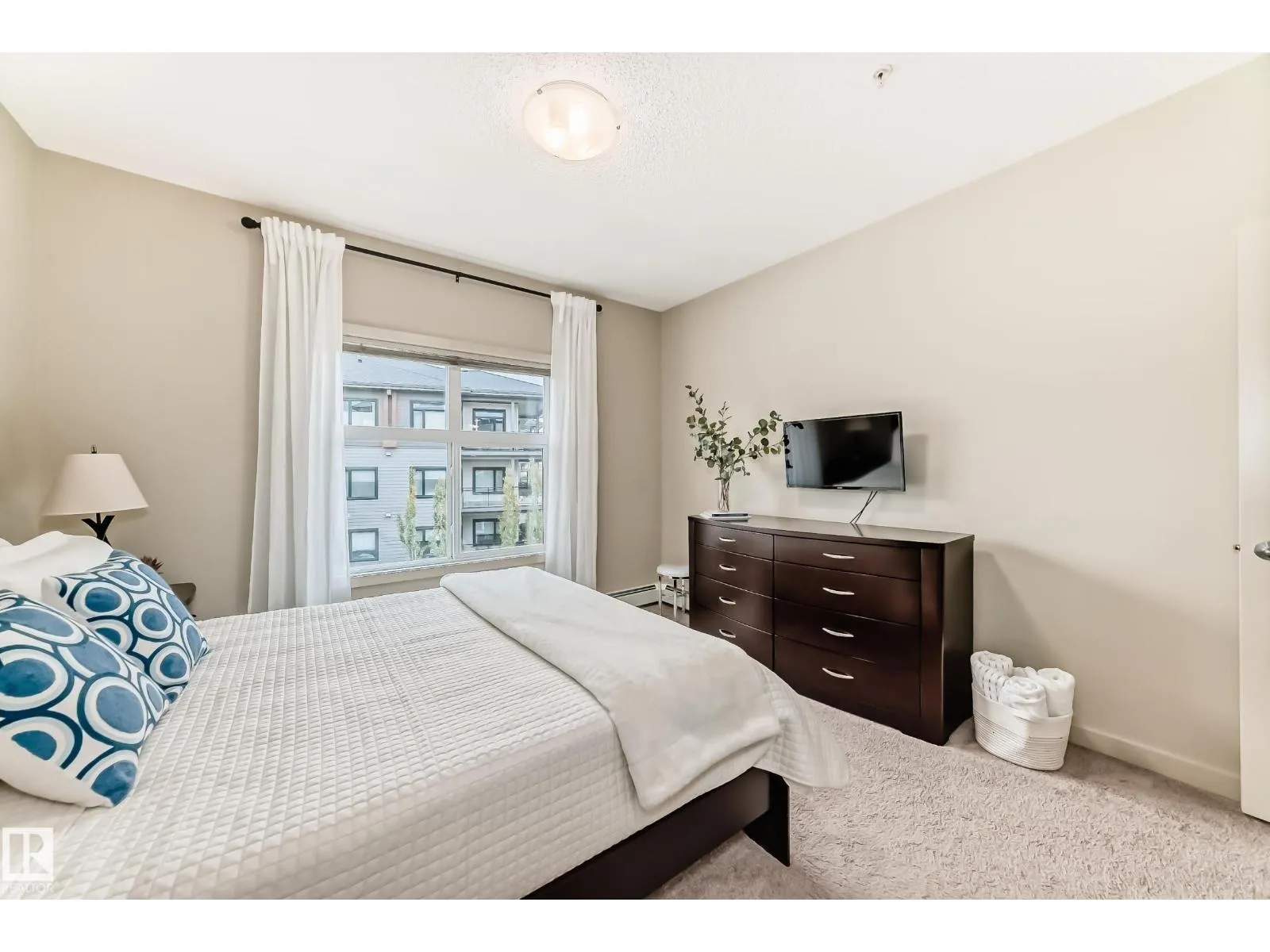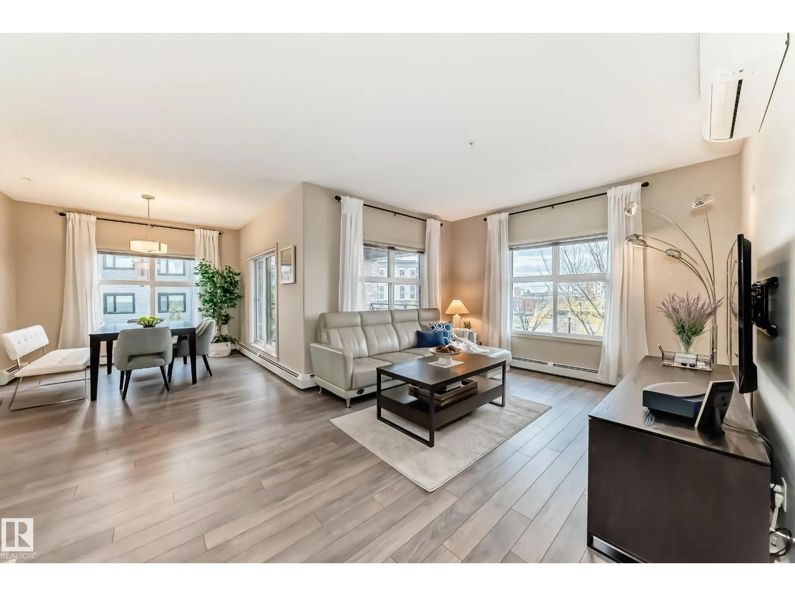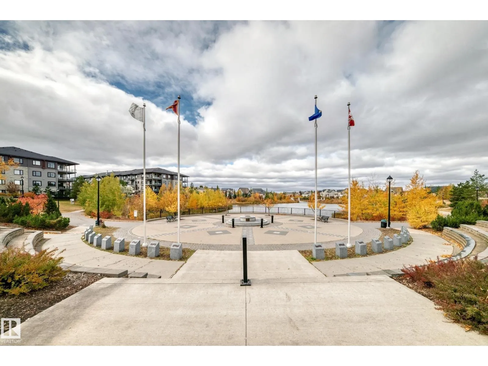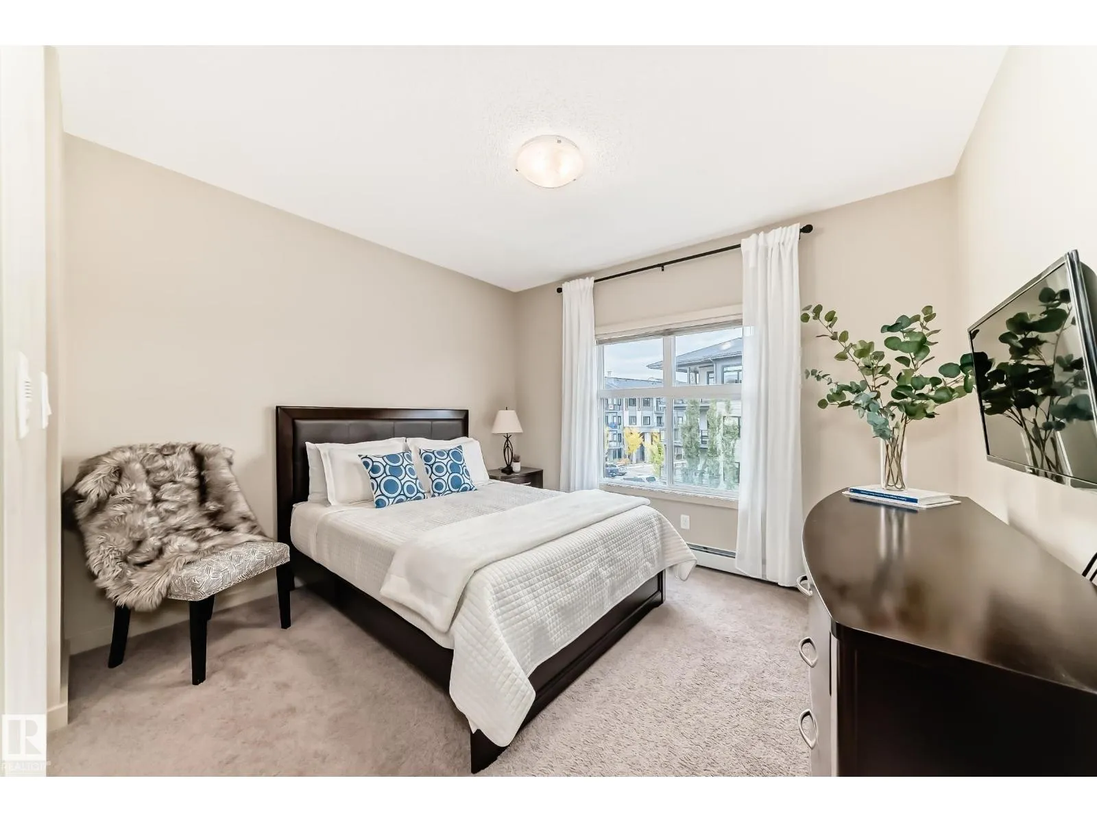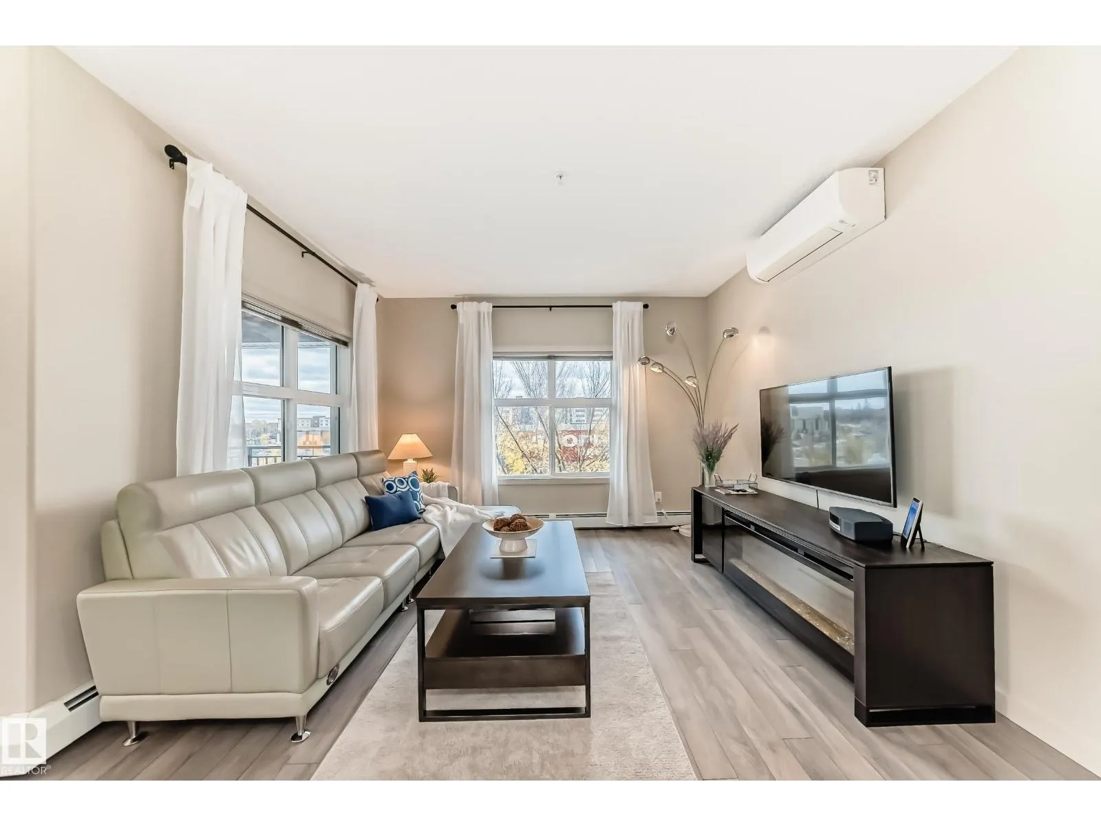 Corner Suite with 2 Beds, 2 Baths + Den, 2 Parkings in Griesbach! Welcome to this impeccably maintained corner unit in one of Edmontonâs most desirable communities. This spacious 2-bedroom, 2-bathroom + den home offers modern finishes throughout. Featuring quartz countertops, bar seating, and an open-concept layout, the kitchen flows into bright living and dining areas with access to a large covered balconyâperfect for relaxing or entertaining. Bedrooms are thoughtfully placed on opposite corners for added privacy. The primary suite includes a walk-through closet and spa-inspired ensuite, while the second bedroom sits next to a full 4-piece bath. Extras include A/C, full-size in-suite laundry, TWO titled parking stalls (one underground, one surface; both located next to entrance and elevator), and a secure storage cage in the heated parkade. Located steps from parks, cafes, restaurants, transit, and scenic walking trails, this home offers the ideal blend of urban convenience and neighborhood charm. (id:27476)
