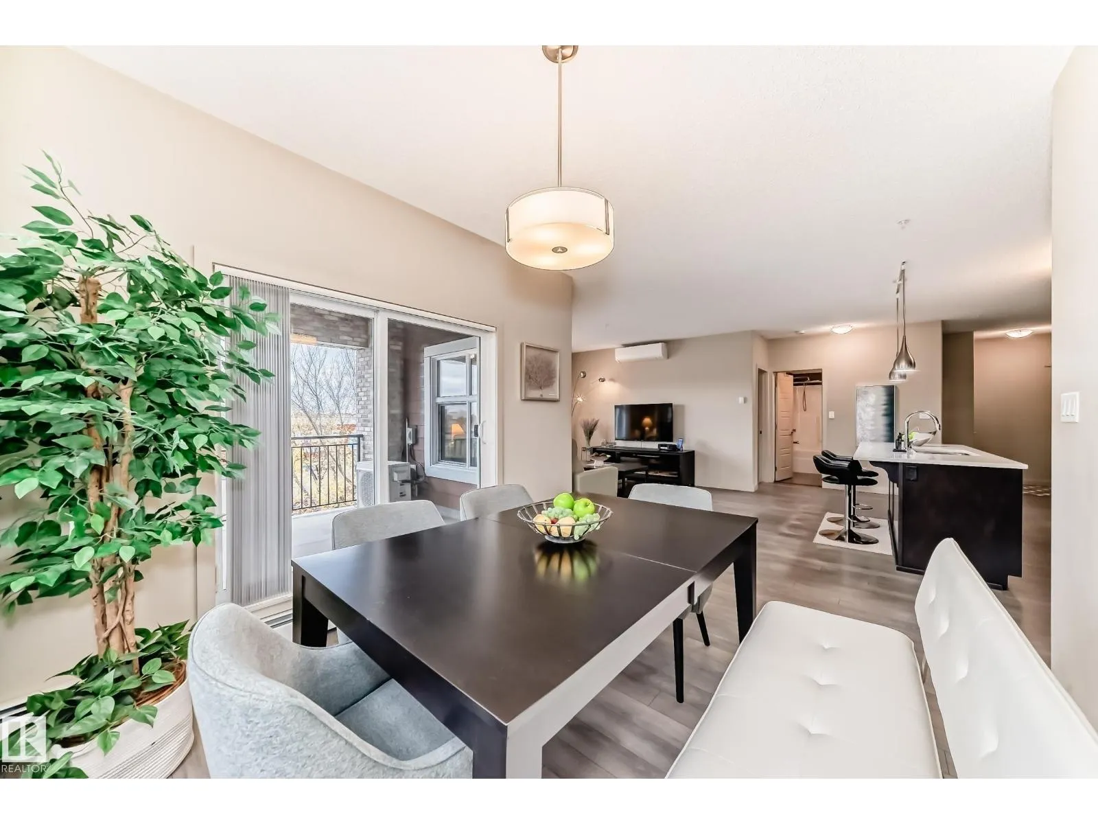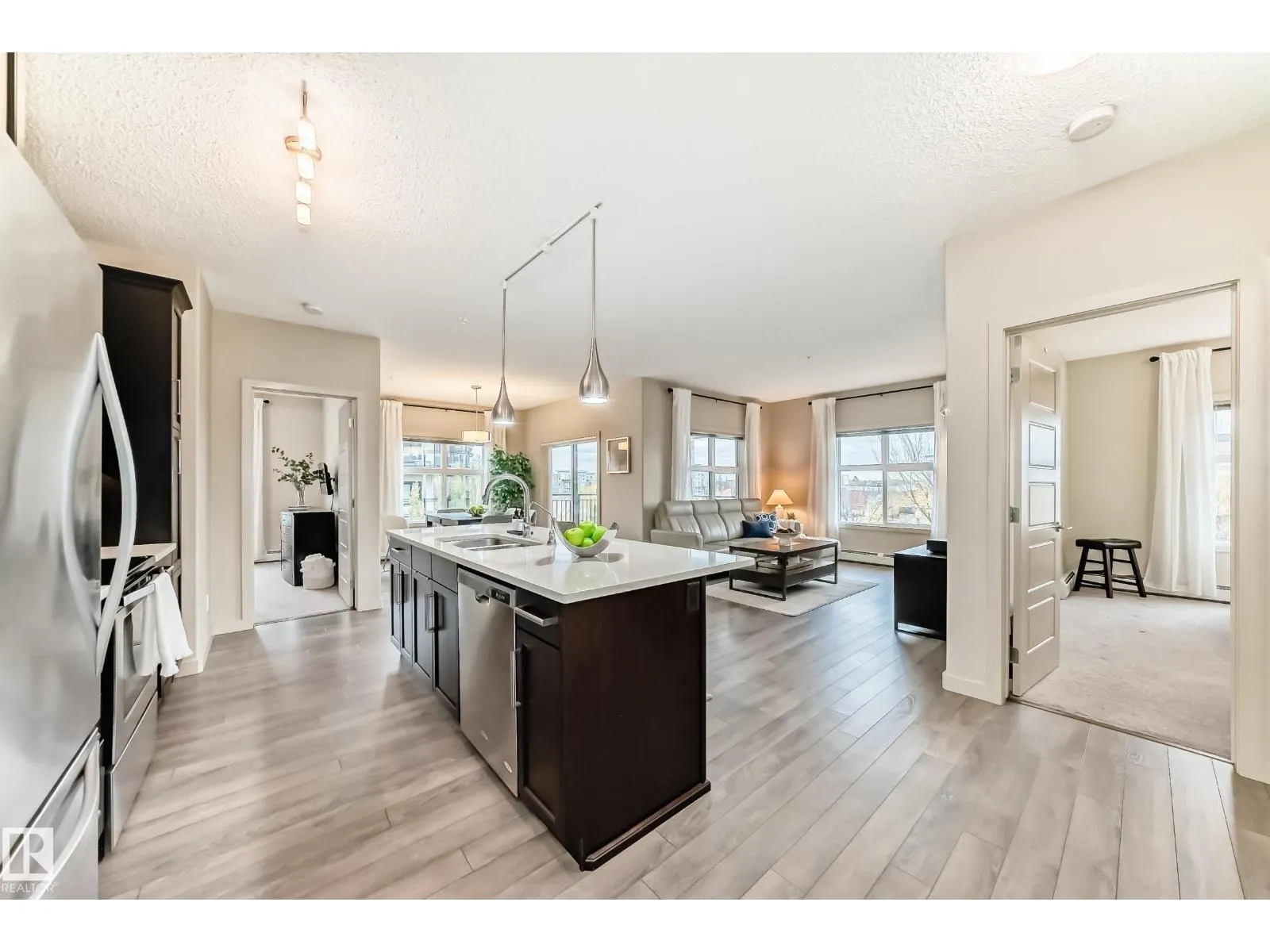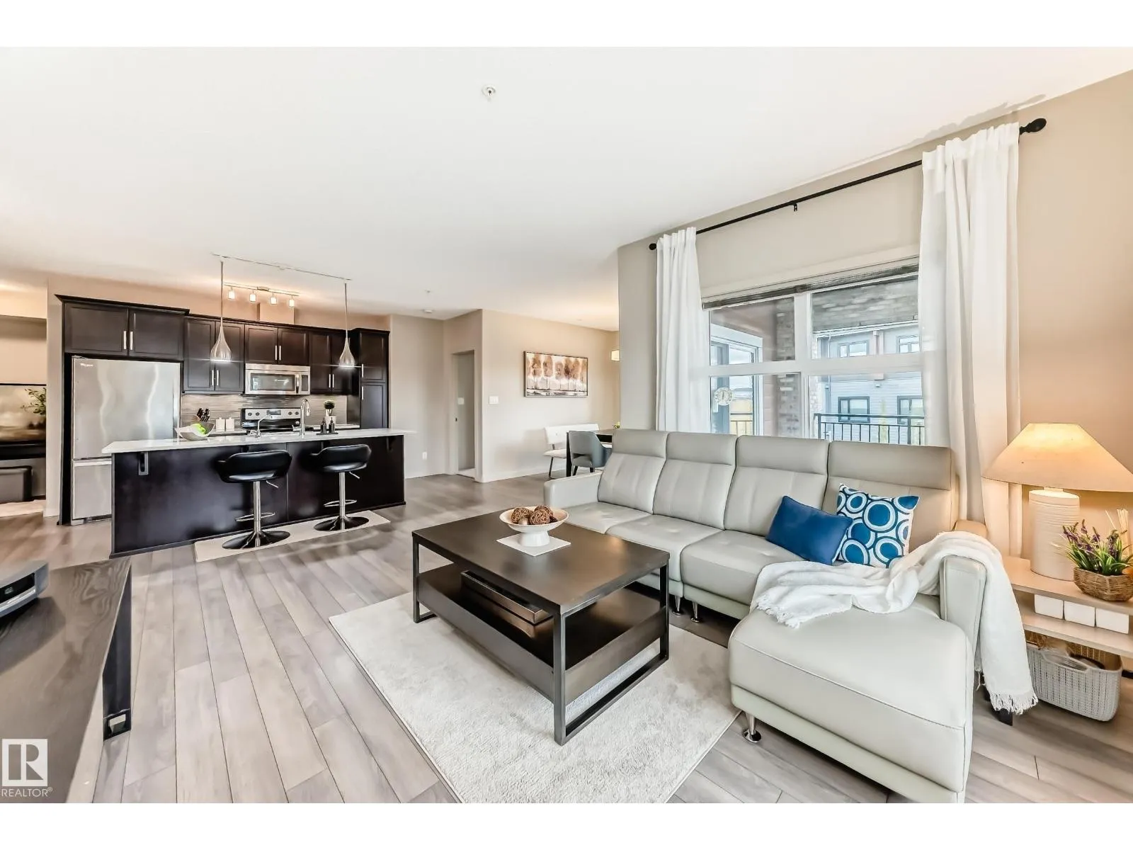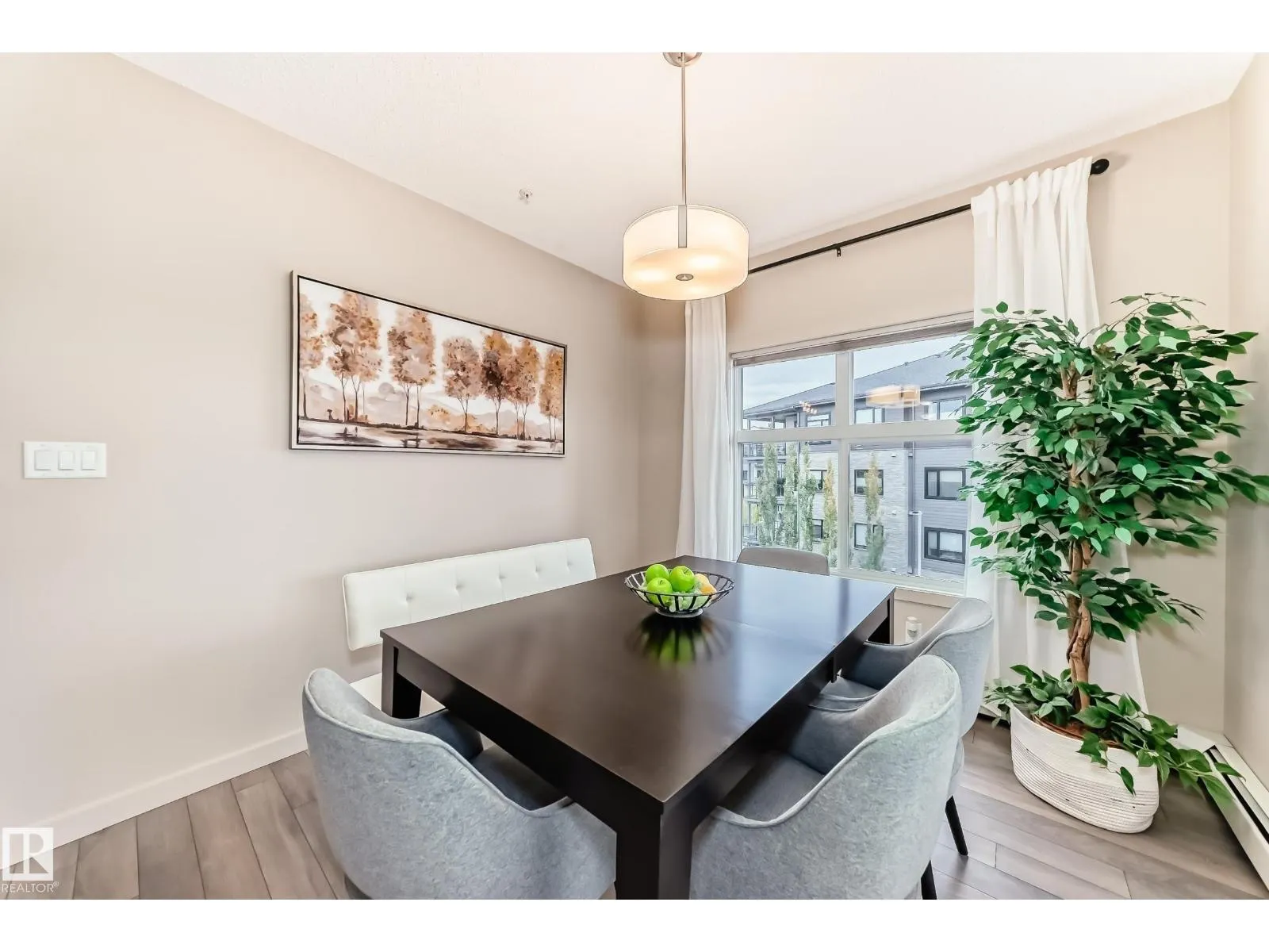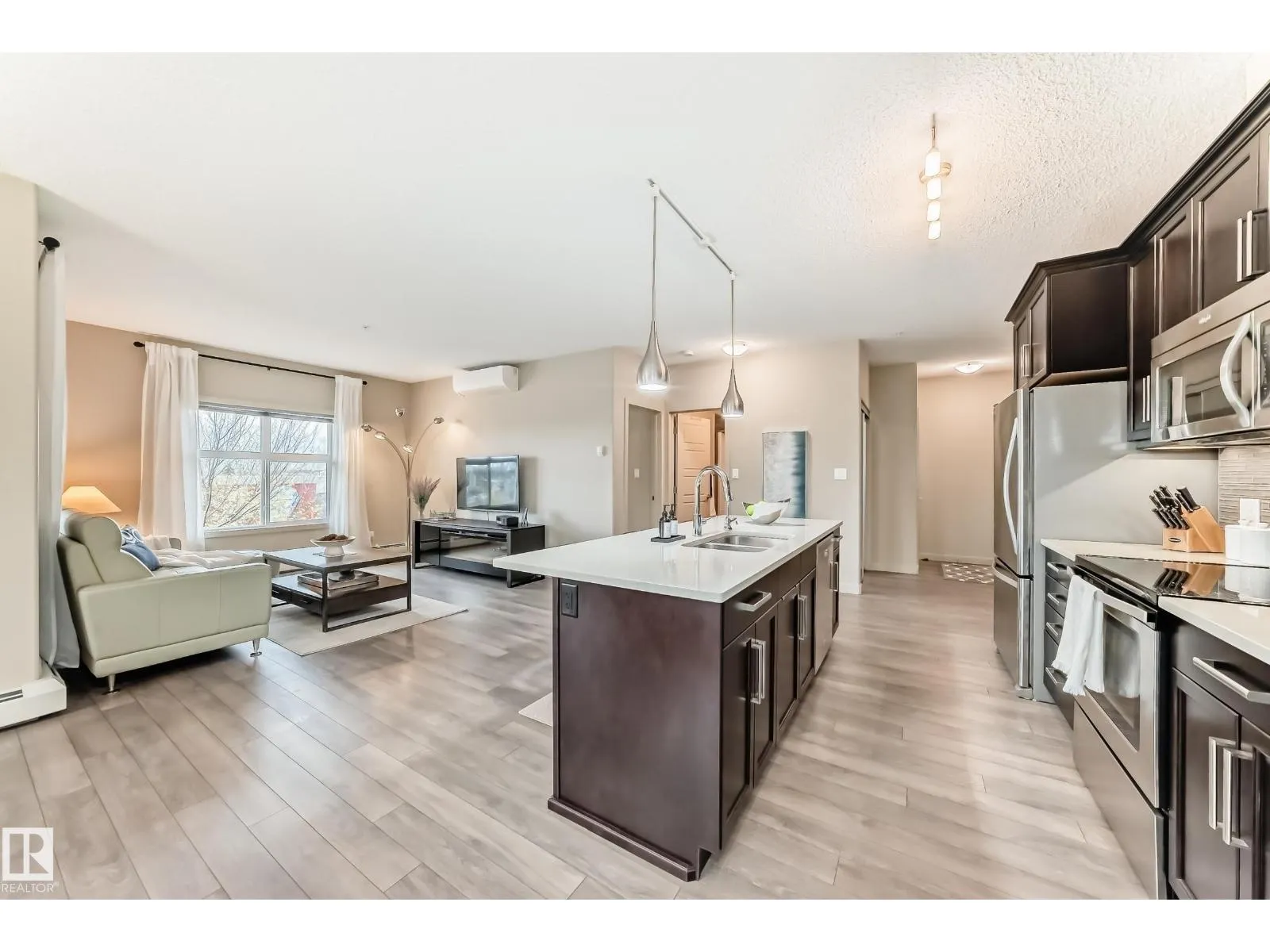Corner Suite with 2 Beds, 2 Baths + Den, 2 Parkings in Griesbach! Welcome to this impeccably maintained corner unit in one of Edmontonâs most desirable communities. This spacious 2-bedroom, 2-bathroom + den home offers modern finishes throughout. Featuring quartz countertops, bar seating, and an open-concept layout, the kitchen flows into bright living and dining areas with access to a large covered balconyâperfect for relaxing or entertaining. Bedrooms are thoughtfully placed on opposite corners for added privacy. The primary suite includes a walk-through closet and spa-inspired ensuite, while the second bedroom sits next to a full 4-piece bath. Extras include A/C, full-size in-suite laundry, TWO titled parking stalls (one underground, one surface; both located next to entrance and elevator), and a secure storage cage in the heated parkade. Located steps from parks, cafes, restaurants, transit, and scenic walking trails, this home offers the ideal blend of urban convenience and neighborhood charm. (id:27476)