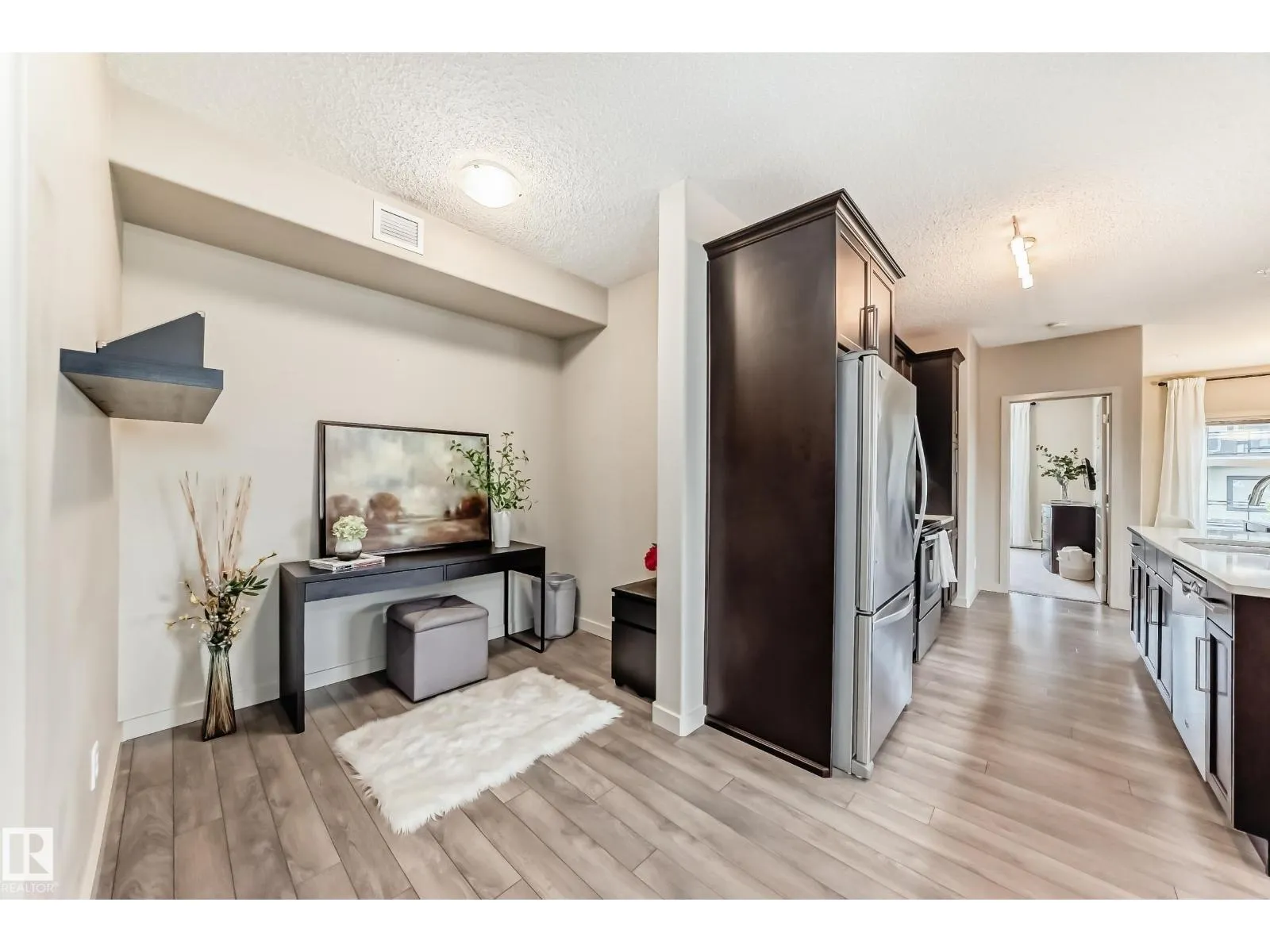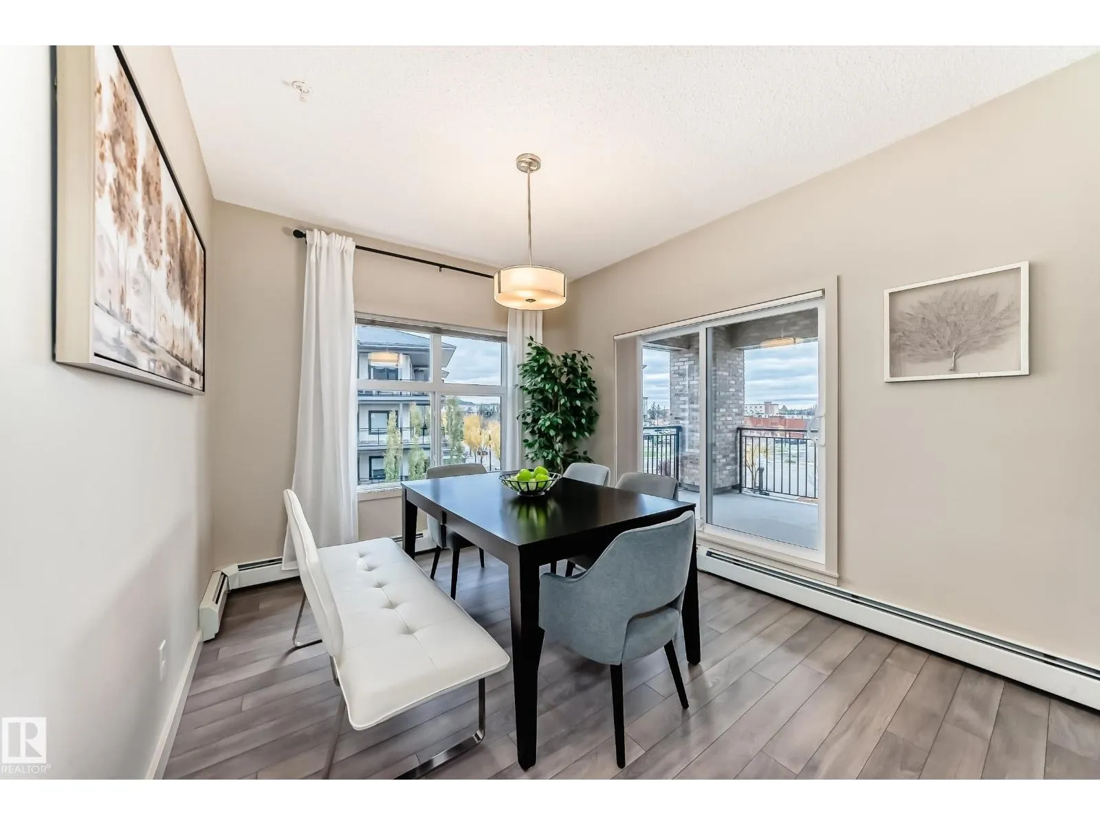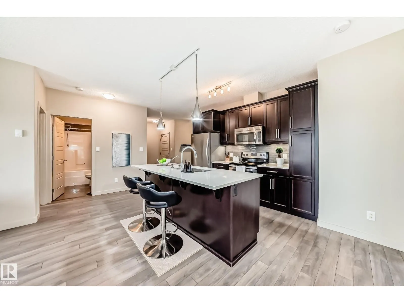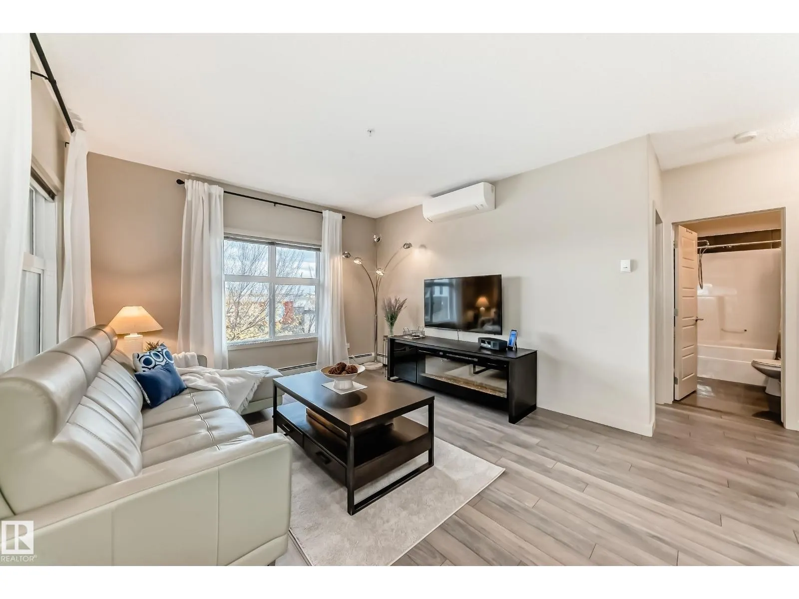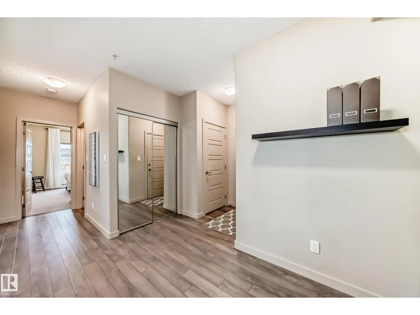 Corner Suite with 2 Beds, 2 Baths + Den, 2 Parkings in Griesbach! Welcome to this impeccably maintained corner unit in one of Edmontonâs most desirable communities. This spacious 2-bedroom, 2-bathroom + den home offers modern finishes throughout. Featuring quartz countertops, bar seating, and an open-concept layout, the kitchen flows into bright living and dining areas with access to a large covered balconyâperfect for relaxing or entertaining. Bedrooms are thoughtfully placed on opposite corners for added privacy. The primary suite includes a walk-through closet and spa-inspired ensuite, while the second bedroom sits next to a full 4-piece bath. Extras include A/C, full-size in-suite laundry, TWO titled parking stalls (one underground, one surface; both located next to entrance and elevator), and a secure storage cage in the heated parkade. Located steps from parks, cafes, restaurants, transit, and scenic walking trails, this home offers the ideal blend of urban convenience and neighborhood charm. (id:27476)