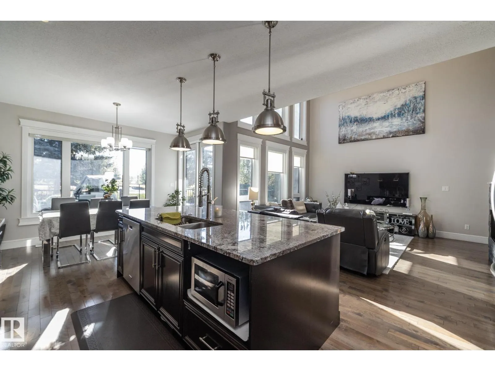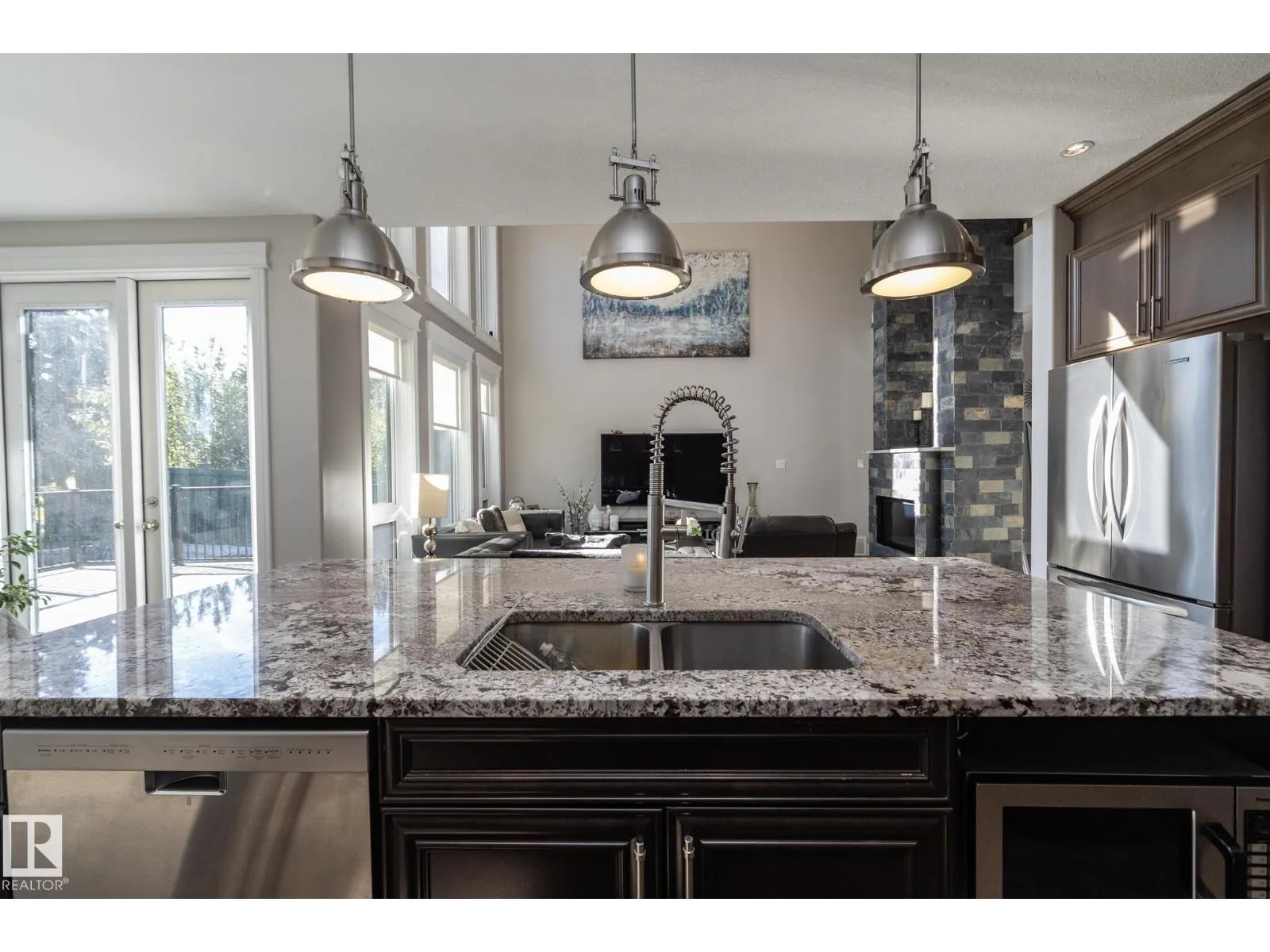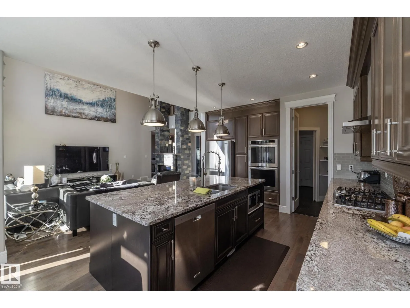 This exceptional home in desirable Weber Greens backs onto the golf course and offers over 2,600 sq ft of living space. Features include 4 bedrooms (one on the main level), 3 bathrooms, and a bonus room. The primary suite includes a private balcony. Triple pane windows, hardwood flooring on the main level, and granite countertops throughout add to the homeâs quality finishes. The kitchen is equipped with KitchenAid appliances including a gas cooktop and double oven. Additional features include Cat 5e wiring, central vacuum, and air conditioning. The basement is framed, has 9' ceilings, and is roughed in for in-floor heating. A triple oversized garage provides ample parking and storage. Located just steps to the lake, backing onto the golf course, and with a new Kâ9 school in the neighbourhood, this home offers outstanding value and location! (id:27476)