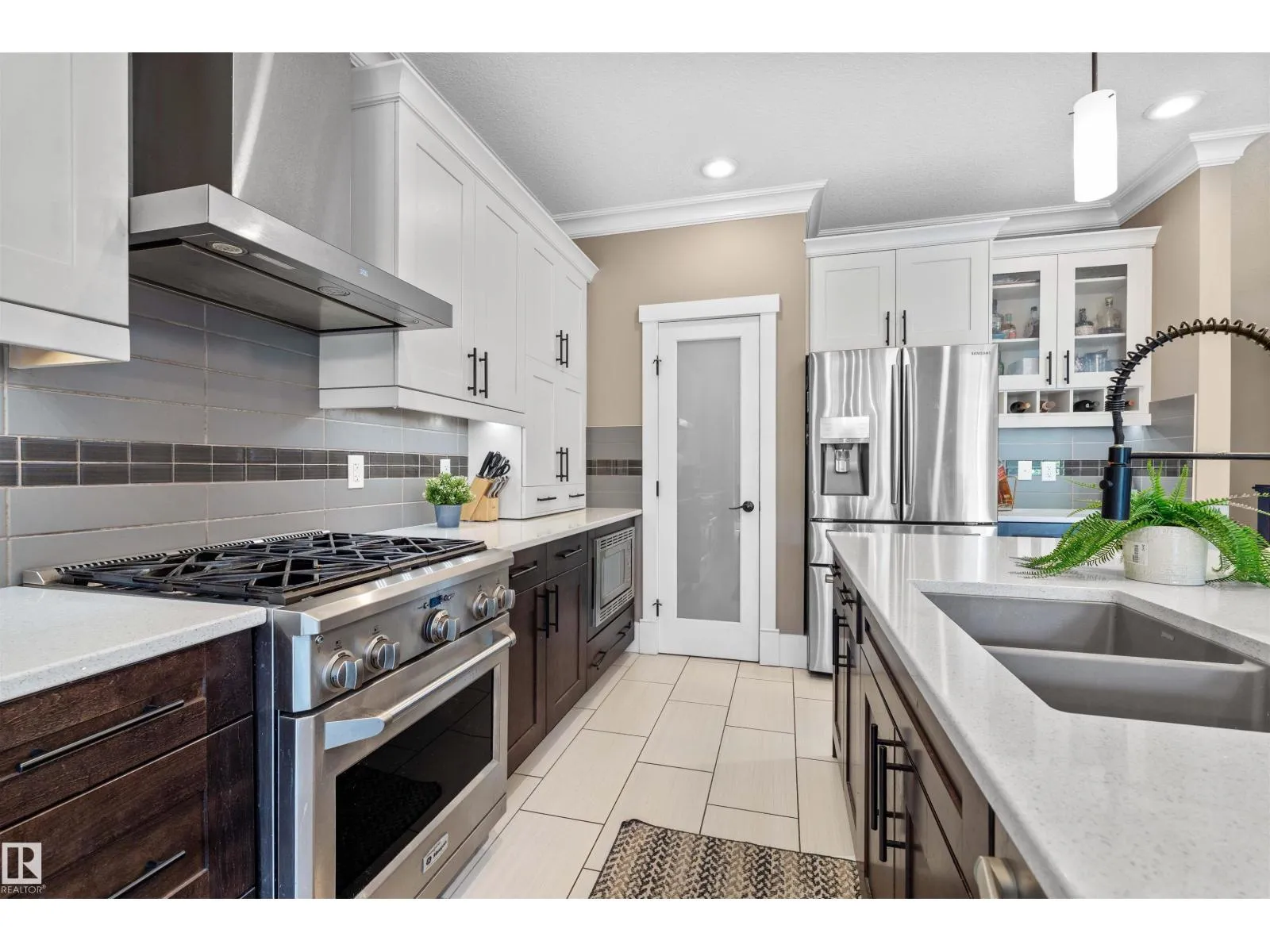 Experience elevated living in this exquisite residence located in Ambleside.Offering nearly 4,000 sq. ft. of meticulously designed living space.The heart of the home is the chef-inspired kitchen, appointed with premium JennAir appliances, custom cabinetry, and sophisticated finishesâcrafted to impress.Flowing seamlessly into the expansive living and dining areas. With 5 bedrooms including a serene primary retreat, this residence provides space and comfort for every member of the household. Uniquely positioned by a walk-path, the property offers an enhanced level of privacy.The outdoor living space is truly a private sanctuary. Professionally landscaped with low-maintenance artificial turf, a multi-tiered deck and spa-like hot tub, creating a resort-style atmosphere right at home.Perfectly situated within walking distance to schools, parks, and pathways, and only minutes from the upscale amenities of Windermere, this property offers both luxury and lifestyle in one of Edmontonâs most coveted neighborhoods. (id:27476)
