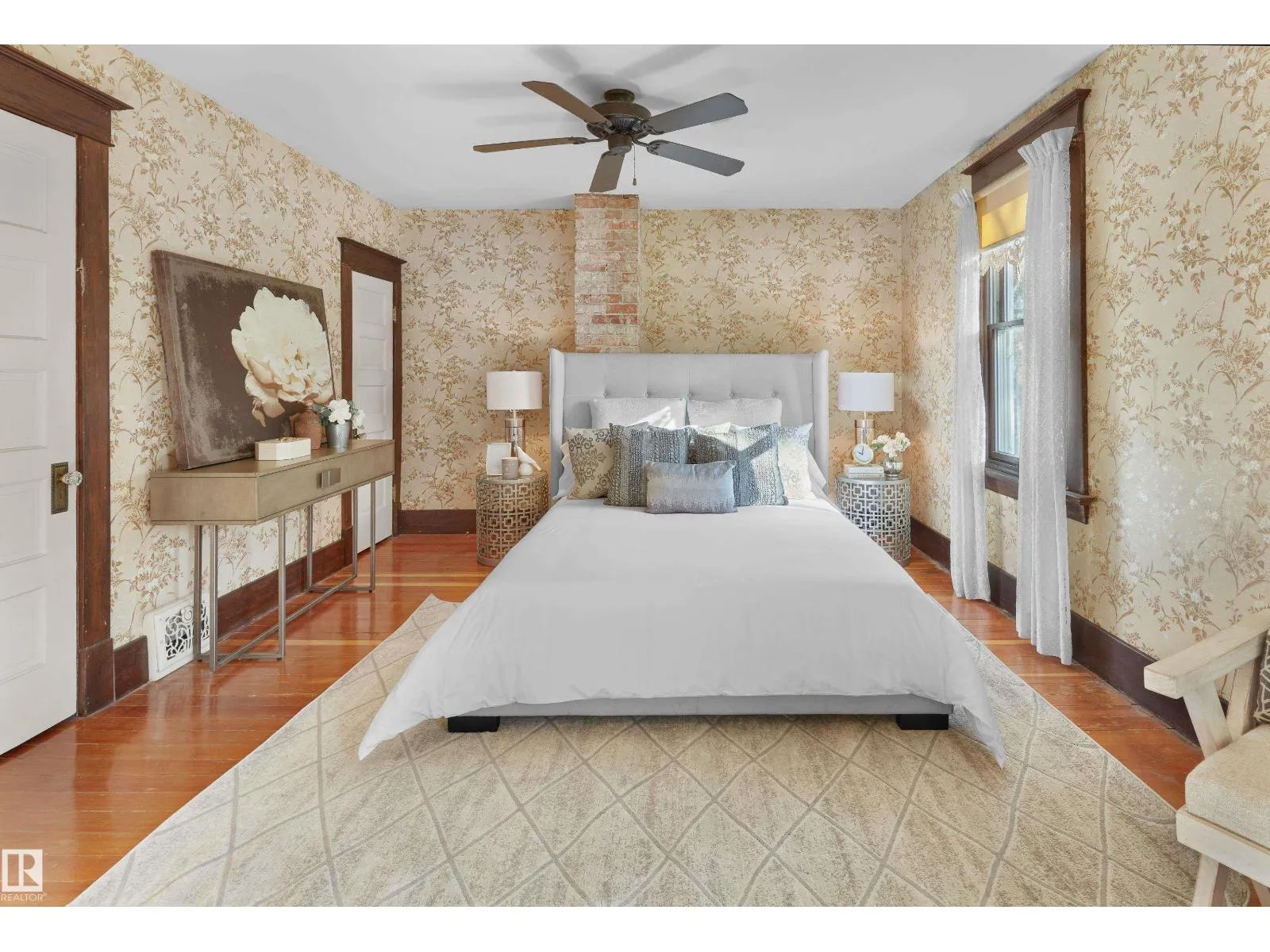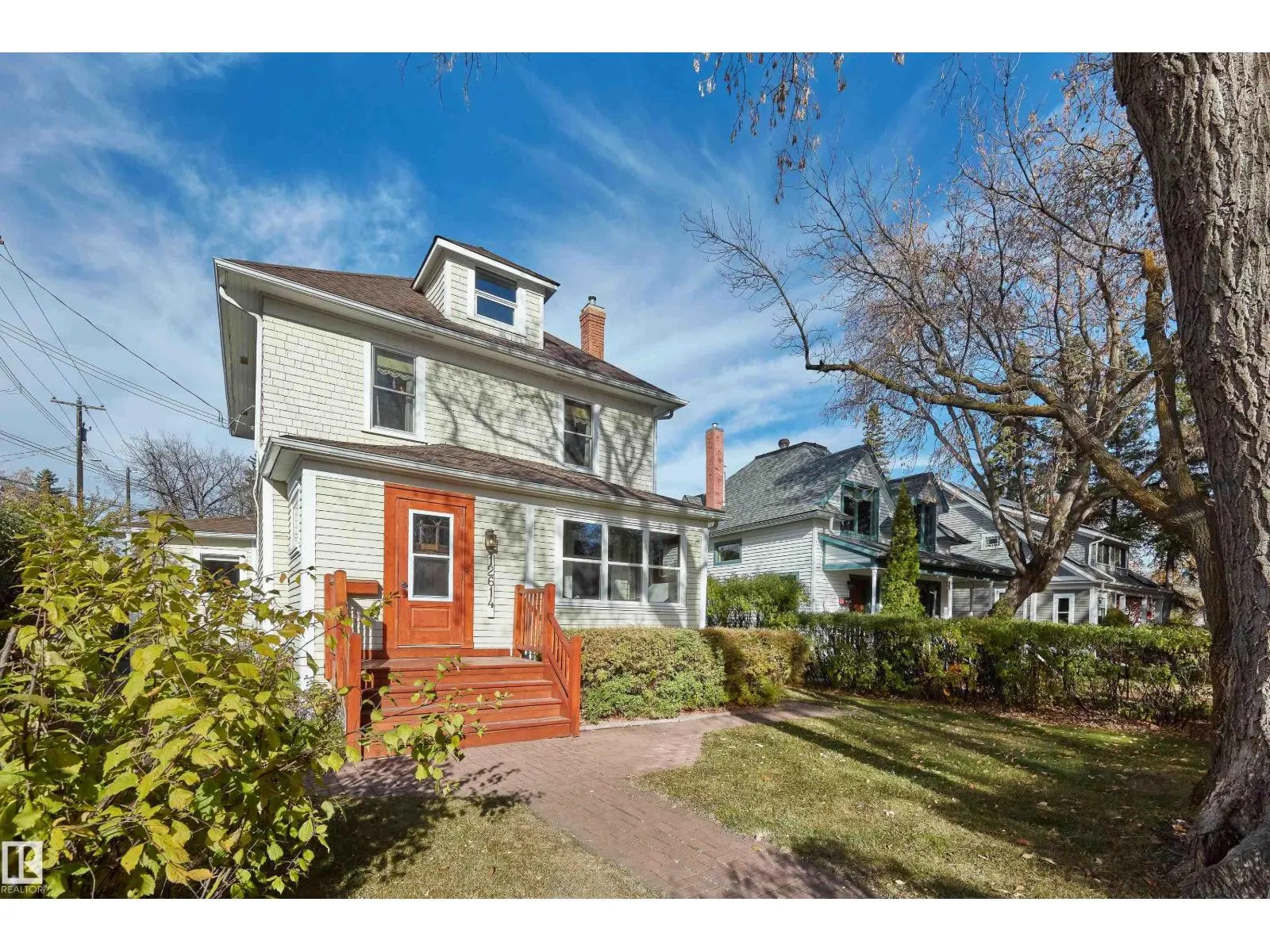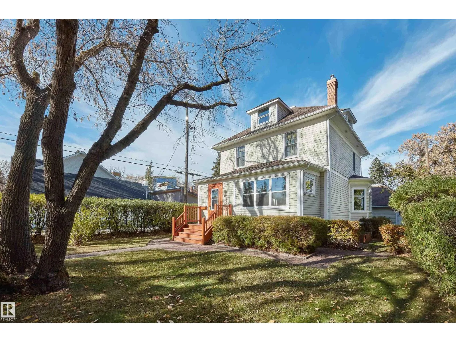 Welcome home to this charming two-and-a-half-storey character home nestled on a picturesque street in the heart of Westmount. Featuring four spacious bedrooms above grade, plus an additional bedroom in the basement, and two full bathrooms, this home blends historic charm, location, and space for the modern family. The interior showcases original character details, including timeless woodwork and elegant fixtures, complemented by newer Pella wood windows and a newer roof. Enjoy peaceful evenings on the beautiful front porch, ideal for relaxing or welcoming guests. Upstairs are four bedrooms and a full bathroom. The basement offers a rec room, fifth bedroom, and second full bathroom. A large, functional mudroom offers convenient storage & access to the backyard and double detached garage w/ loft. Situated within easy walking distance of vibrant shops and restaurants on 124 Street, parks, and schools, this property offers a rare combination of location, character, and comfort. Don't miss this Westmount gem! (id:27476)