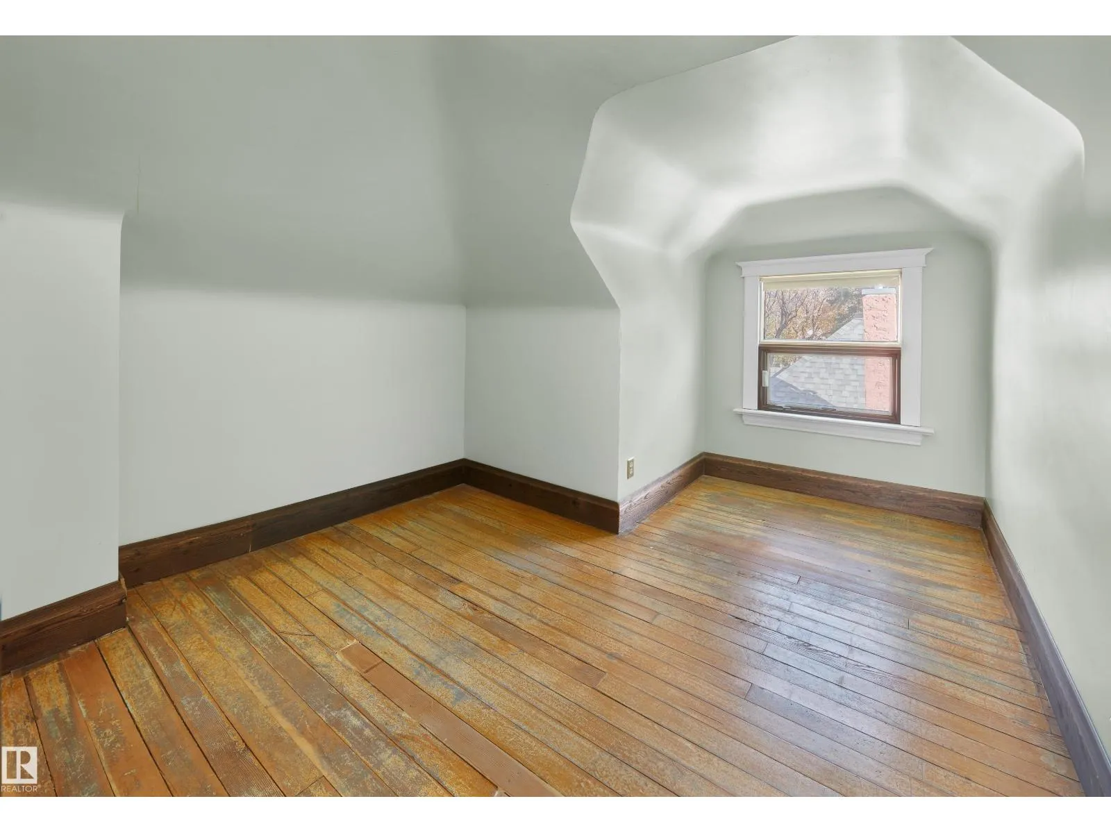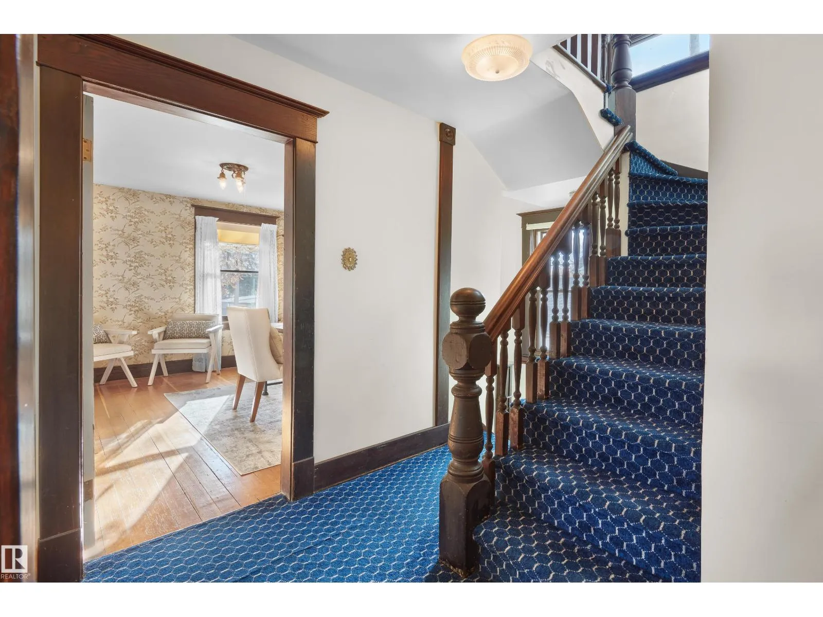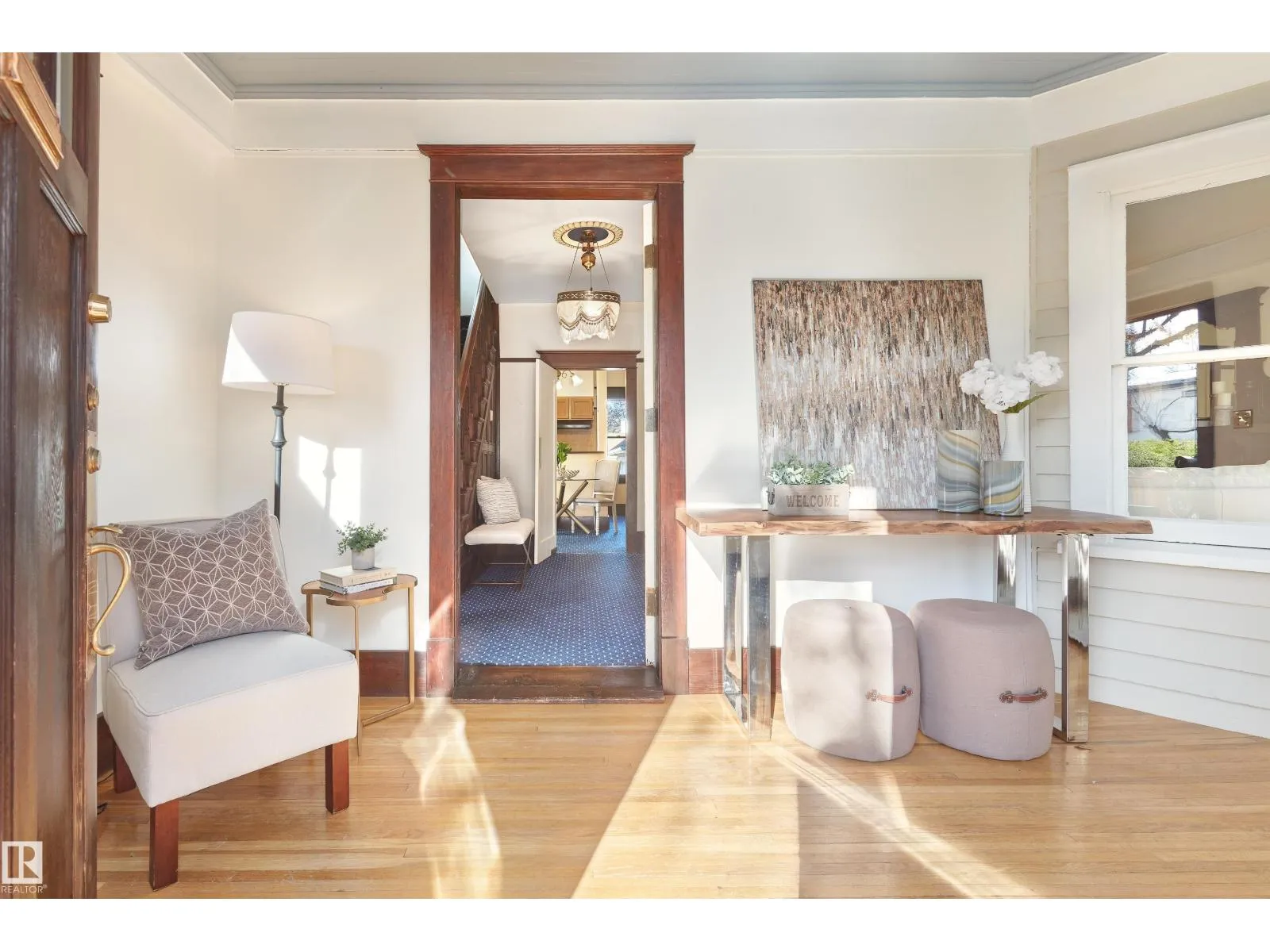 Welcome home to this charming two-and-a-half-storey character home nestled on a picturesque street in the heart of Westmount. Featuring four spacious bedrooms above grade, plus an additional bedroom in the basement, and two full bathrooms, this home blends historic charm, location, and space for the modern family. The interior showcases original character details, including timeless woodwork and elegant fixtures, complemented by newer Pella wood windows and a newer roof. Enjoy peaceful evenings on the beautiful front porch, ideal for relaxing or welcoming guests. Upstairs are four bedrooms and a full bathroom. The basement offers a rec room, fifth bedroom, and second full bathroom. A large, functional mudroom offers convenient storage & access to the backyard and double detached garage w/ loft. Situated within easy walking distance of vibrant shops and restaurants on 124 Street, parks, and schools, this property offers a rare combination of location, character, and comfort. Don't miss this Westmount gem! (id:27476)