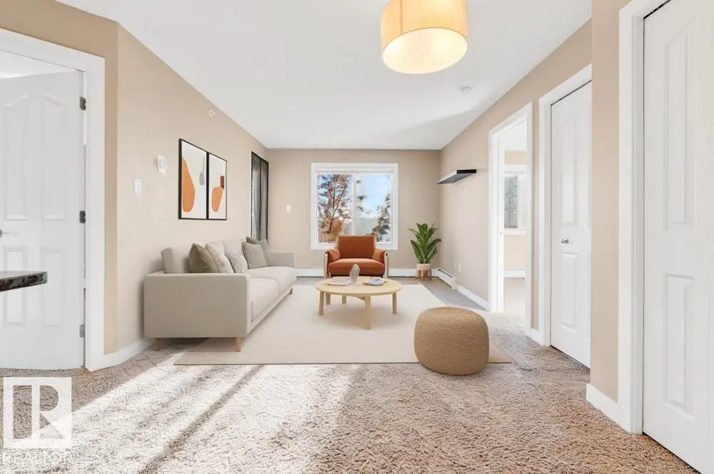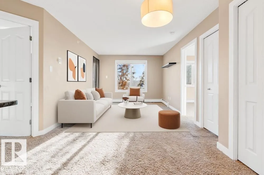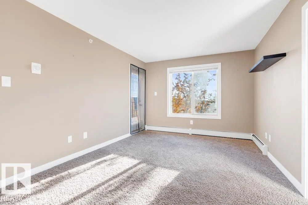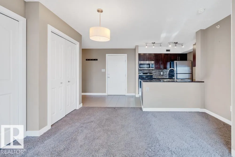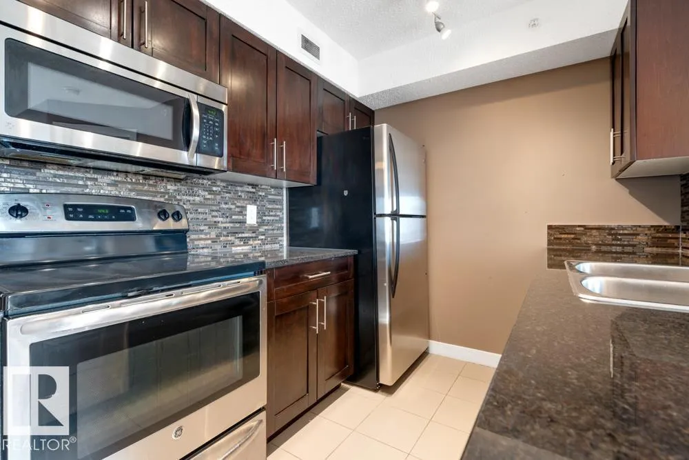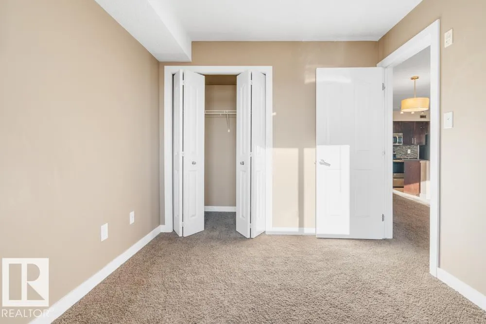 Right in the heart of Heritage Valley Town Centre, this top floor 2 bedroom, 2 bathroom condo features south facing private balcony views, with abundant sunlight, and a elegant look throughout, with lush carpets to walk on and granite countertop surfaces. The primary bedroom is highlighted by a walkthrough closet to ensuite. The large den at the foyer is ideal for office space. Brand new in-suite stacked laundry, upgraded appliances and backsplashes, add to the charm of this unit, coupled with the convenience of heated underground parking and secure storage, as well as assigned additional parking near the entryway- 2 spaces in total! Steps from public transit, restaurants, shopping, medical services, schools, rec centers and more. The building is monitored for peace of mind with security cameras. (id:27476)