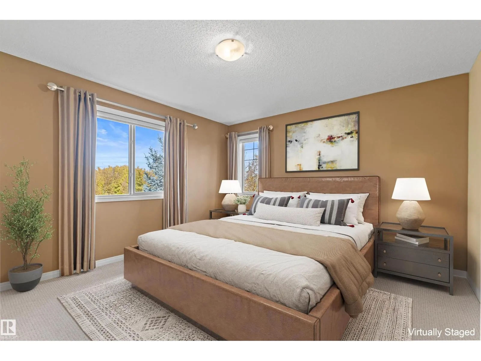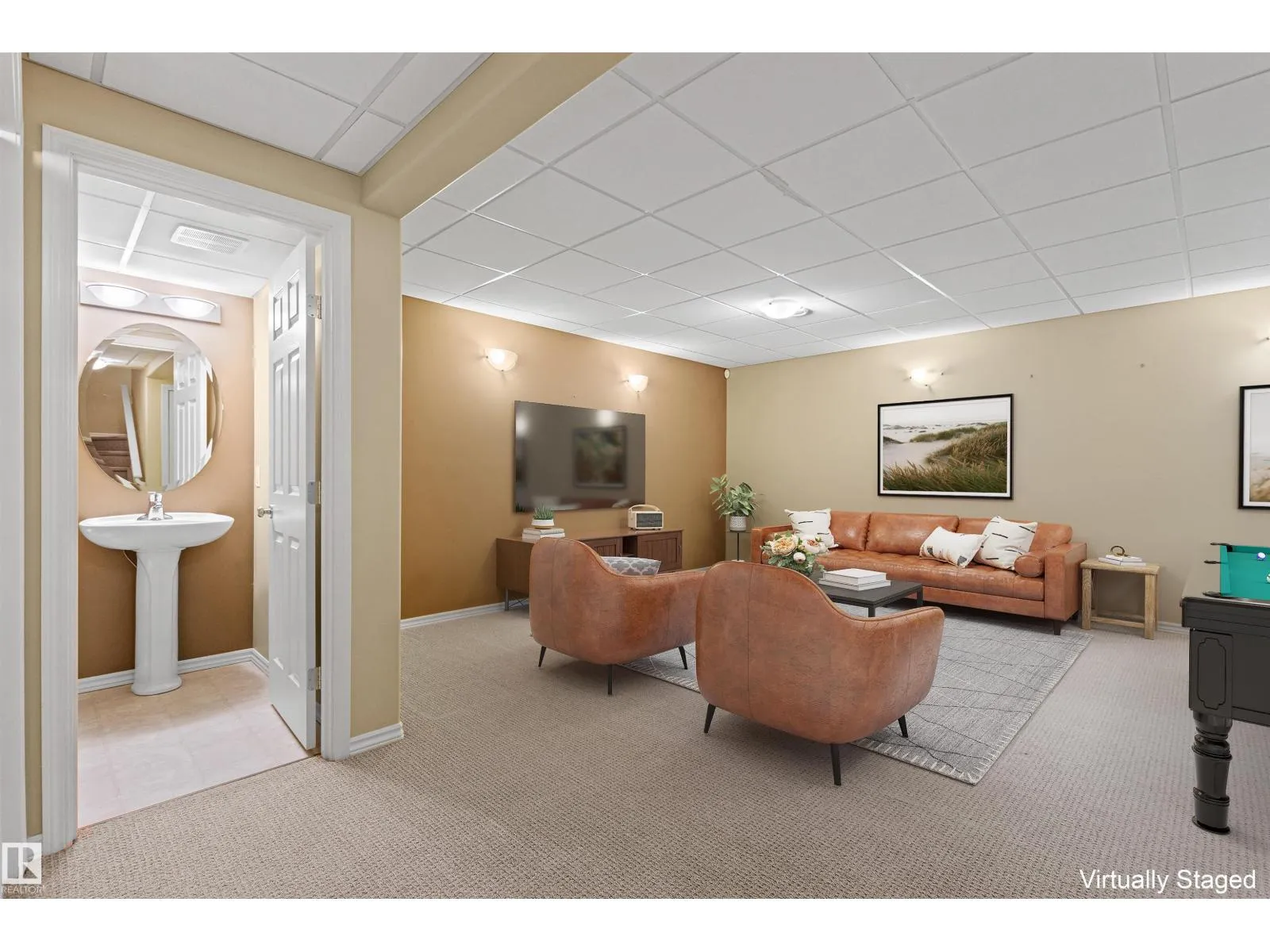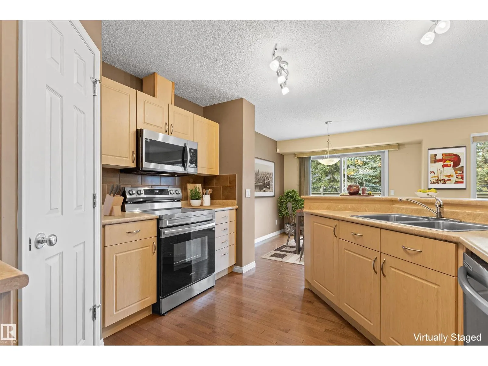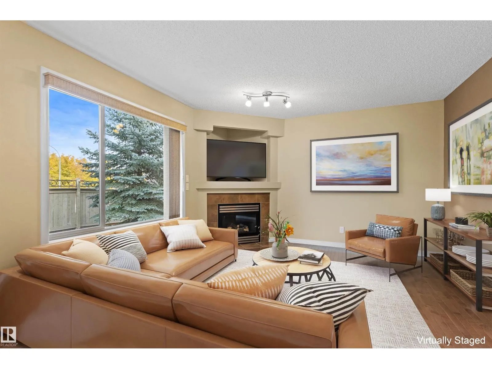 Windows galore bring light into this spotless, upgraded 1442 sqft former show home. Foyer with spindle railing to 2nd level. Open concept main floor has maple hardwood. Kitchen: plenty of cabinets, walk-in pantry, peninsula with raised eating counter. Dining: patio door to deck (gas line). Living room: corner gas fireplace (mantel/TV alcove). Powder room: pedestal sink. Upper level: Den: pony-wall open to staircase, two spacious Bedrooms each with 4-piece Ensuite, huge Closets (walk-in & 8â). Lower level (added sound proofing): massive Family room, Laundry (stacking front-load washer/dryer), 2-piece bath, lots of storage. Custom drapery, Hunter Douglas blinds, modern paint colors. Central A/C, HE furnace & HWT. Oversized double attached garage. Reasonable condo fees for comfortable, convenient, maintenance-free living. Walking trails, parks, nearby shopping & transportation. Easy access to major roads while maintaining a private community feel. Welcome to tarasun Gardens. Some Images are Virtually Staged. (id:27476)