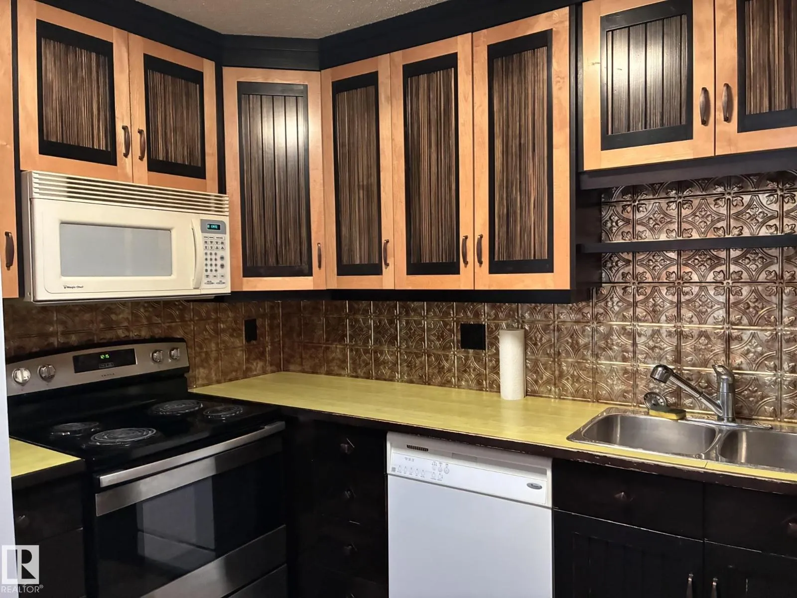 Enjoy city living in this spacious 937 sq. ft. 2-bedroom, 1-bath condo in the desirable Queen Mary Park community. This bright top-floor corner unit offers breathtaking views of Downtown Edmonton and a welcoming living room with a corner wood-burning fireplace. The kitchen features a unique and functional design, while the primary bedroom includes a walk-in closet and plenty of additional storage. Youâll also appreciate the large in-suite storage room with built-in shelving. Ideally located close to Downtown, MacEwan University, shopping, dining, and all amenitiesâperfect for professionals, students, or investors looking for convenience and character in a great central location! (id:27476)