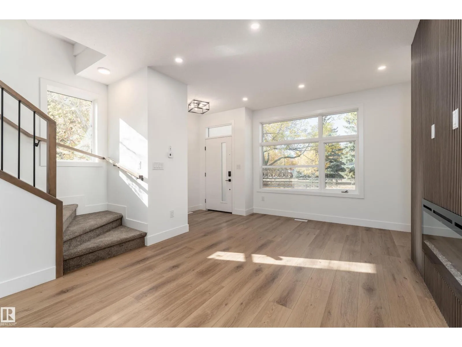 Beautiful custom 3-storey home in the quiet, tree-lined community of Prince Charles. Perfect for the professional family, this modern home offers high-end finishes and space for everyone. The main floor features an open layout with a bright living room and fireplace, a stylish dining area, and a chefâs kitchen with quartz countertops, premium cabinets, black fixtures, and a large island. Step onto the back deck for peaceful outdoor living. Upstairs, the primary bedroom includes a walk-in closet and private ensuite with double sinks and a glass shower. Two more bedrooms, a full bath, and laundry complete this level. The top-floor loft is ideal for an office, reading area, or media room, with an oversized private balcony overlooking the park and mature trees. Fully landscaped front and back. A separate side entrance to the basement offers future suite potential. Just minutes from downtown, schools, parks, shopping, and transitâthis is modern living in a beautiful, established neighborhood. (id:27476)