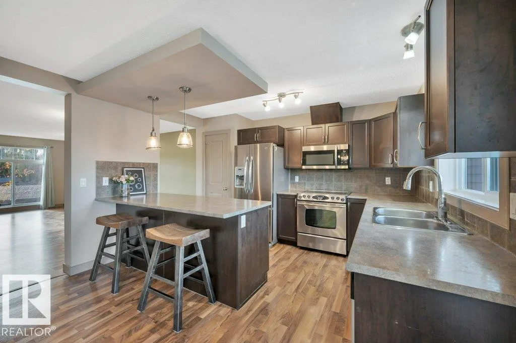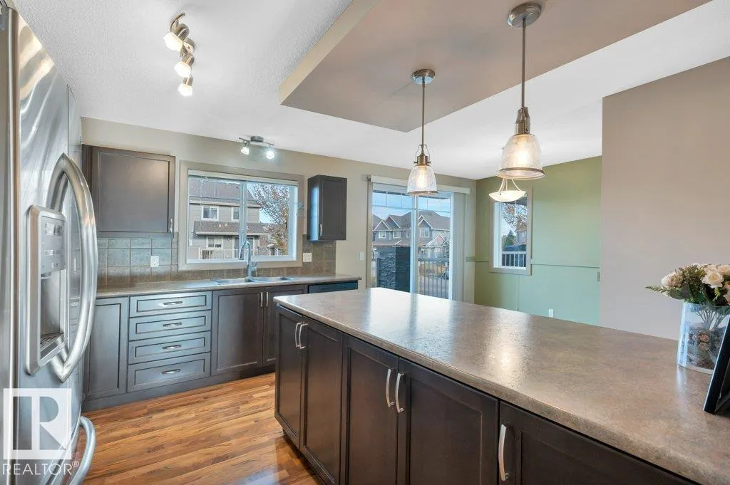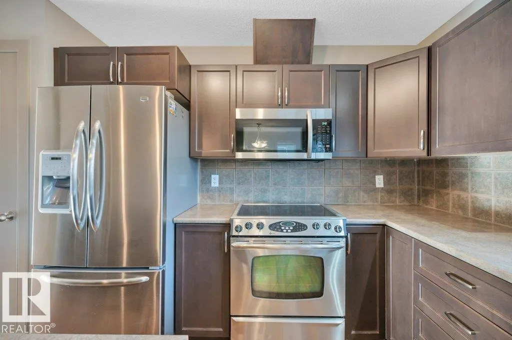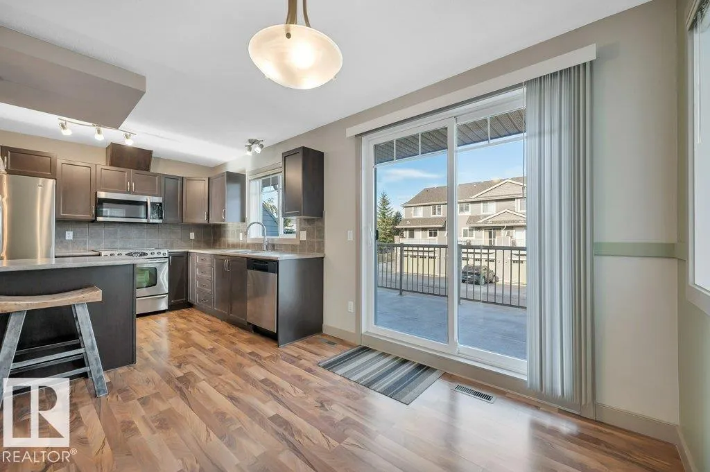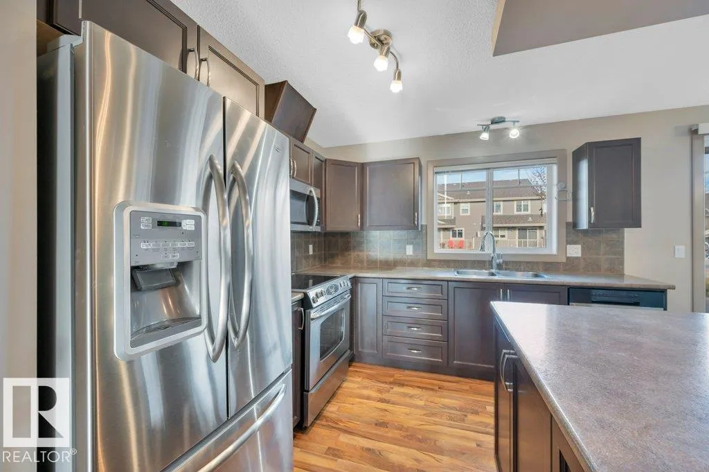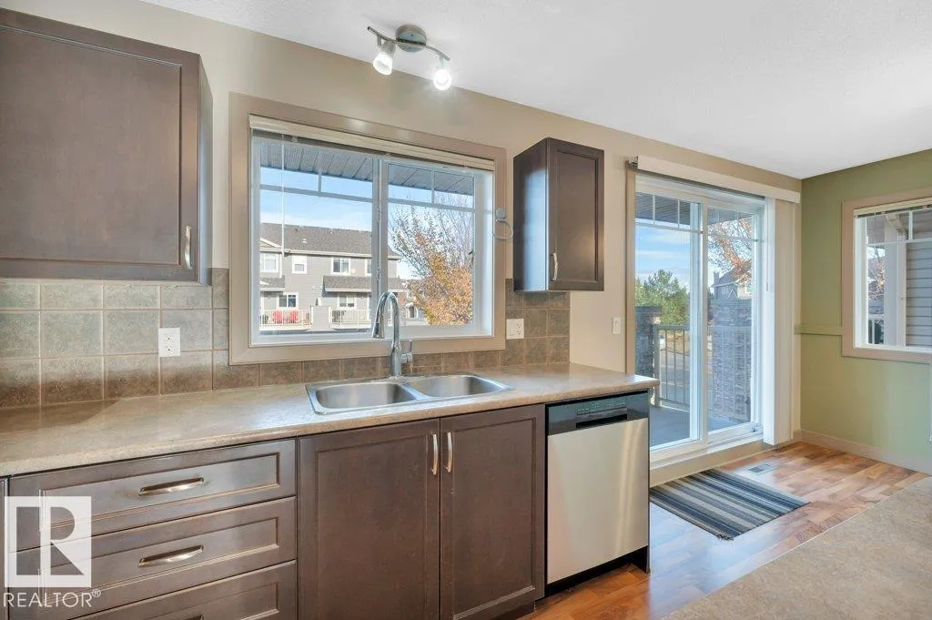 This air-conditioned end-unit townhome is spotless and move-in ready! The south-facing living room is bright and welcoming, with extra windows that fill the space with natural light. A cozy gas fireplace adds warmth and charm, making it a perfect spot to relax. Enjoy a separate dining area and an eat-in kitchen featuring stainless steel appliances and stylish pendant lighting. Step out onto the spacious balcony with a gas lineâideal for outdoor lounging or entertaining. Upstairs offers two generously sized primary bedroom suites, each with walk-in closets and full bathrooms. The laundry area is conveniently located on the upper level. Downstairs, the finished basement boasts nearly 9â ceilings, a large family room, and a handy 2-piece bathroomâperfect for a home office, media room, or guest space. Located just half a block from the scenic Blackmud Creek ravine trail, this home offers easy access to nature and peaceful walks. (id:27476)
