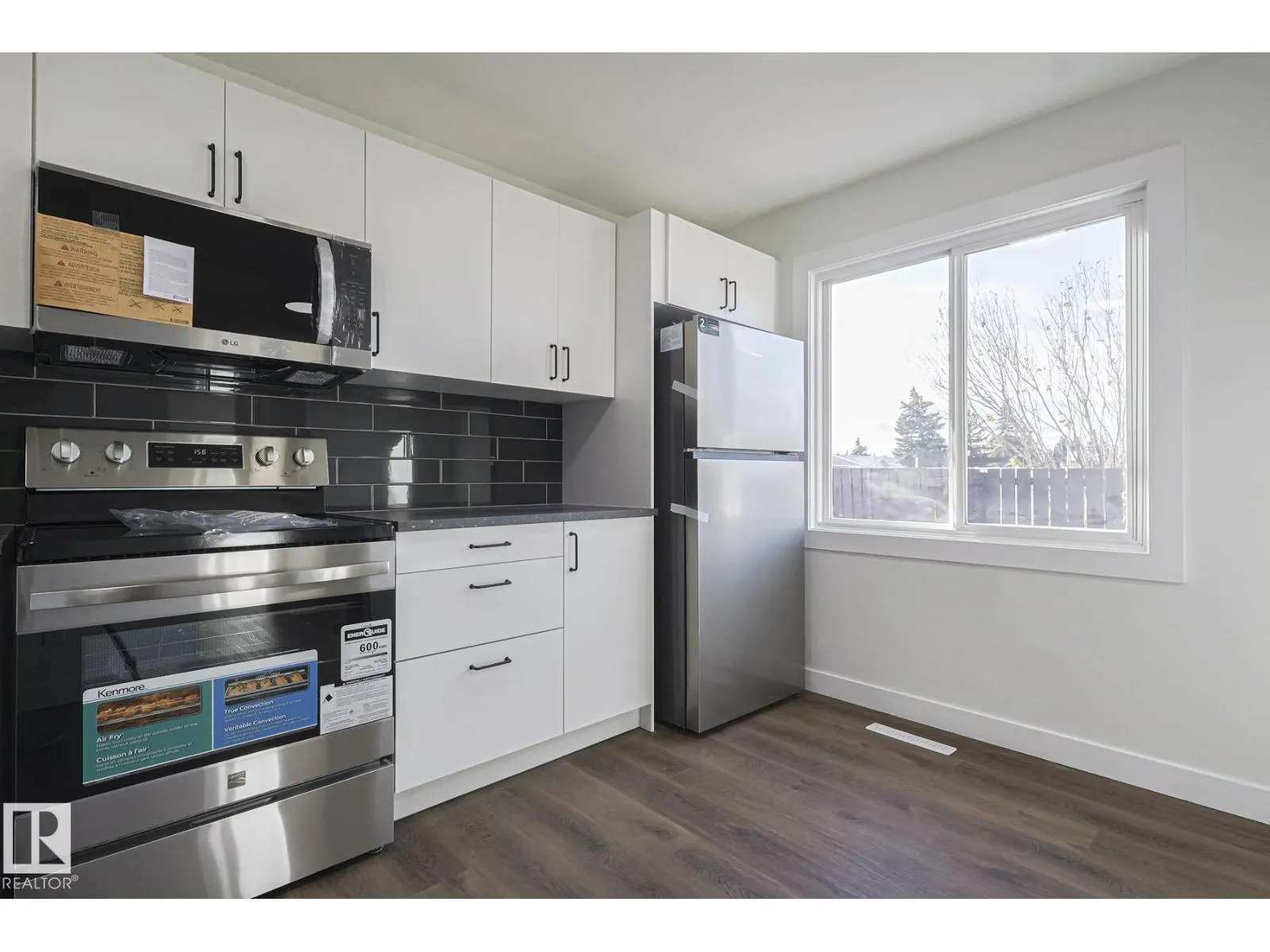 FIRST TIME BUYER OPPORTUNITY! This FULLY RENOVATED 3-bedroom END UNIT townhome in desirable Roseland Village is absolutely gorgeous! Perfectly located across from a park and greenspace, it offers both style and convenience. Featuring rich vinyl plank flooring, designer lighting, and high-end finishes throughout, this home impresses at every turn. The open-concept main floor showcases a stunning new kitchen with white cabinetry, elegant black subway tile backsplash, and quality stainless steel appliances. The bright living room has a large picture window filling the space with natural light, plus a stylish 2-piece bath on the main level. Upstairs you'll find 3 spacious bedrooms with mirrored closets and a beautifully updated bathroom with custom tile and modern fixtures. Enjoy a private fenced yard surrounded by mature trees, plus your own parking stall. The LOW CONDO FEES in a well-managed complex offers unbeatable valueâjust move in and enjoy! (id:27476)
