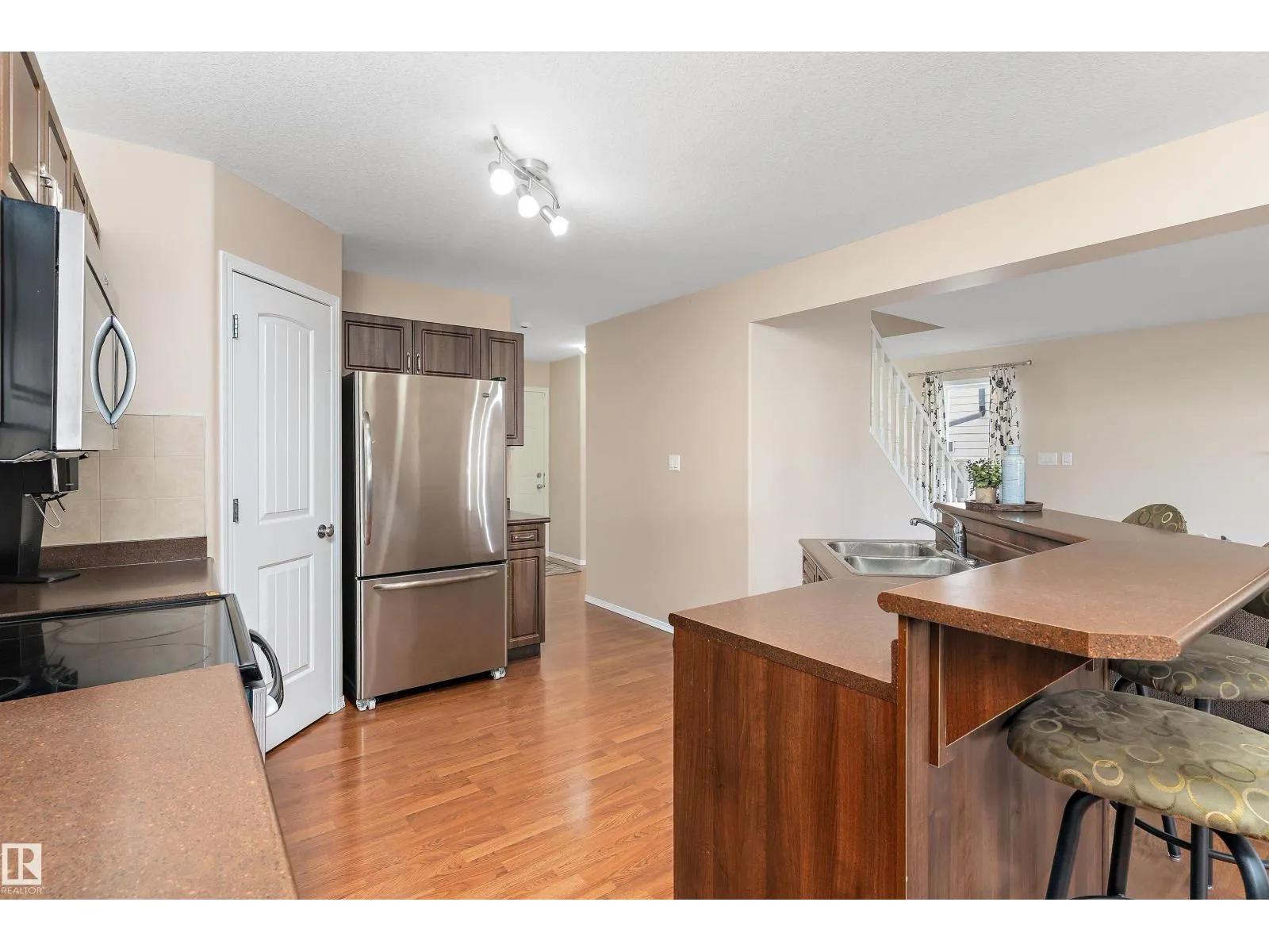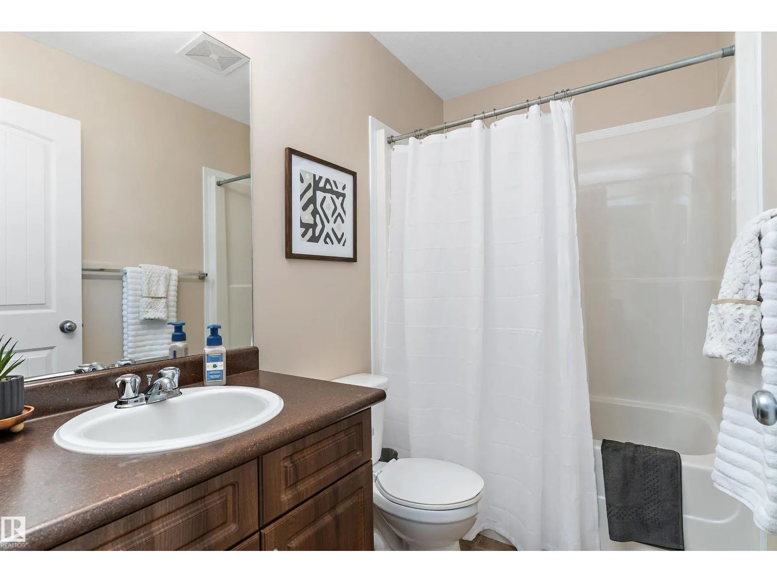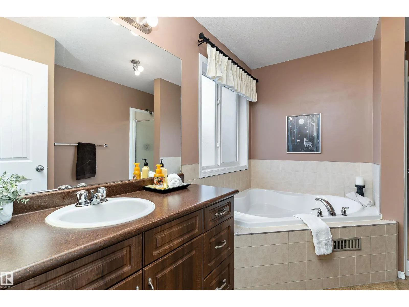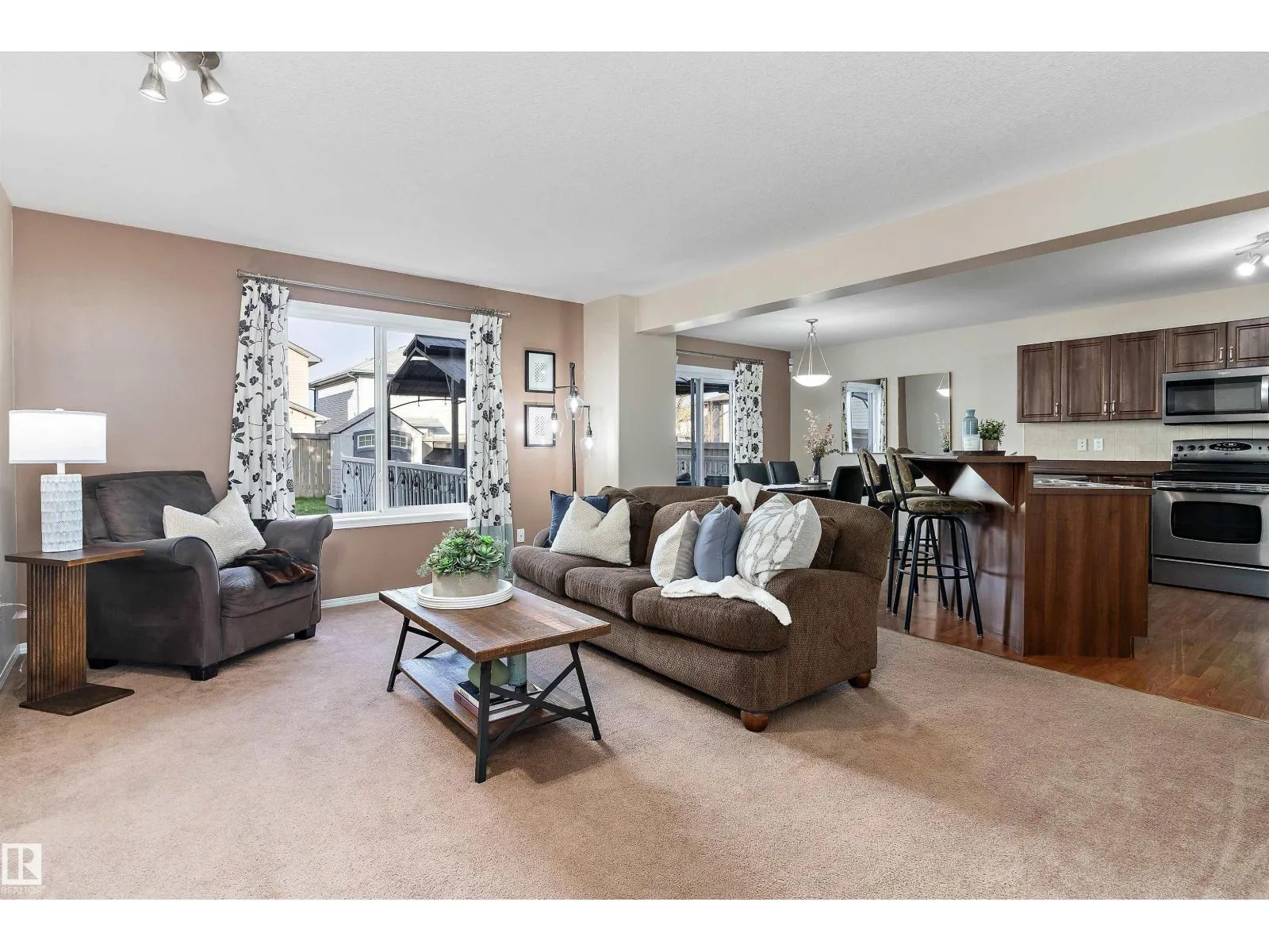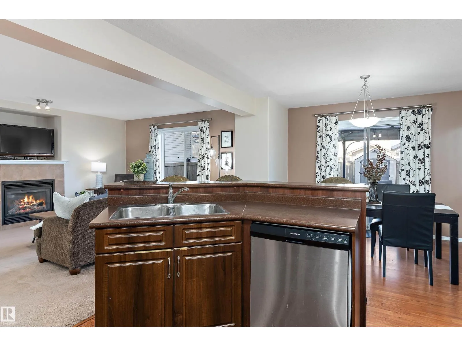 Warm and inviting 2-storey Tamarack home offers over 2,557 sq ft of total living space. The open-concept main floor is thoughtfully designed for everyday living and entertaining, featuring a dining area with sliding doors that open to a large deck and backyard, plus a convenient powder room and main floor laundry. Upstairs, find three bedrooms, including a primary suite with large closet and spacious ensuite. One bedroom is currently set up as a home office, complemented by an additional full bath and a bright, sun-filled bonus room with vaulted ceilings and a built-in window seat. The professionally finished basement adds value with a large family room, wet bar complete with bar fridge and kegerator, half bath, and versatile den. Complete with central A/C and within walking distance to schools, parks, and amenities, with easy access to the Whitemud and Anthony Henday, this home perfectly blends space, comfort, and convenience. (id:27476)