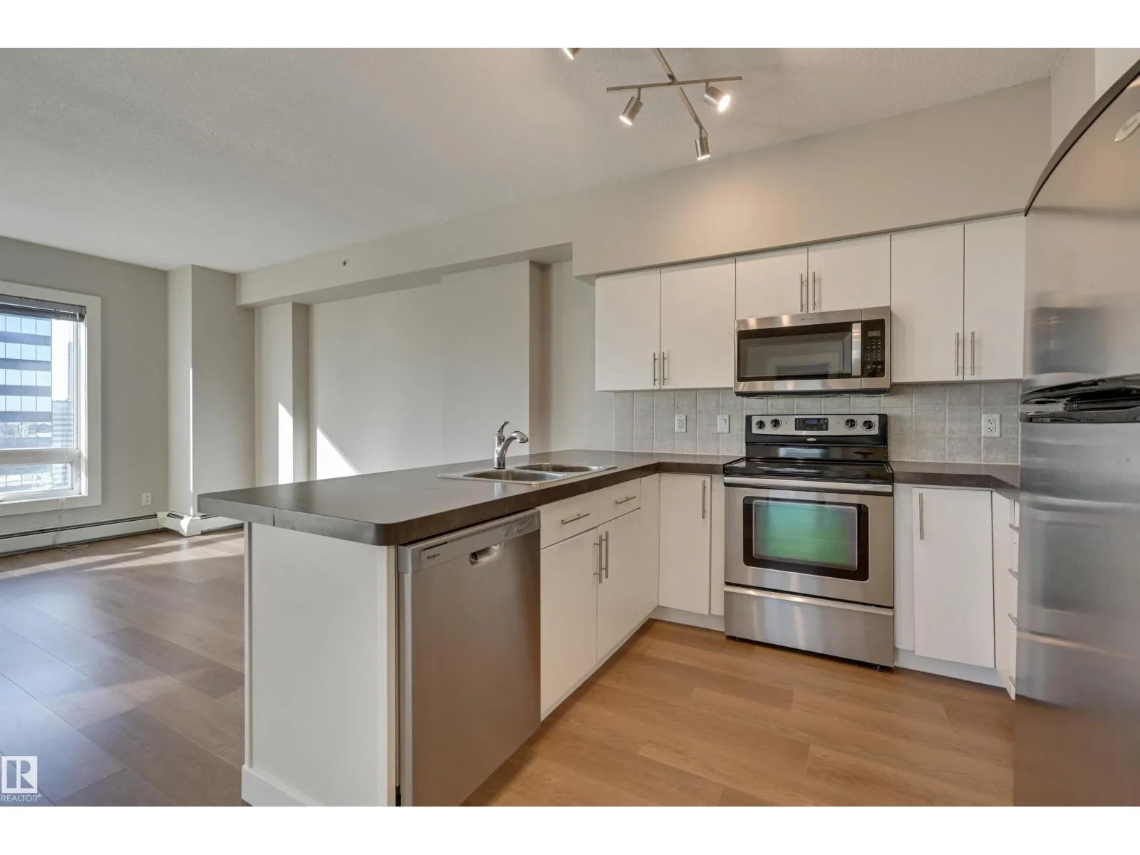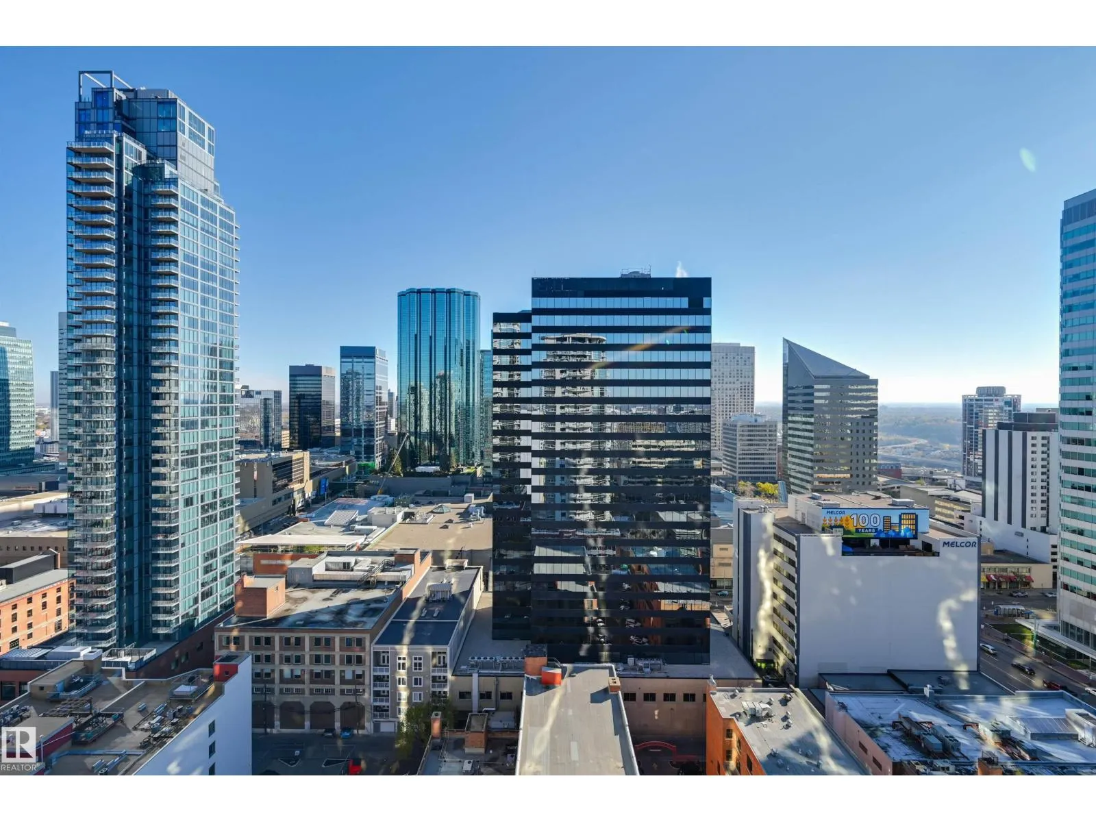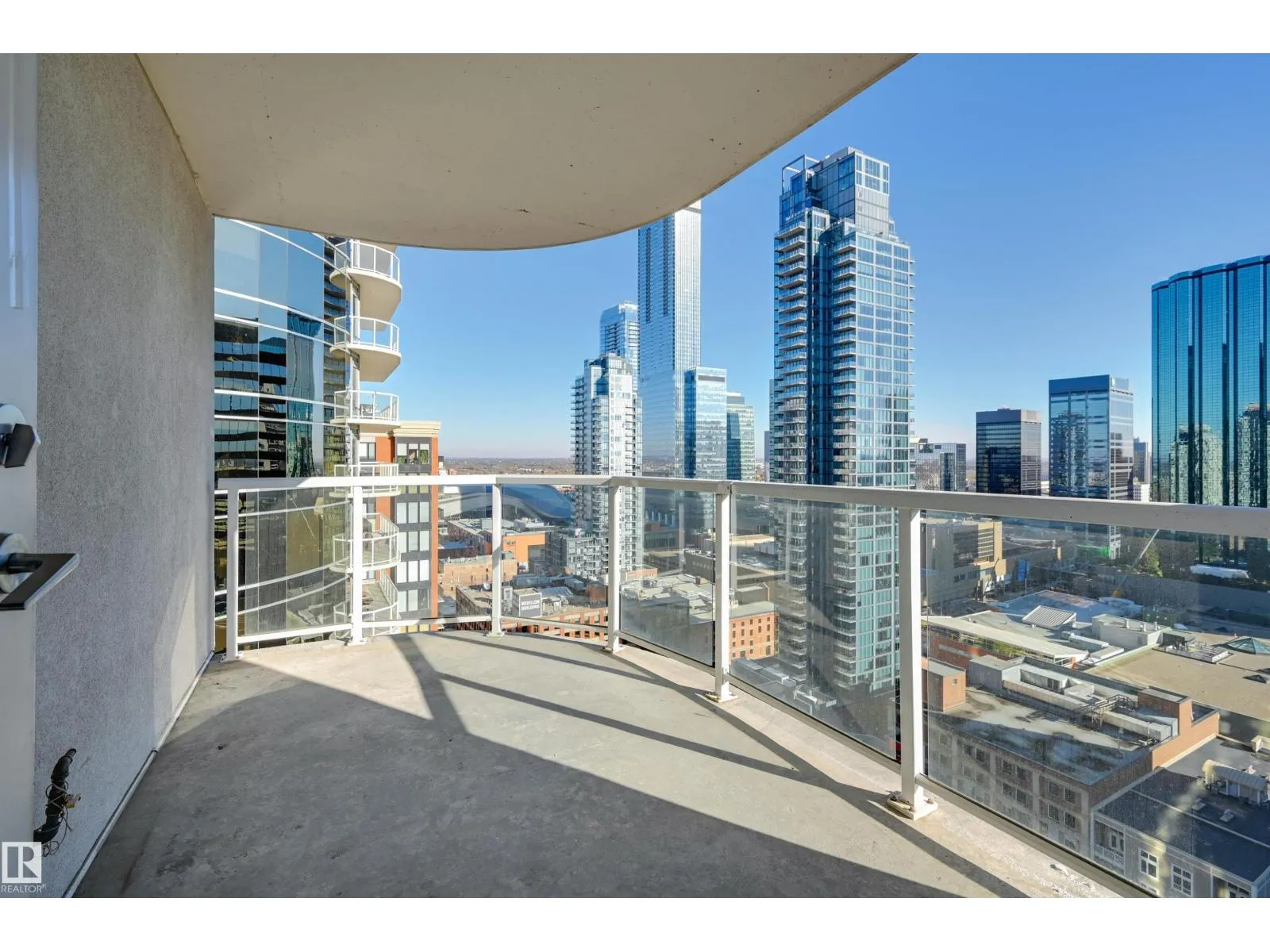 Amazing views from Floor 22, and this is just one great reason to be Downtown!! At days end, reward yourself by sitting on your balcony and taking in the Downtown and Ice District views This home offers much more than a view, as Icon is located perfectly to maximize the downtown experience! Out the front door, and you are in the centre of it. Five minutes walk to Rogers Place and MacEwan Campus, the Alberta Legislature and Govt. Centre is 10 minutes SW, & River Valley are within walking distance. The seasonal D/T Farmers' Market is out your front door. Restaurants in every direction, and LRT across the street will take you to the UofA , Nait, Millwoods, Southside, and Edmonton Int. Airport with one bus transfer! This two-bdrm/bath home offers just under 1,000 sq ft, S/S appliances, island kitchen, recent paint, primary bdrm with ensuite, large in-suite Laundry/Storage room, NG BBQ connection on the balcony, and the titled UNGRD, heated stall. D/T is getting revitalized, move in and enjoy the living. (id:27476)