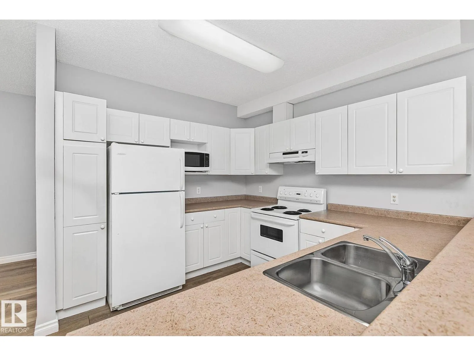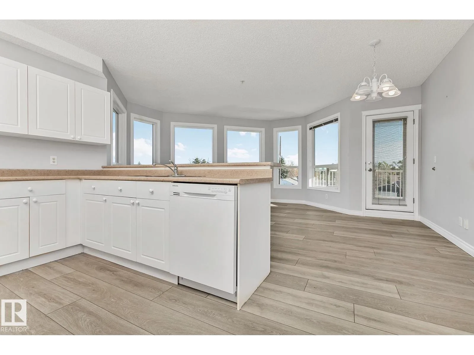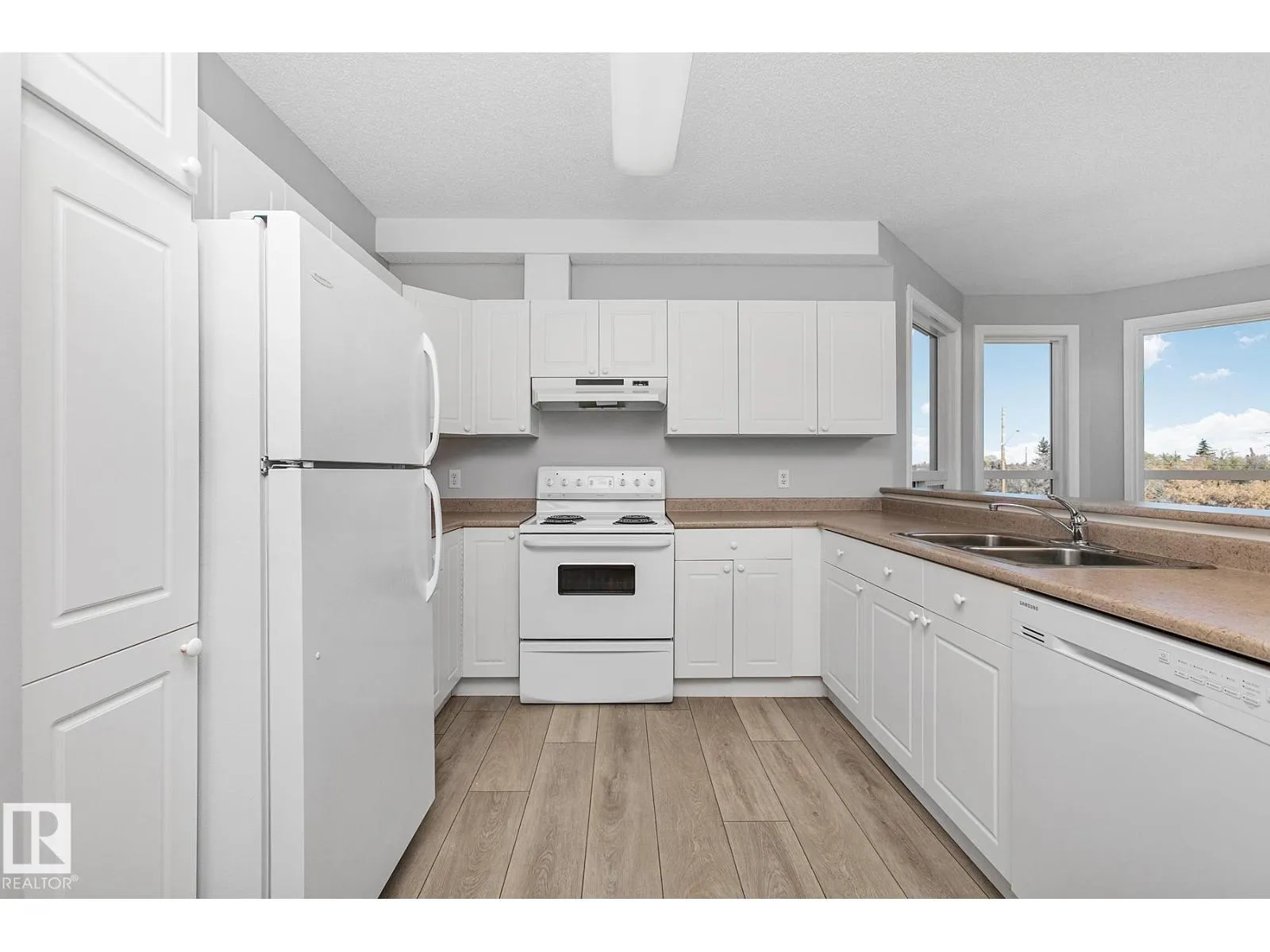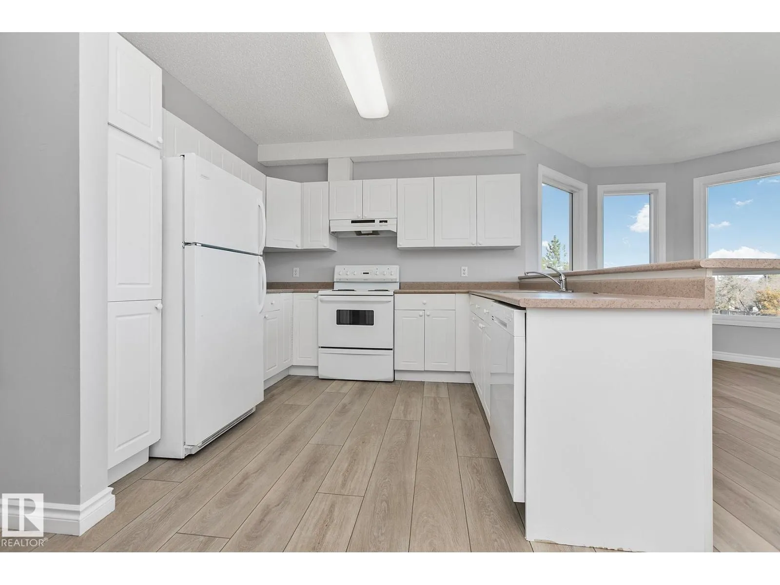 Don't miss out on viewing this spacious 1,050sqft. 2 bedroom 2 full bath CORNER unit condo at Meadowlark Terrace! Interior features include brand new luxury vinyl plank flooring throughout; spacious front entry; sun lite open concept kitchen w/ white cabinetry & breakfast bar; living area w/ wrap around windows offering great cityscape views.. and access to the east exposure balcony with an outside storage room for seasonal items. The primary bedroom boasts large bay windows with south views, double closets & a private 4pc. ensuite bath. Bedroom #2 offers the convenience of a private access to the main 3pc. bath, and combination laundry & storage room to complete the floorplan. Parking offers a secure heated underground stall w/ a generous sized storage cage. This small quiet building shows pride of ownership, has no age restrictions and well managed. Located close to Schools, Parks, Public Transit, Future Valley Line LRT Station, Meadowlark Mall, WEM and Misericordia Hospital. SIMPLY PUT.. Great Value!! (id:27476)