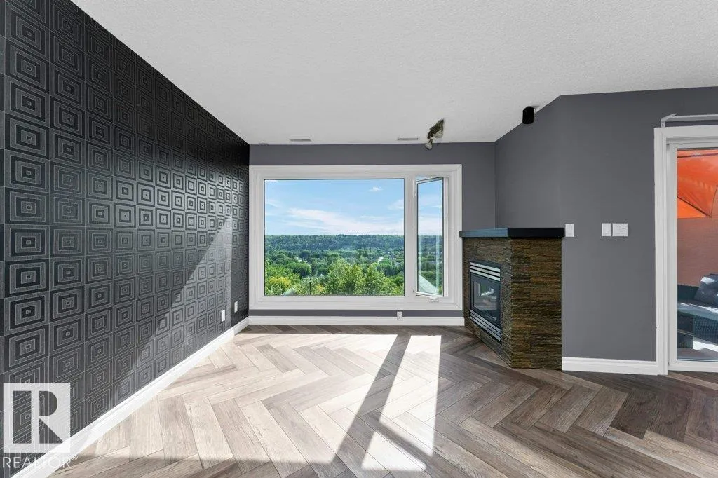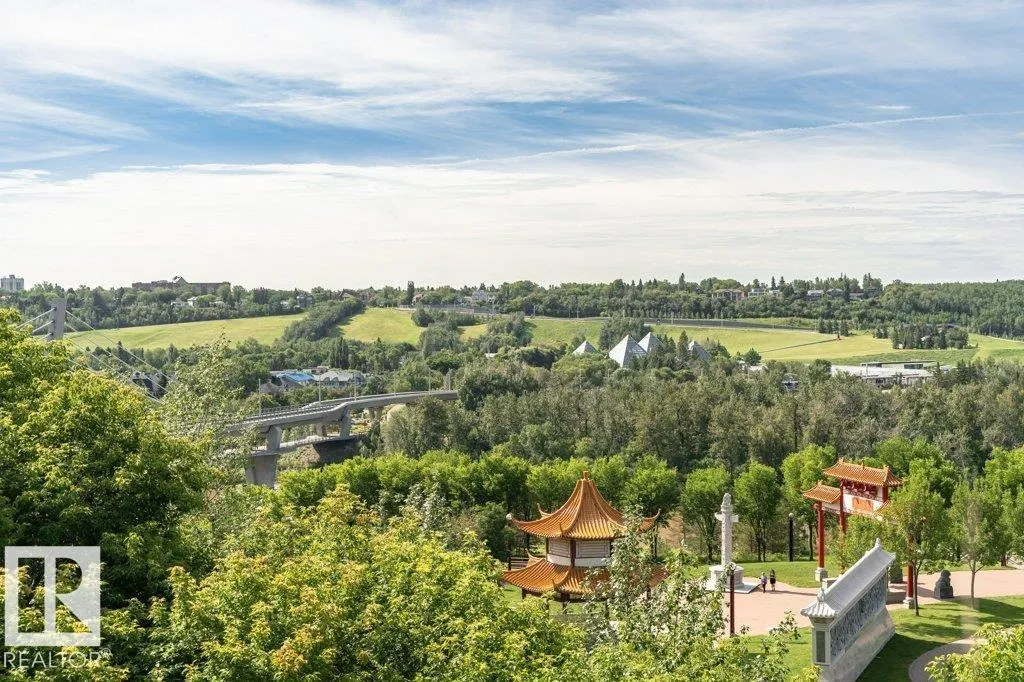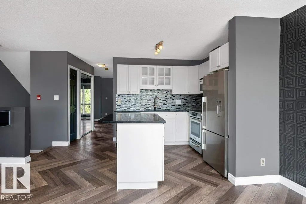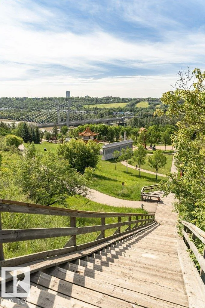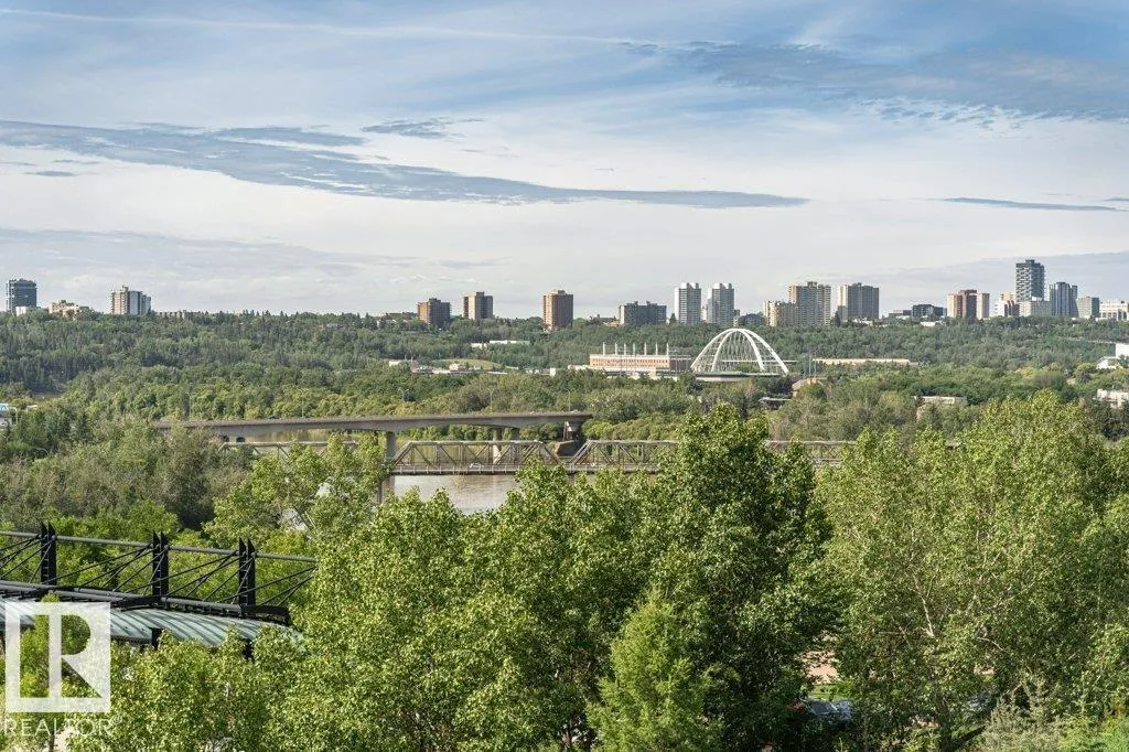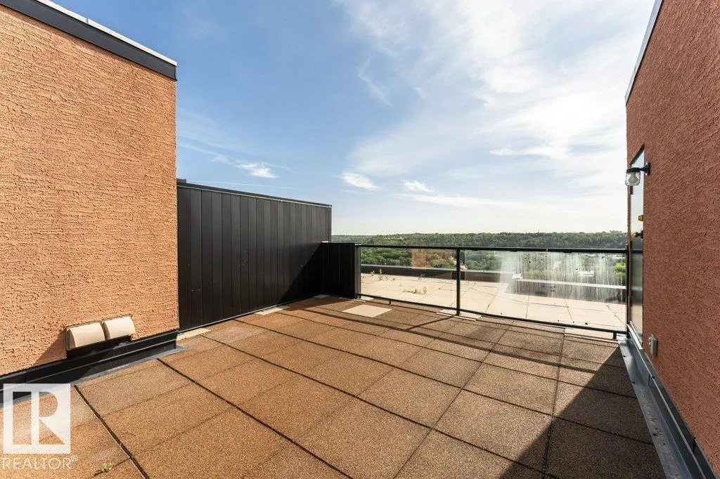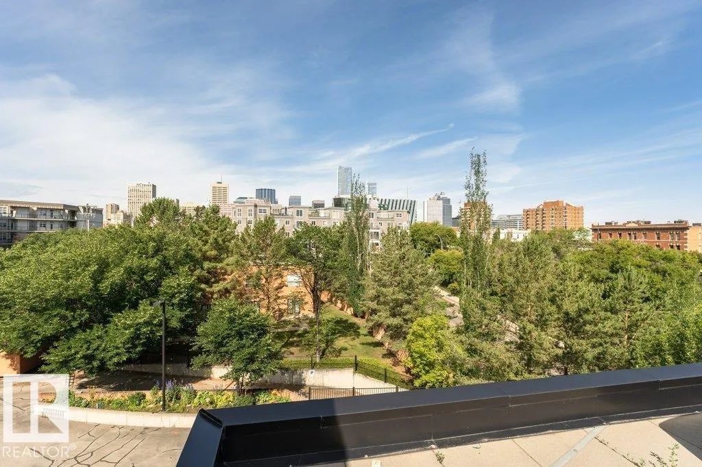 Discover this beautifully maintained, air-conditioned two-storey townhouse with a private rooftop deck and stunning river valley and downtown views. Located at the back of a gated 18+ complex. The home includes one secure underground parking spot with a storage locker and an additional above-ground stall in front of the unit. Walking distance to the River Valley and City Centre, this modern 2-bedroom features an open-concept design. The recently remodeled main level boasts a bright European-style kitchen with an island, a spacious living room with a gas fireplace, and a dining area opening to a glass-enclosed private balcony with a natural gas connection. There's also an open den/family room and a 3-piece bath. Upstairs, find a utility/laundry room and two large bedrooms, including a primary with a sitting area, walk-in closet, and spa-inspired ensuite with a jetted tub and corner shower. Additional storage has been added throughout. This home has been professionally painted and professionally cleaned. (id:27476)