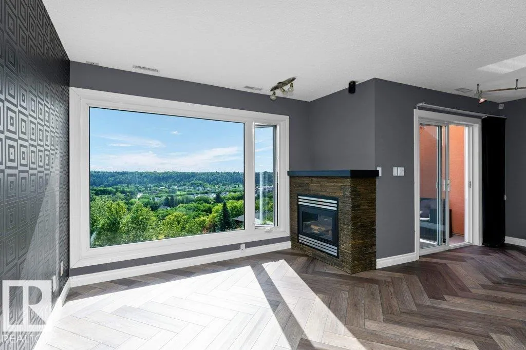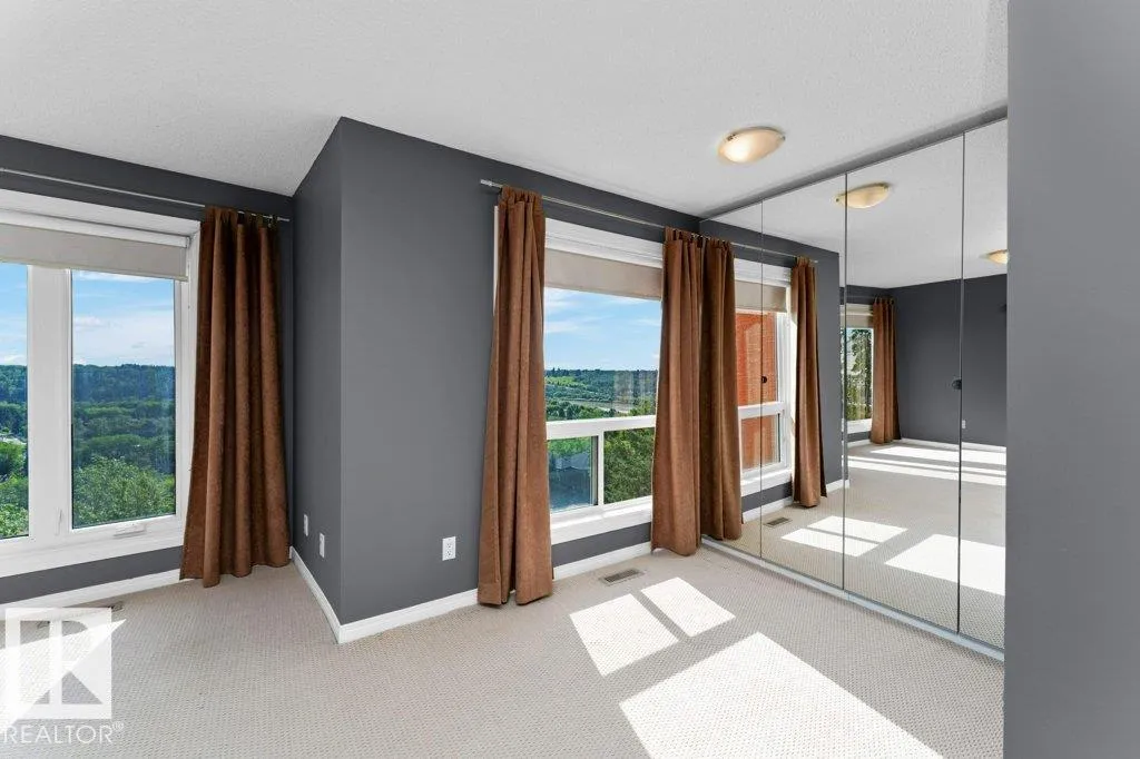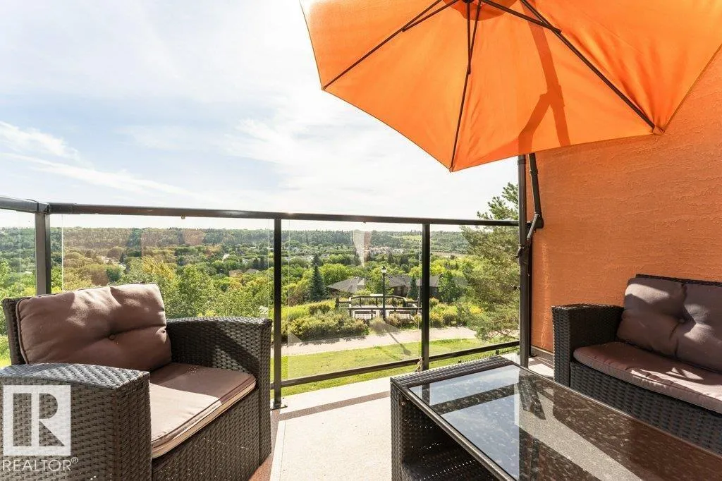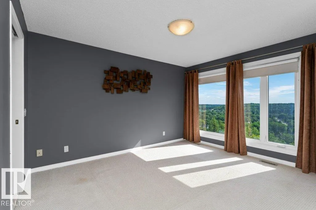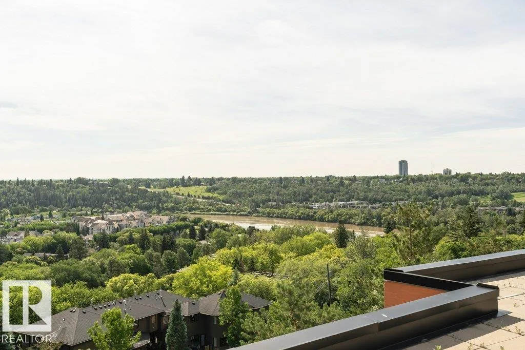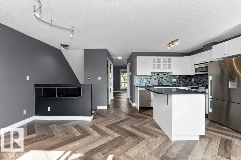 Discover this beautifully maintained, air-conditioned two-storey townhouse with a private rooftop deck and stunning river valley and downtown views. Located at the back of a gated 18+ complex. The home includes one secure underground parking spot with a storage locker and an additional above-ground stall in front of the unit. Walking distance to the River Valley and City Centre, this modern 2-bedroom features an open-concept design. The recently remodeled main level boasts a bright European-style kitchen with an island, a spacious living room with a gas fireplace, and a dining area opening to a glass-enclosed private balcony with a natural gas connection. There's also an open den/family room and a 3-piece bath. Upstairs, find a utility/laundry room and two large bedrooms, including a primary with a sitting area, walk-in closet, and spa-inspired ensuite with a jetted tub and corner shower. Additional storage has been added throughout. This home has been professionally painted and professionally cleaned. (id:27476)