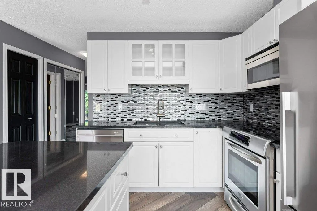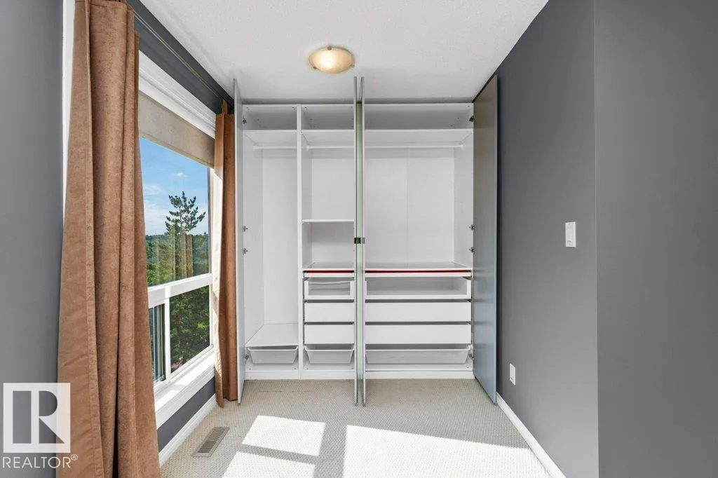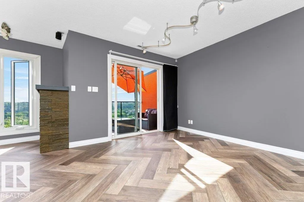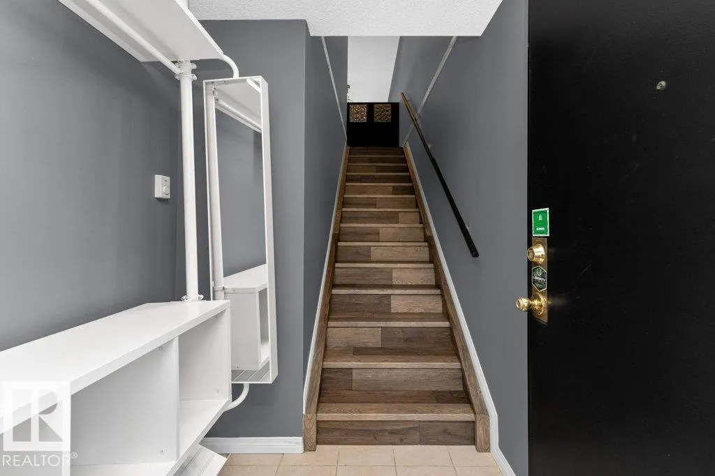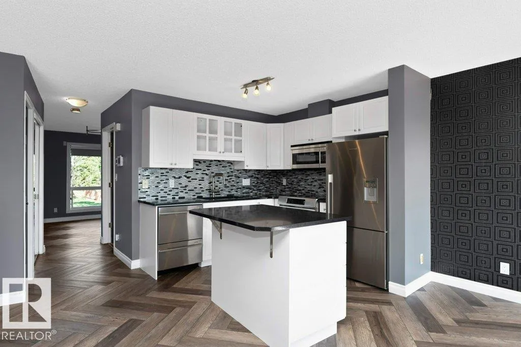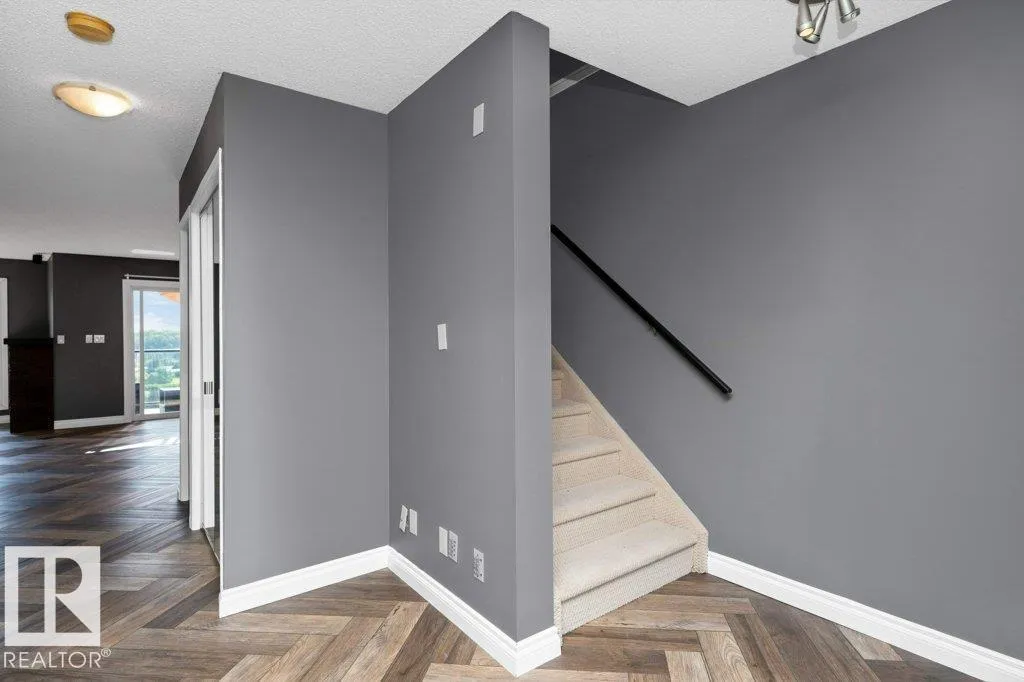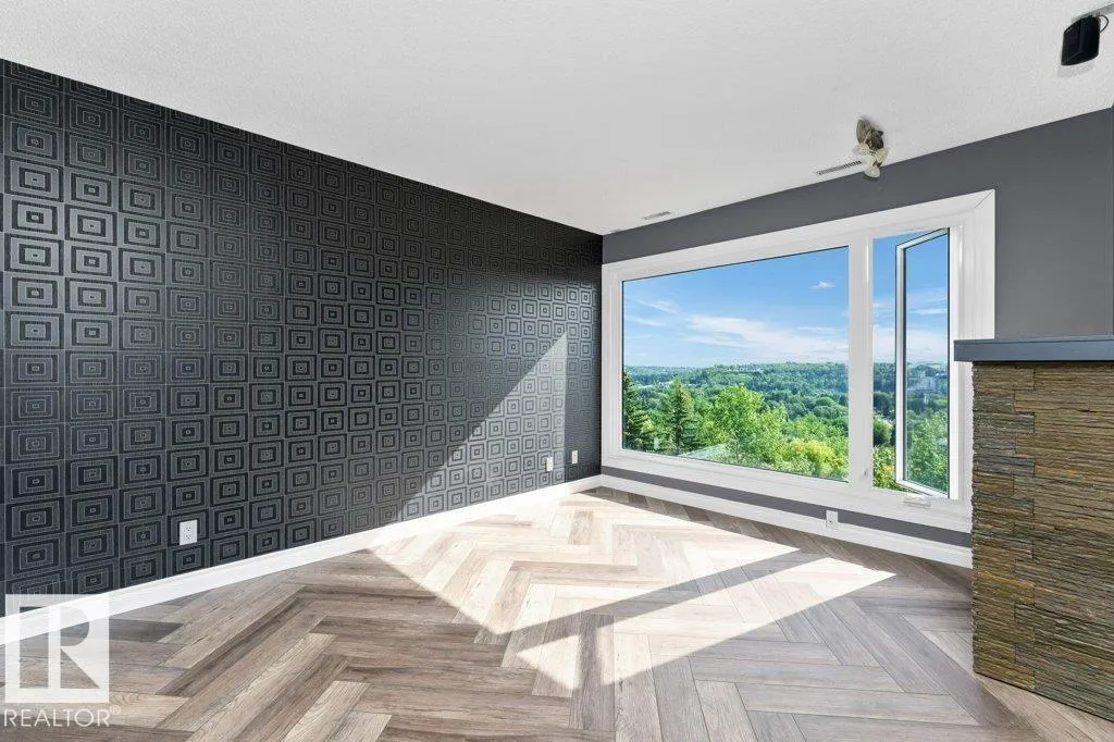 Discover this beautifully maintained, air-conditioned two-storey townhouse with a private rooftop deck and stunning river valley and downtown views. Located at the back of a gated 18+ complex. The home includes one secure underground parking spot with a storage locker and an additional above-ground stall in front of the unit. Walking distance to the River Valley and City Centre, this modern 2-bedroom features an open-concept design. The recently remodeled main level boasts a bright European-style kitchen with an island, a spacious living room with a gas fireplace, and a dining area opening to a glass-enclosed private balcony with a natural gas connection. There's also an open den/family room and a 3-piece bath. Upstairs, find a utility/laundry room and two large bedrooms, including a primary with a sitting area, walk-in closet, and spa-inspired ensuite with a jetted tub and corner shower. Additional storage has been added throughout. This home has been professionally painted and professionally cleaned. (id:27476)